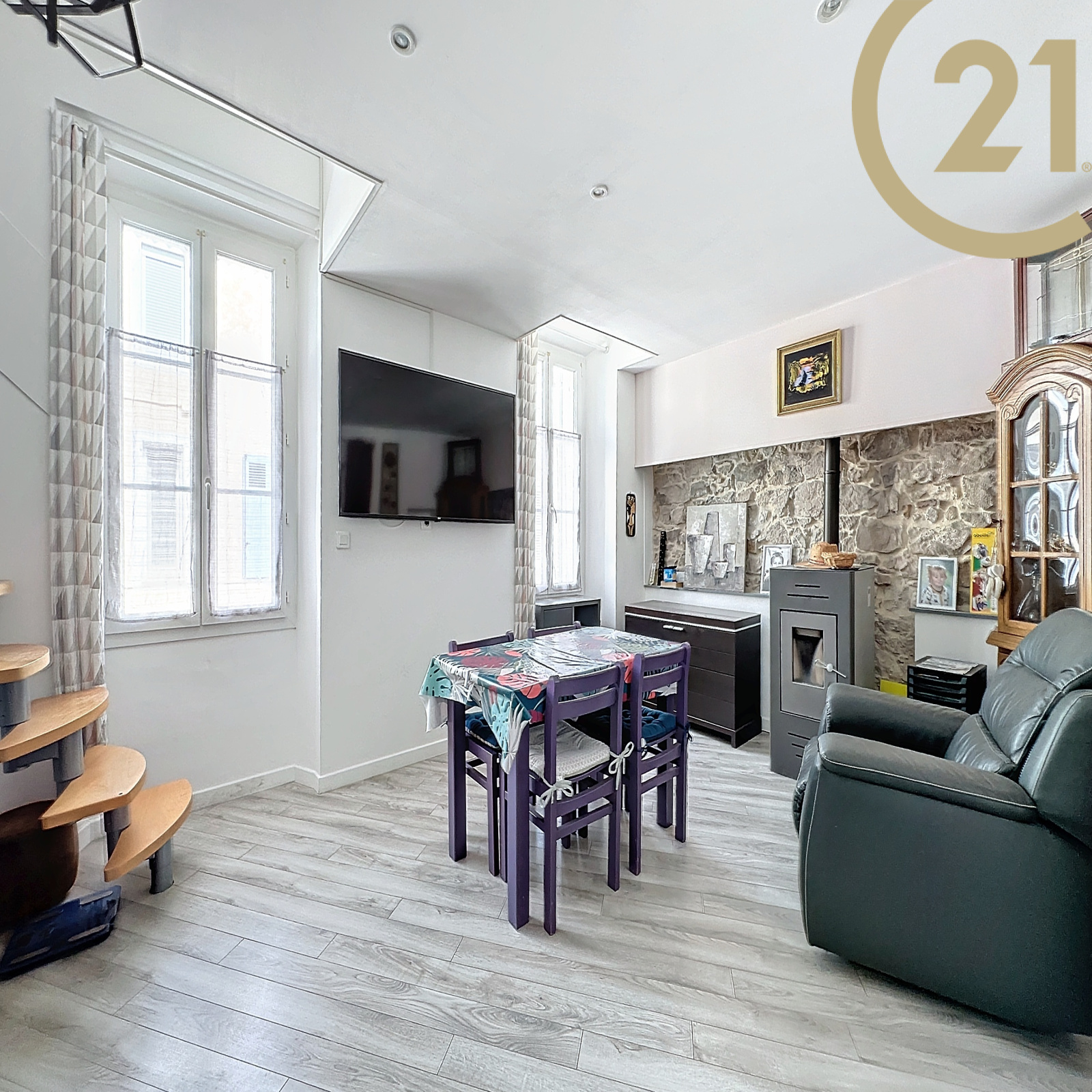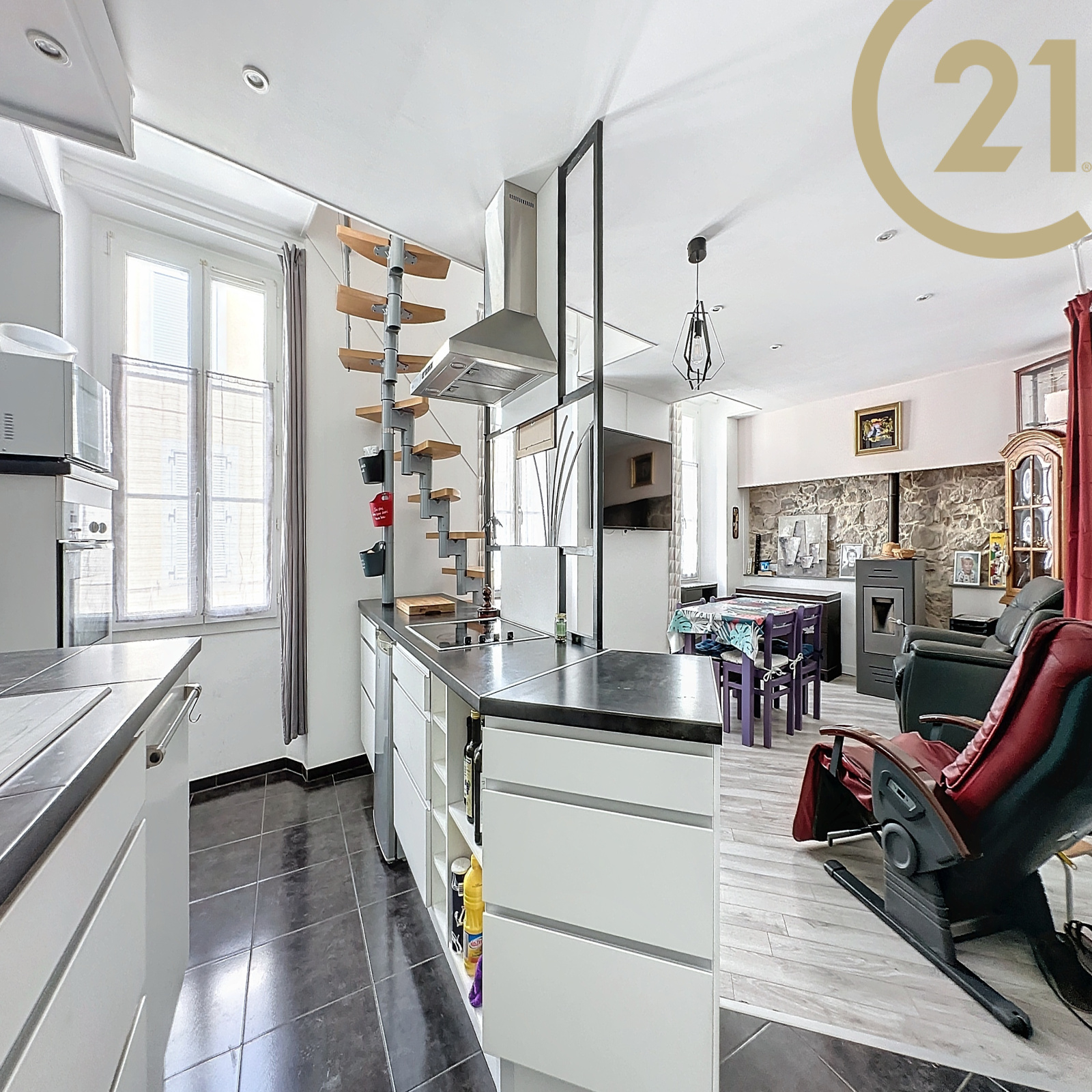 VENTE - LE MUY - Dans une rue proche du centre-ville parfaitement au calme, bel appartement T3 en duplex de 57.85m² situé au 1er et dernier étage d'un petit immeuble, avec un grand garage en rez de chaussé de 52m2 avec douche et électricité pouvant etre transformé en habitation et relié avec l'appartement.