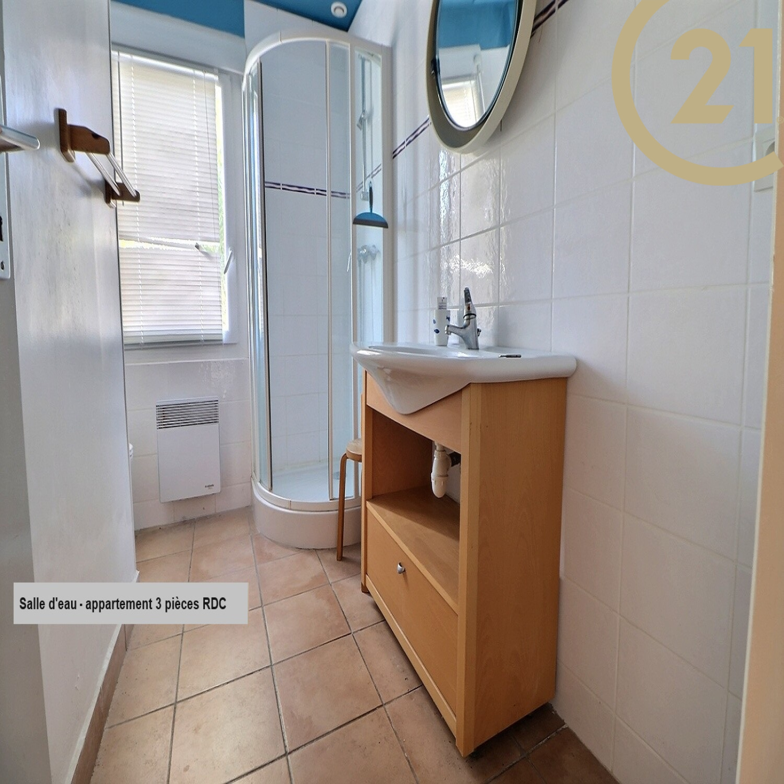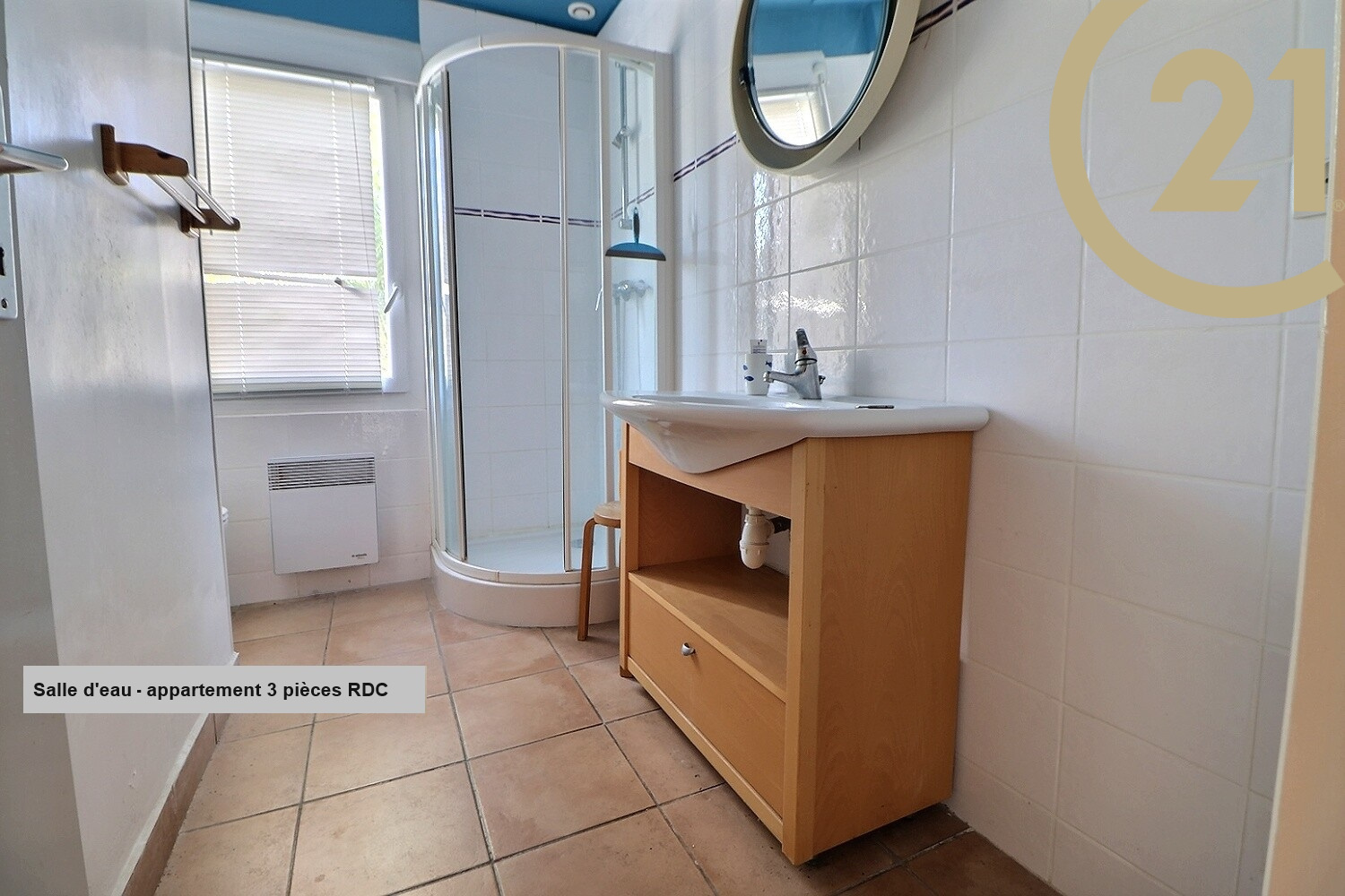 Le rez-de-chaussée se compose d'un studio de 24m² (séjour avec kitchenette aménagée/équipée, salle d'eau avec WC et terrasse privative) et d'un appartement 3 pièces comprenant une cuisine donnant sur le séjour, deux chambres, une salle d'eau avec WC, un dressing et une terrasse privative.