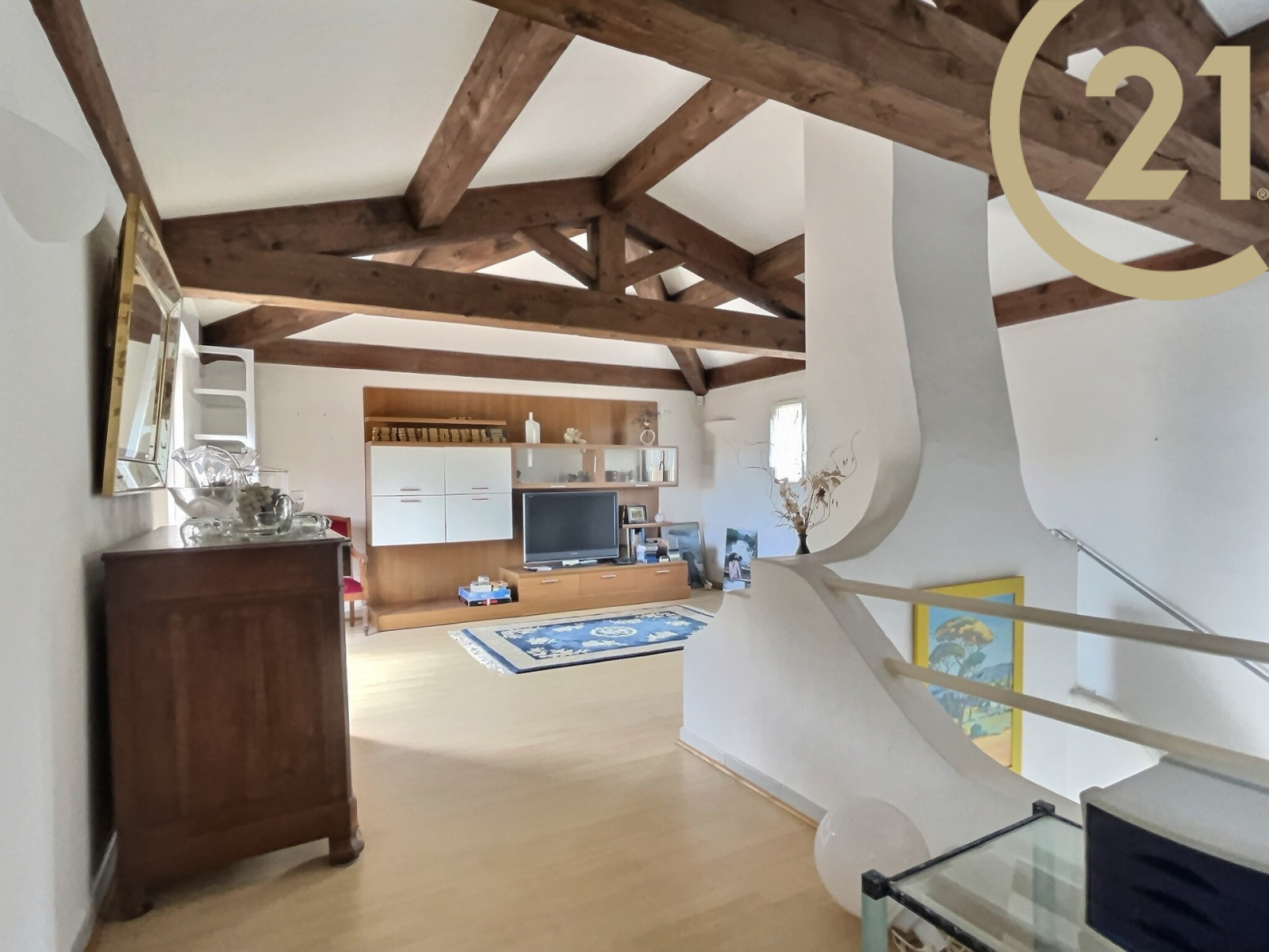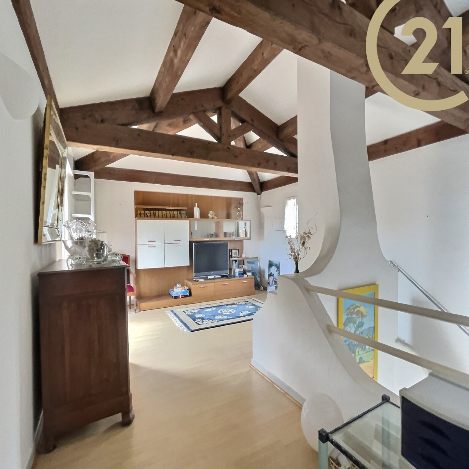 A l' étage, vous trouverez une magnifique pièce de 26 m2 donnant sur une terrasse solarium de 6 m2.