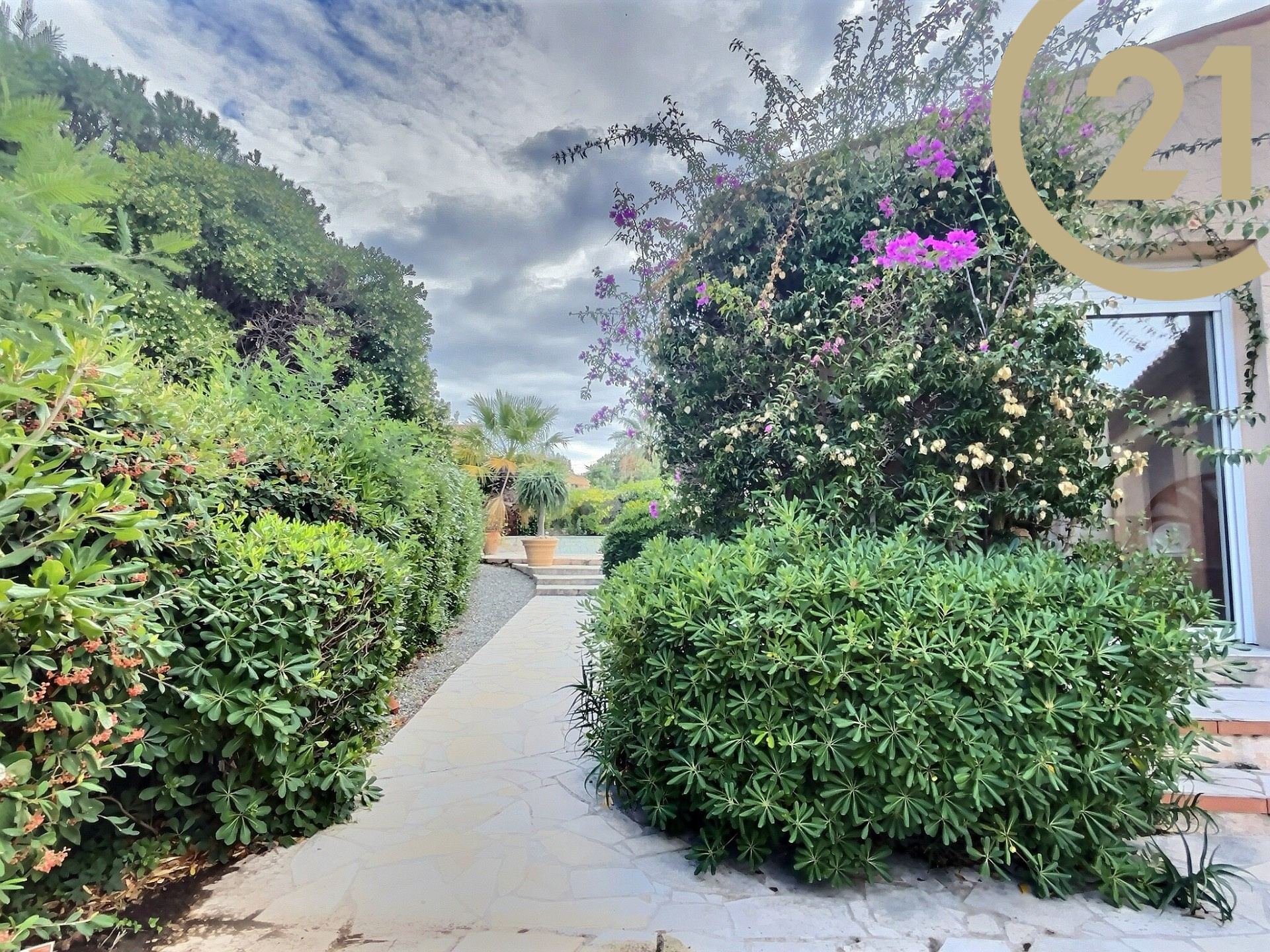 VENTE LES ISSAMBRES - VILLA 5P plus un studio en RDJ - Nichée au cœur d’une petite résidence sécurisée proche de la plage et des commerces dans un quartier calme et recherché, cette magnifique villa allie élégance et art de vivre méditerranéen.