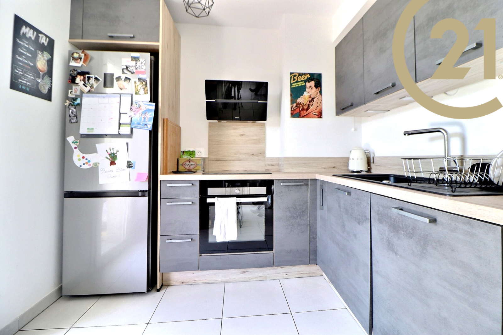Il se compose : d'une entrée donnant sur le séjour/salle à manger, d'une cuisine équipée moderne, de deux chambres, d'une salle de bains et d'un WC indépendant.