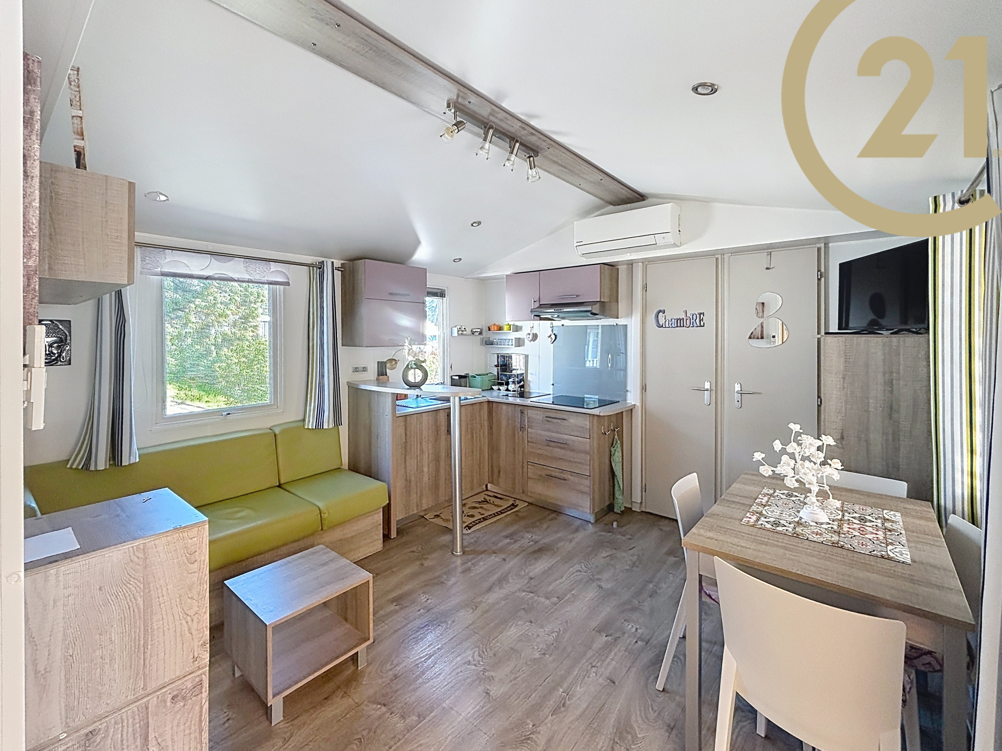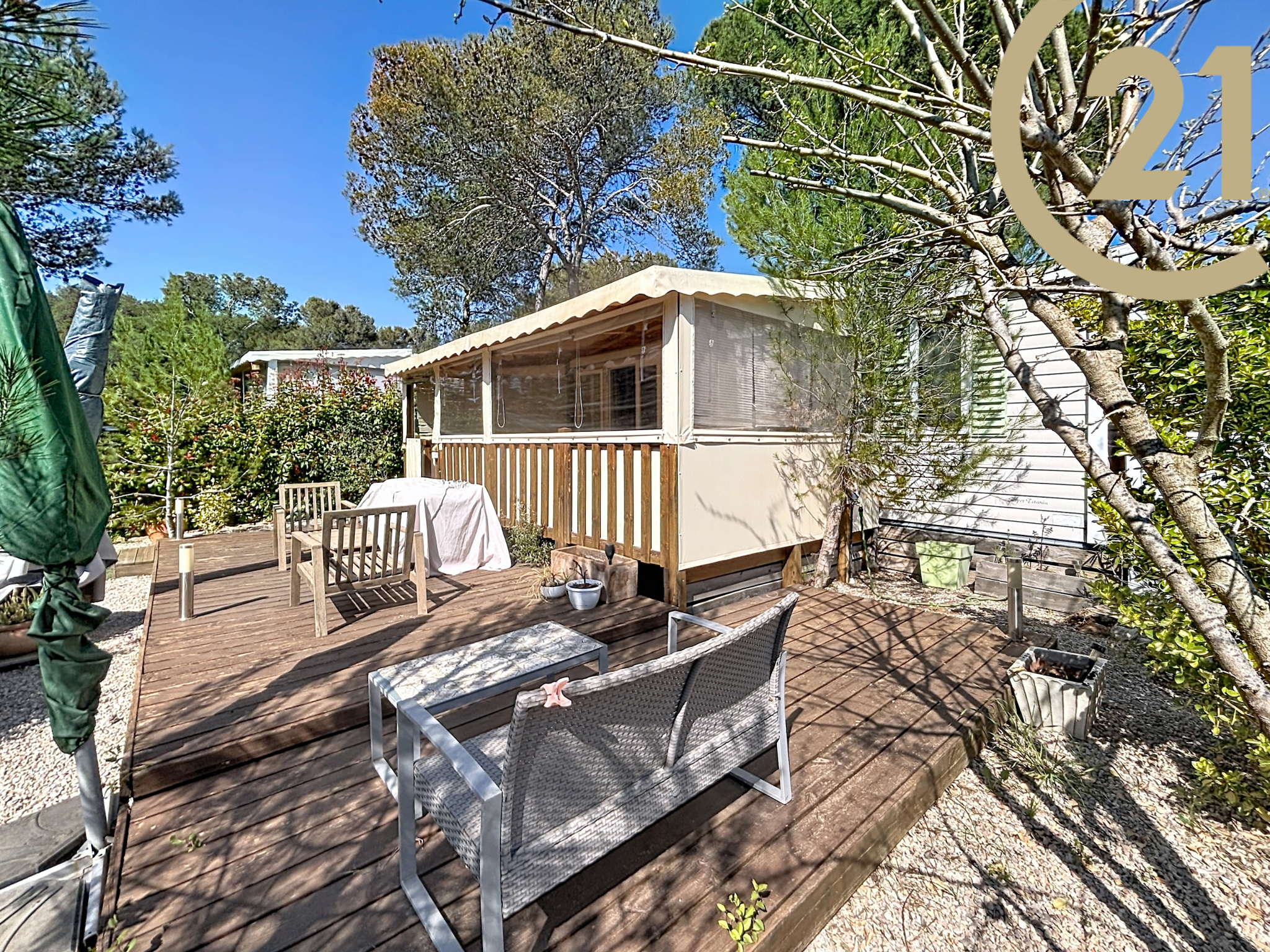 Mobilhome de 32 m² + 18 m² de terrasse couverte.