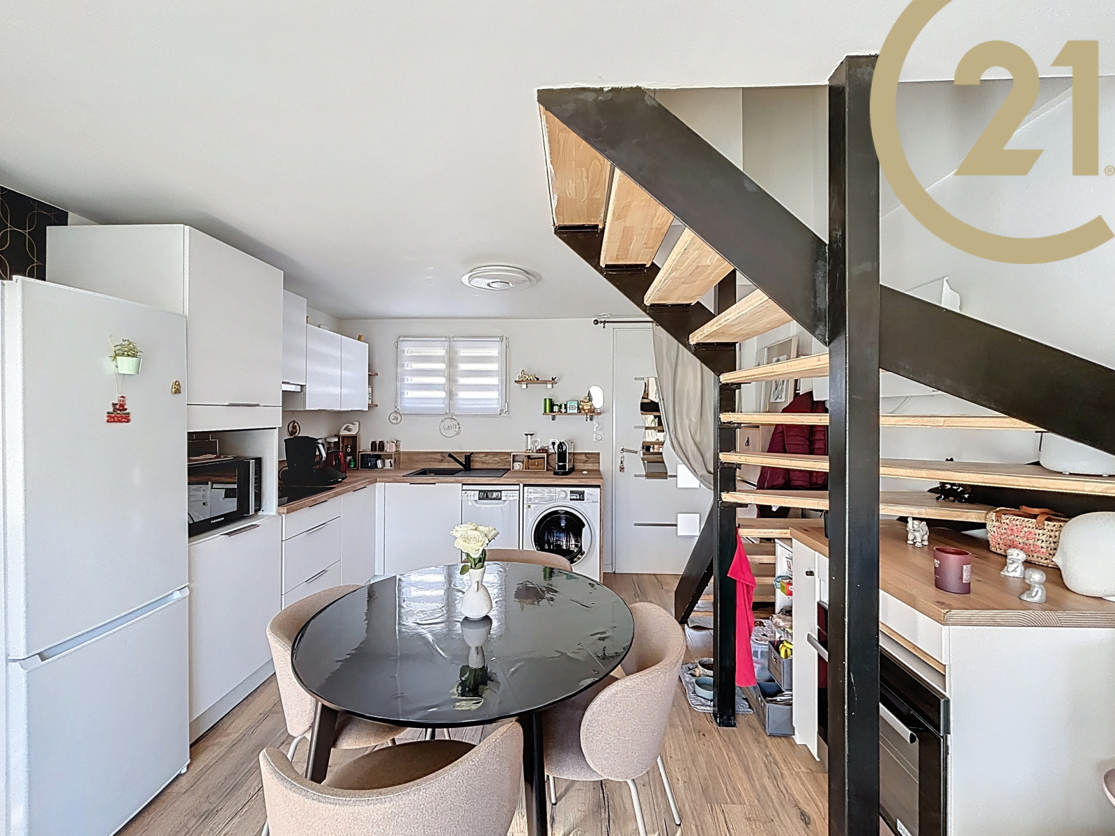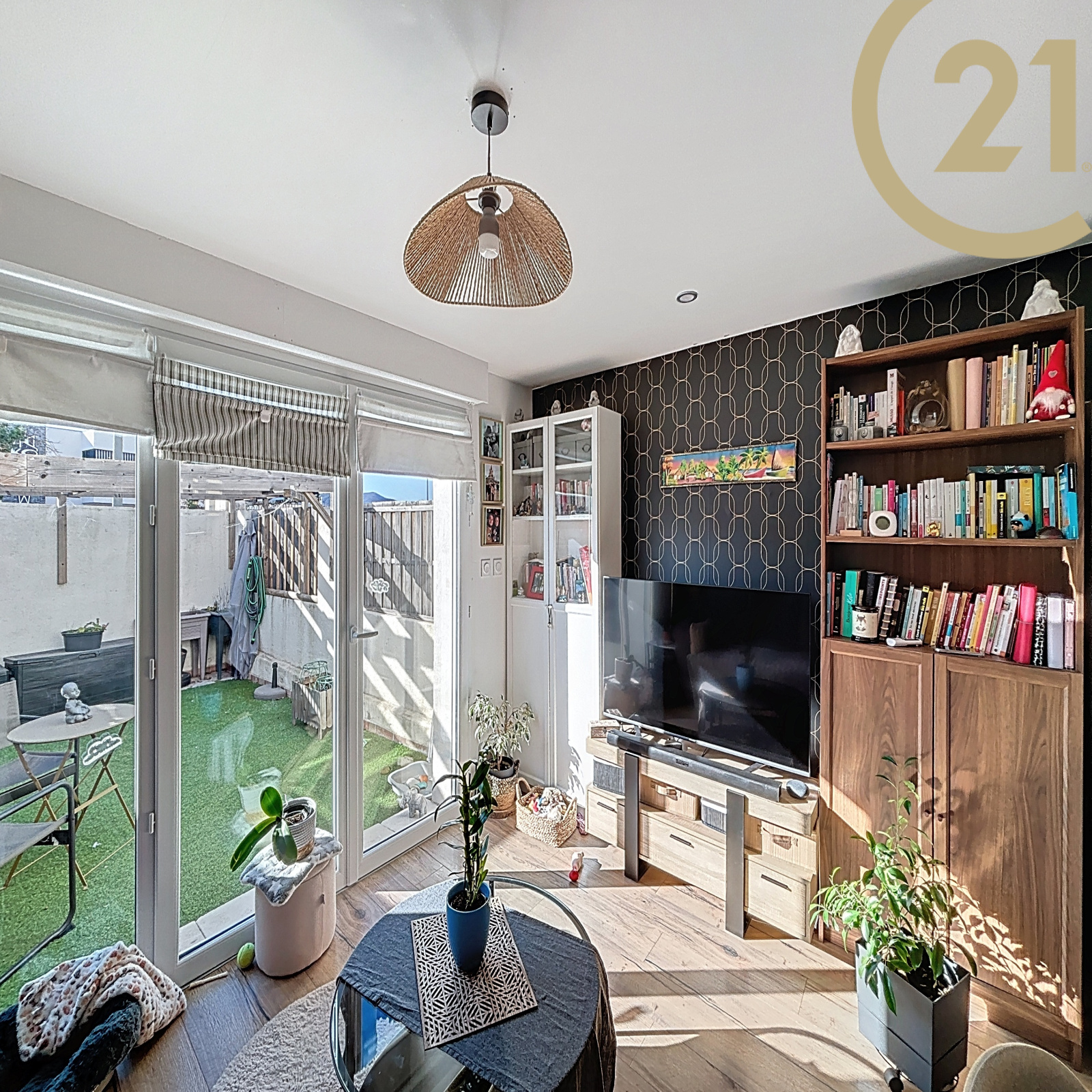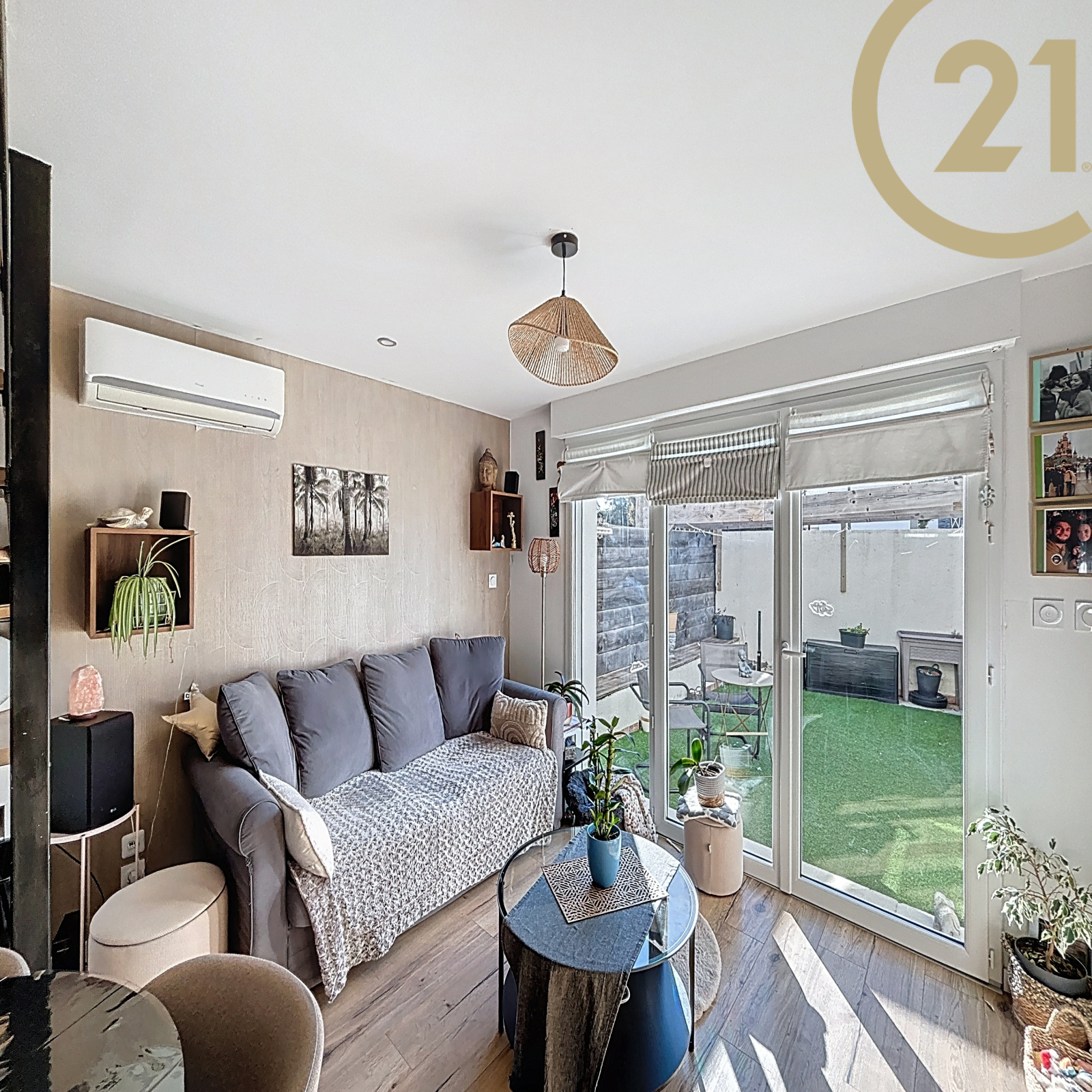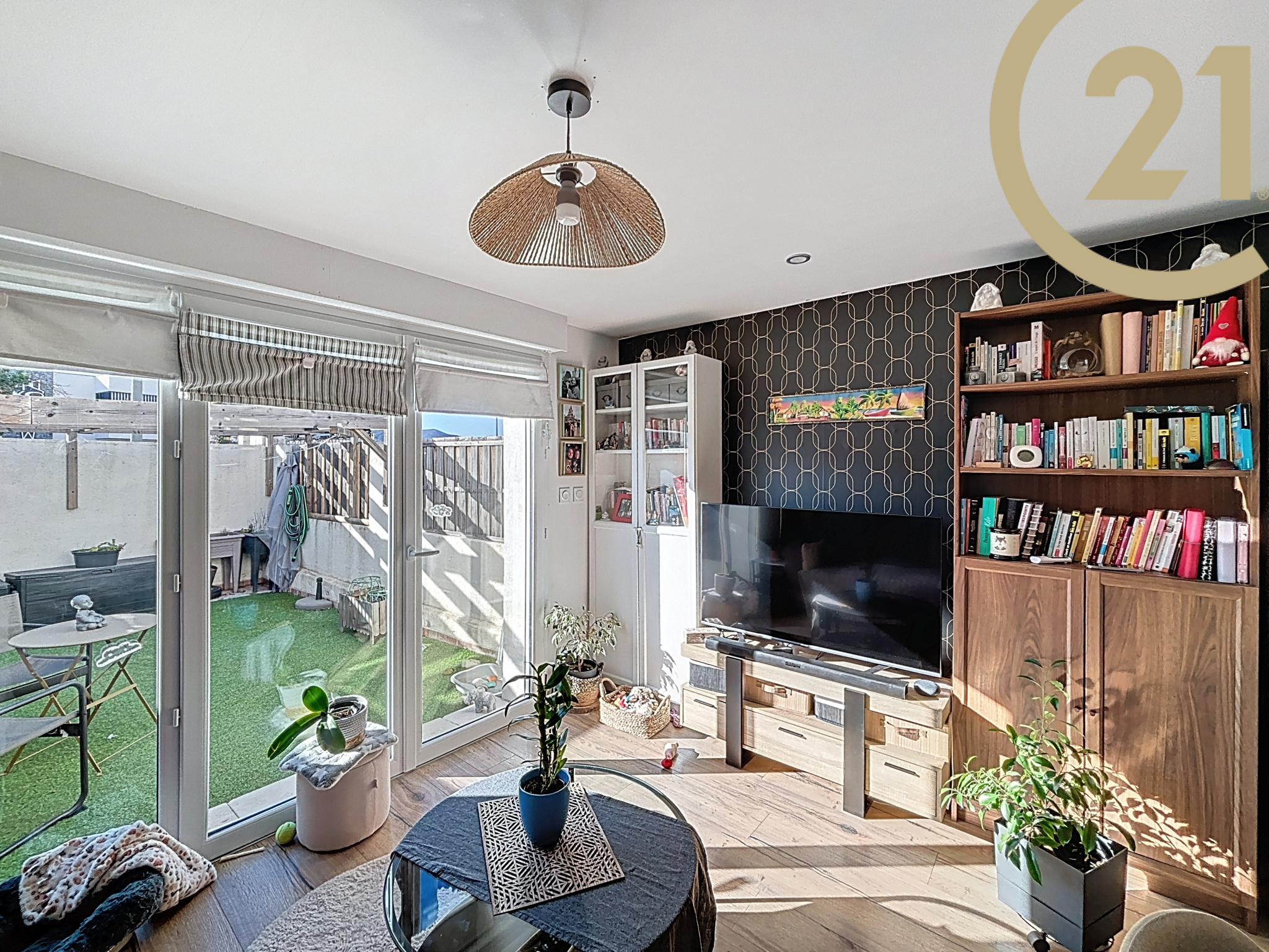 Les plus, une belle terrasse sans vis à vis de 21 m² exposée SUD, un abri de jardin et une place de stationnement.