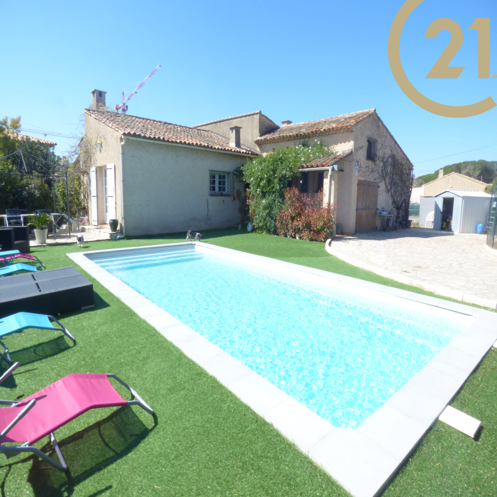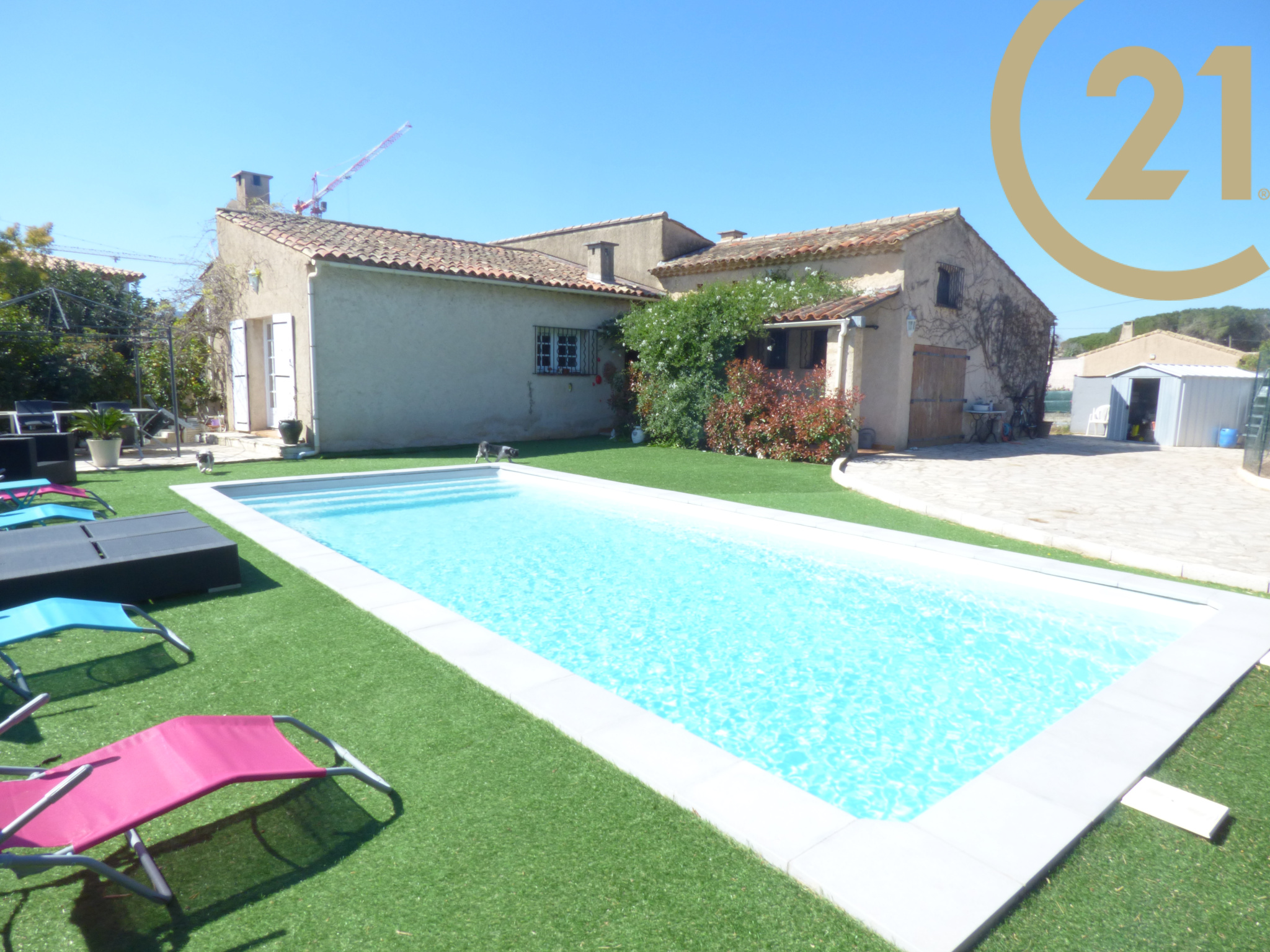 Villa provencale de plein pied composée d'une entrée avec WC , d'un double salon séjour avec cheminée donnant sur terrasse plein sud , d'une cuisine intégrée donnant sur une seconde terrasse sud-est avec barbecue , d'un coin nuit composé de deux chambres, d'une suite parentale avec douche, d'un wc et baignoire, d'une salle d'eau avec wc. Garage. Terrain plat avec piscine de 951 m².