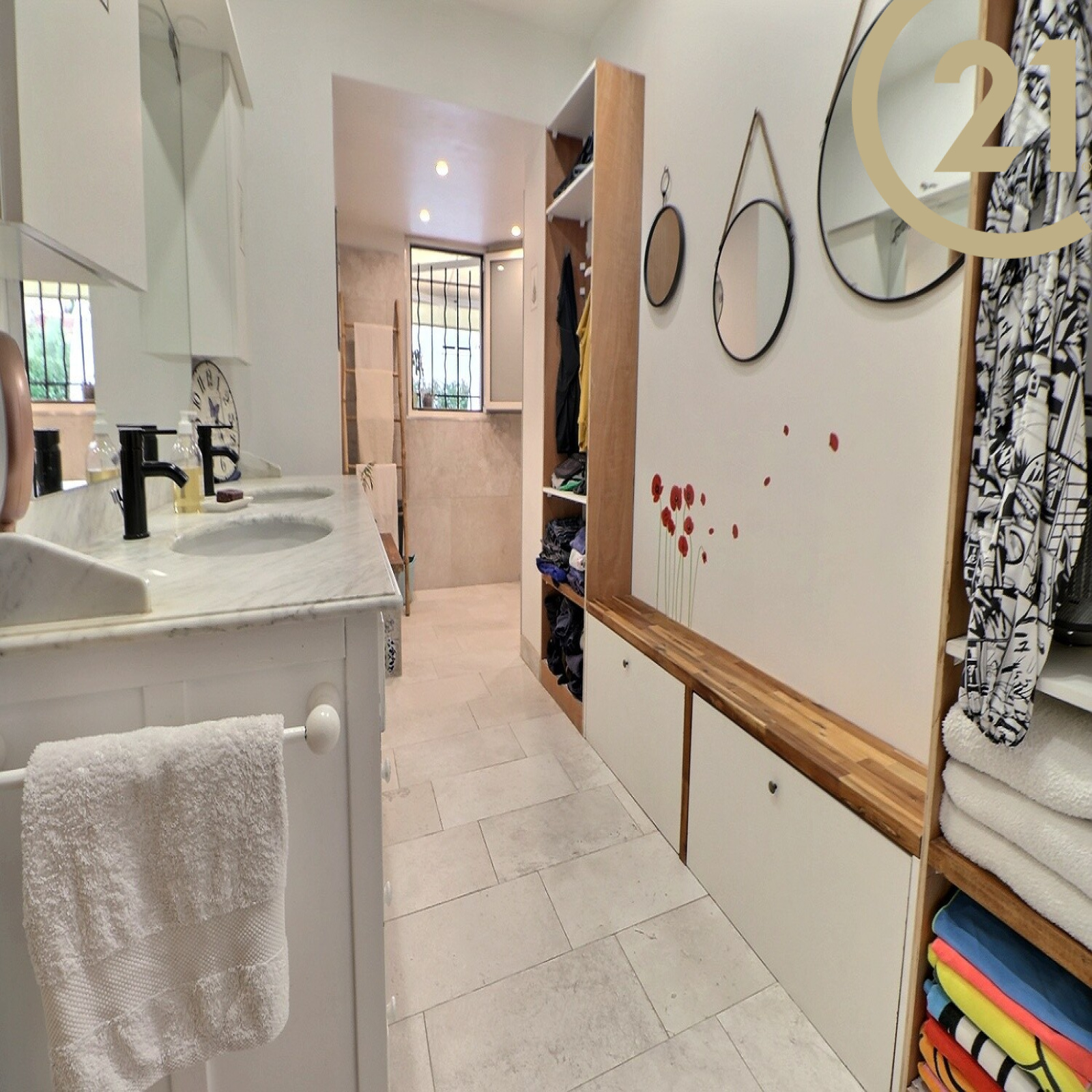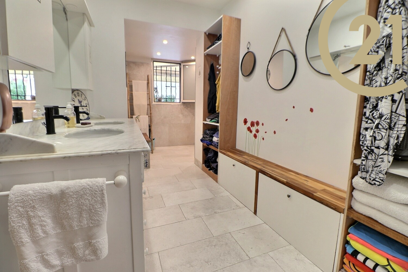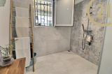 De plain pied, elle comprend une pièce de vie de 55m² donnant sur une belle terrasse avec vue sur le Rocher de Roquebrune, un cellier, trois chambres, une grande salle d'eau avec douche italienne, un WC avec lave-main.