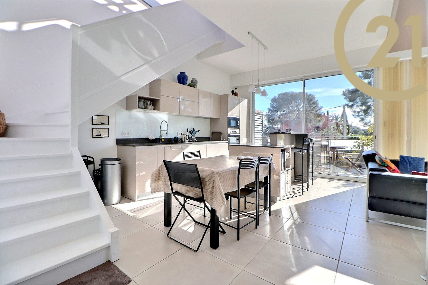 VENTE - SAINT-RAPHAËL BOULOURIS, situé dans le beau quartier de Boulouris, dans une résidence récente de standing avec piscine, splendide appartement 4 pièces en dernier étage avec ascenseur. Il se compose d'une entrée avec placard, d'un beau séjour avec cuisine américaine donnant accès à une magnifique terrasse de presque 50m² exposée Sud et Ouest avec aperçu MER, 3 chambres avec placard dont une suite parentale avec salle d'eau et wc et un wc indépendant.