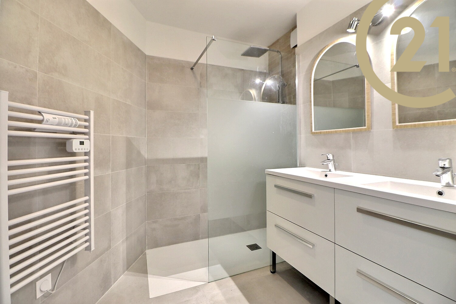 Il se compose d'une entrée avec placard, d'un salon-séjour climatisé donnant sur une splendide terrasse de 17m² sans vis à vis, une cuisine indépendante donnant sur une loggia, de deux belles chambres avec placard, d'une salle de douche et d'un WC indépendant.