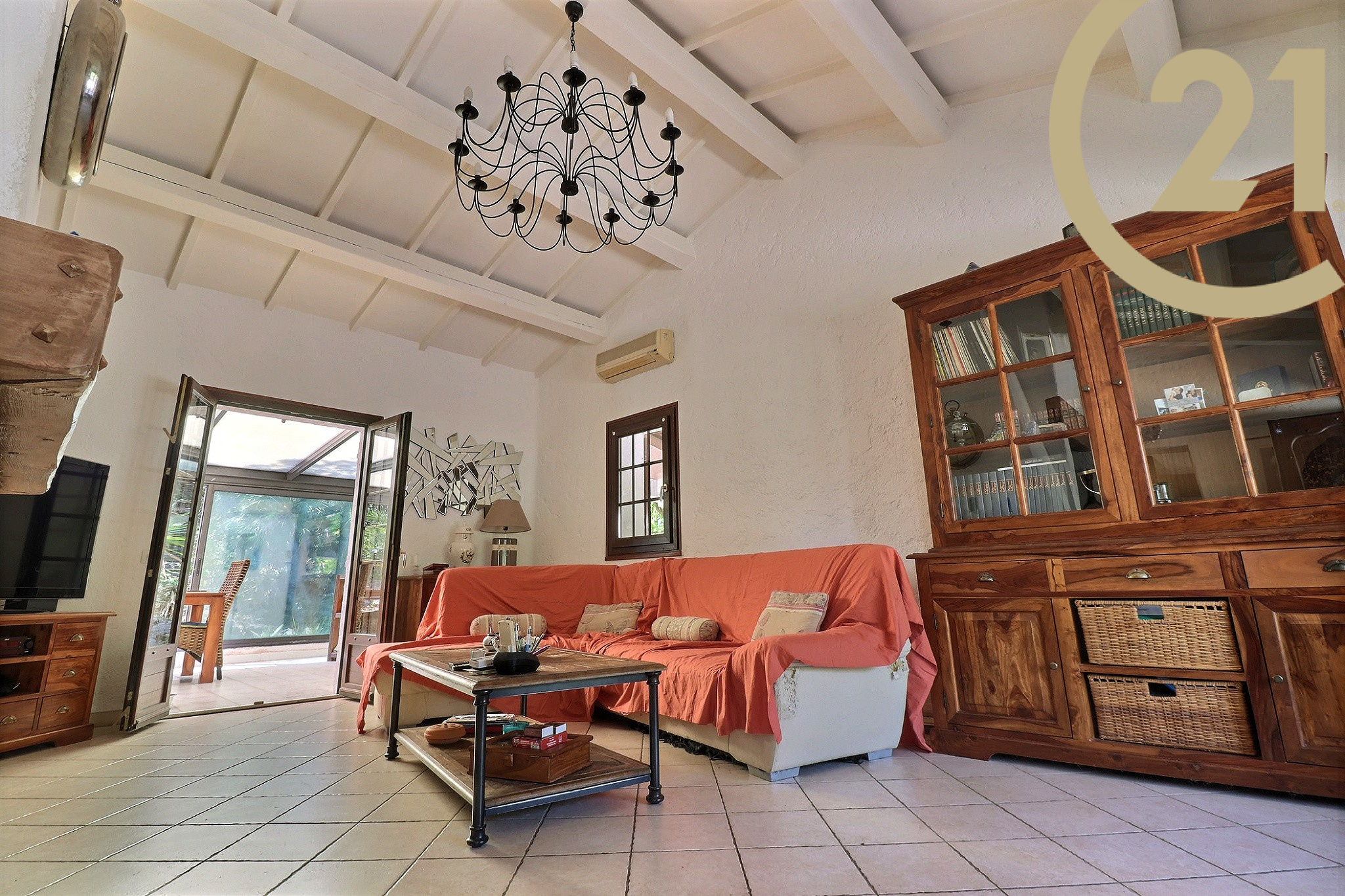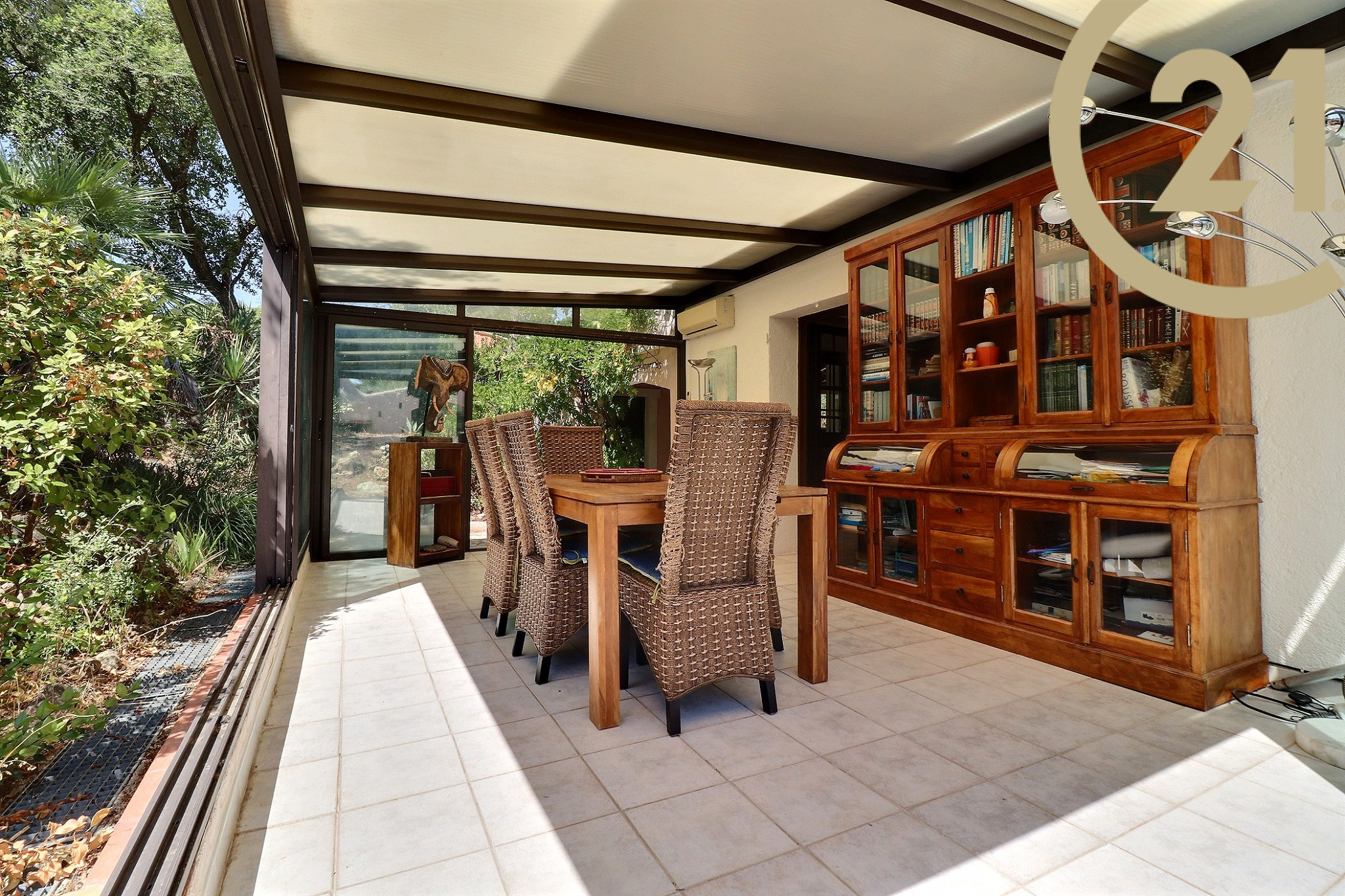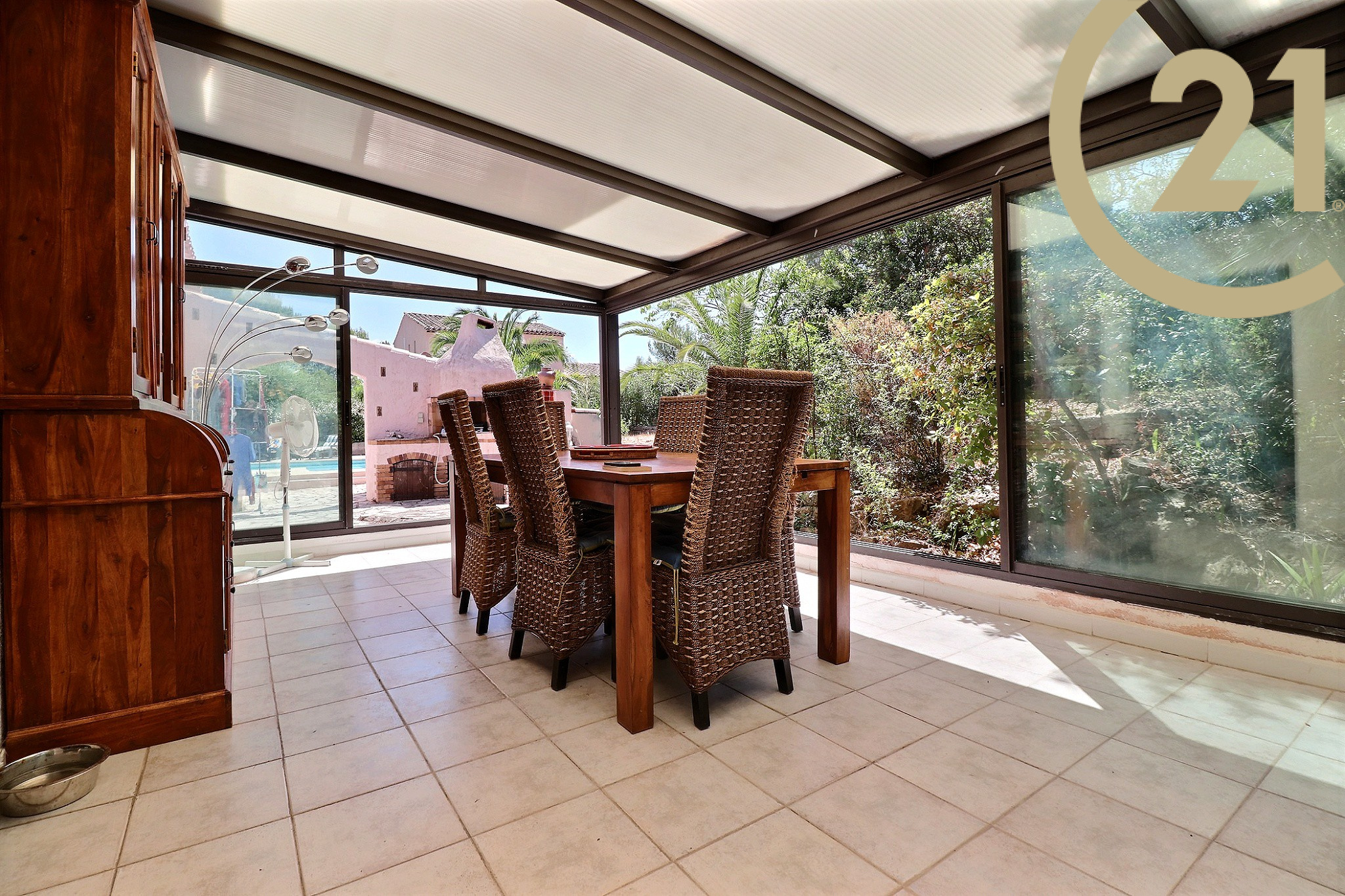 ROQUEBRUNE SUR ARGENS - LA BOUVERIE, dans une impasse au calme et à proximité des commerces, écoles et pôle santé, découvrez cette Villa de plain-pied d'environ 105 m² sur un terrain méditerranéen de 1050m². Vous profiterez de sa belle piscine avec terrasse et cuisine d'été. Elle se compose d'une pièce de vie avec cheminée, d'une grande véranda et d'une cuisine. La partie nuit comprend 3 chambres, une salle de bains et un wc séparé. Un parking couvert avec un cellier complètent ce bien. ASL charges annuelles 165 euros.