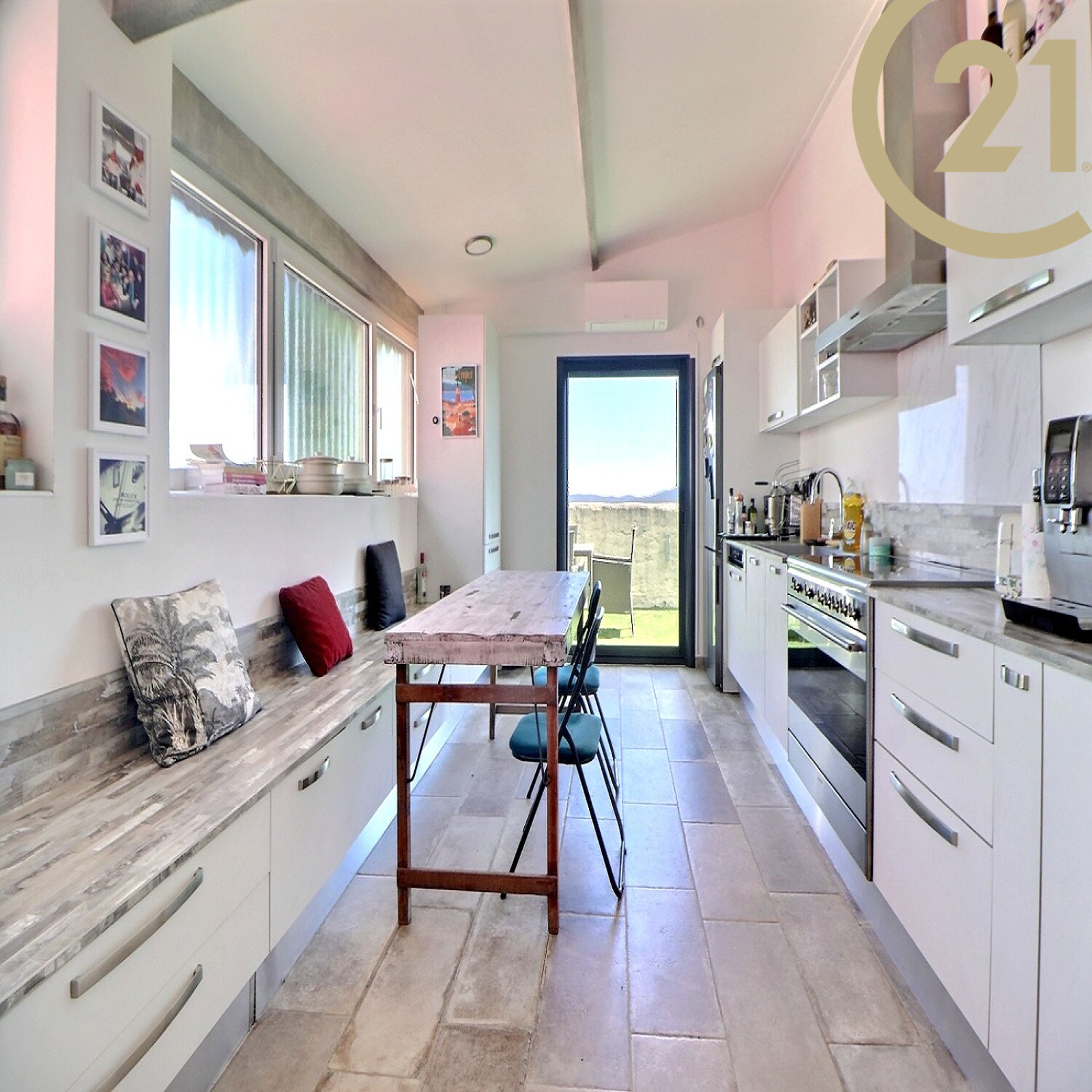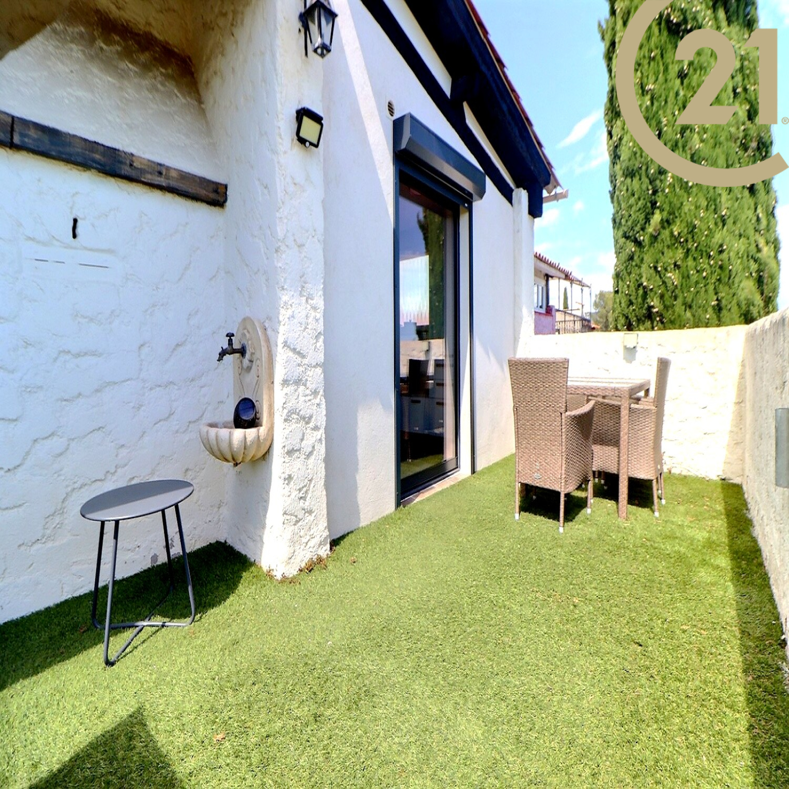 Un garage et un cabanon complètent cette villa rare à la vente.