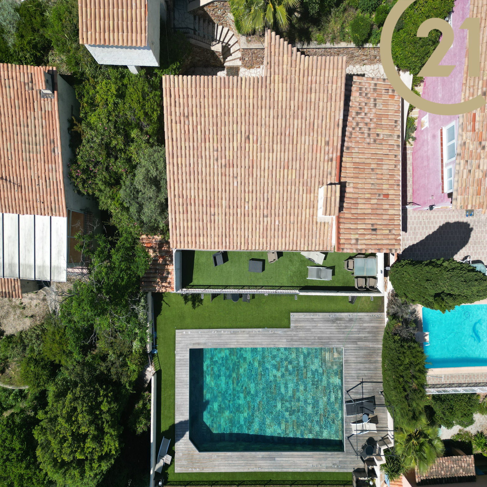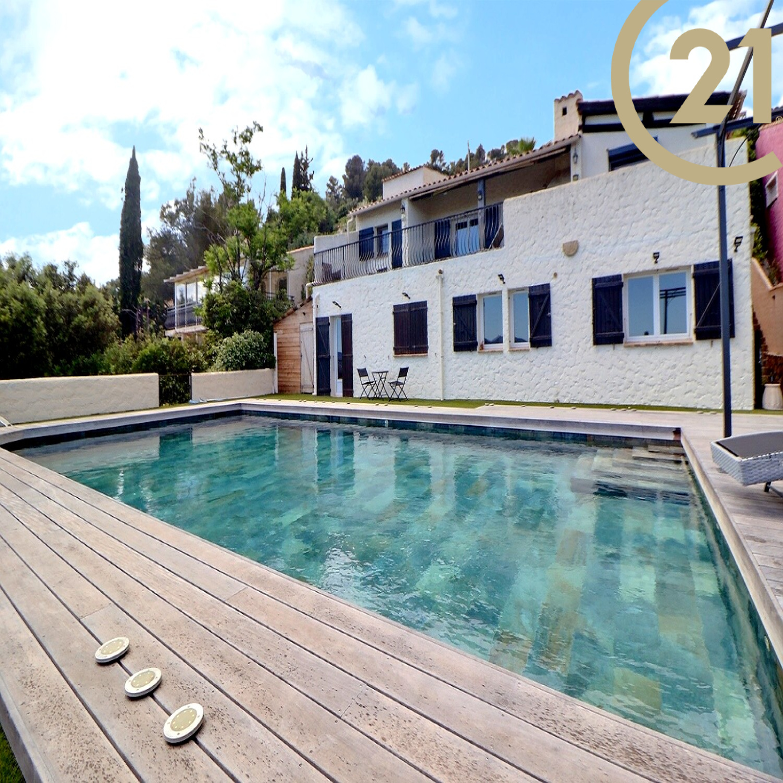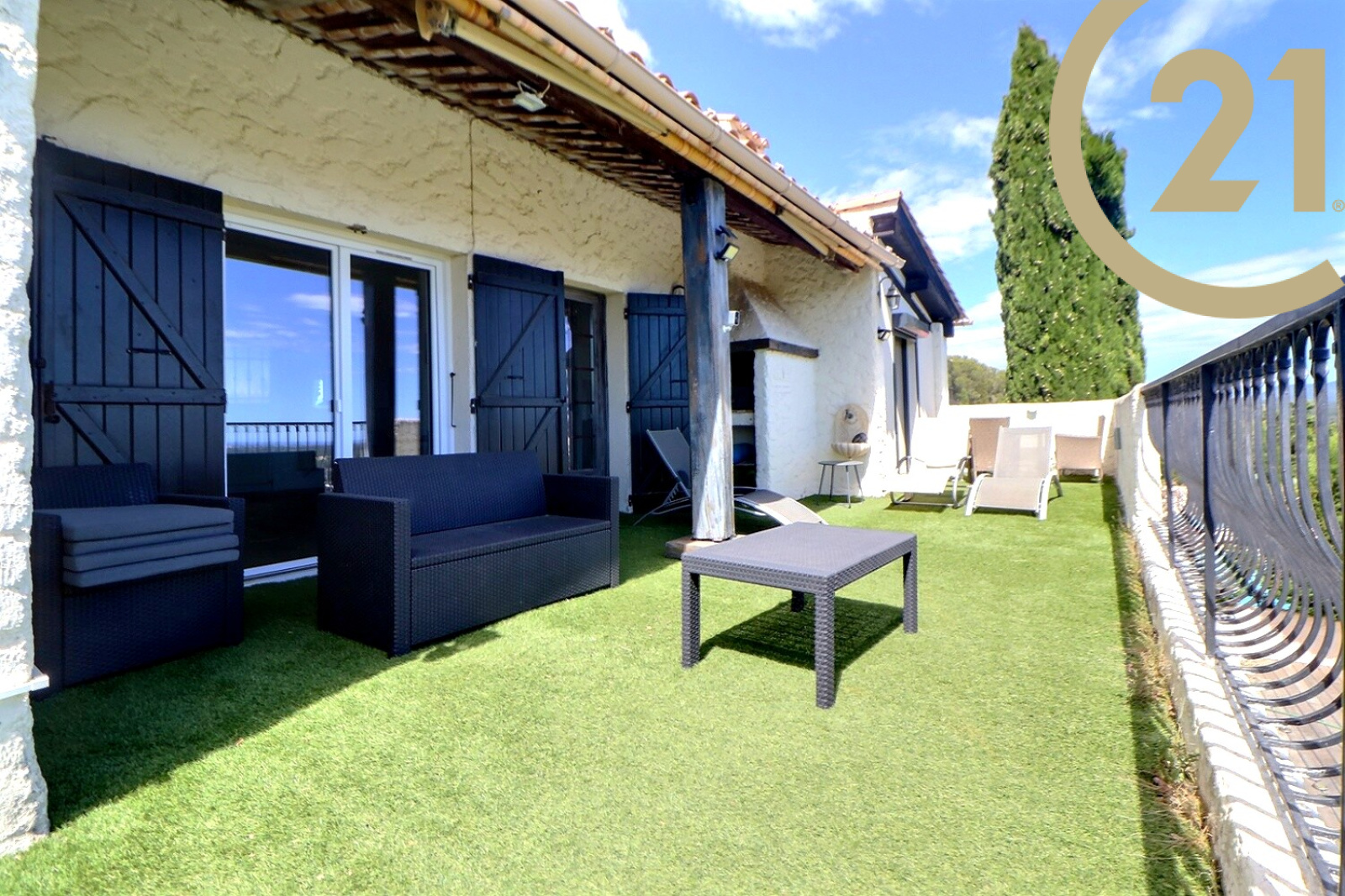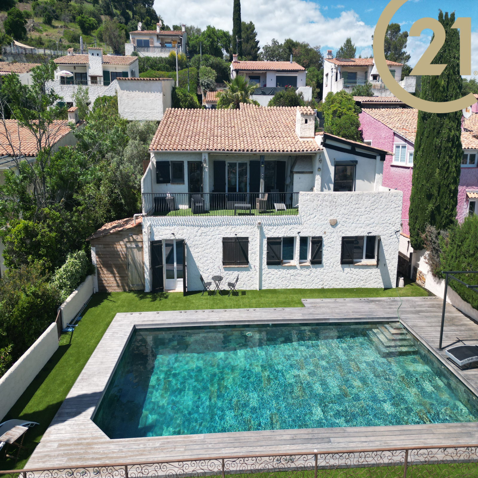 VENTE - ROQUEBRUNE-SUR-ARGENS - LA BOUVERIE - Située dans le beau quartier de la Bouverie à Roquebrune-sur-Argens, en position dominante, splendide villa 5 pièces de 130m² avec vue panoramique jusqu'à la mer et le Rocher de Roquebrune.