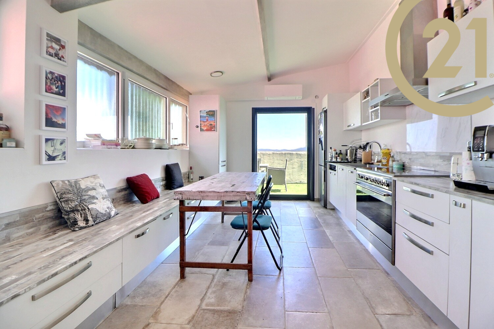Cette belle villa se compose au niveau principal : d'un beau double séjour donnant sur une grande terrasse vous offrant une vue extraordinaire, d'une cuisine indépendante avec également accès à la terrasse et d'un WC indépendant.