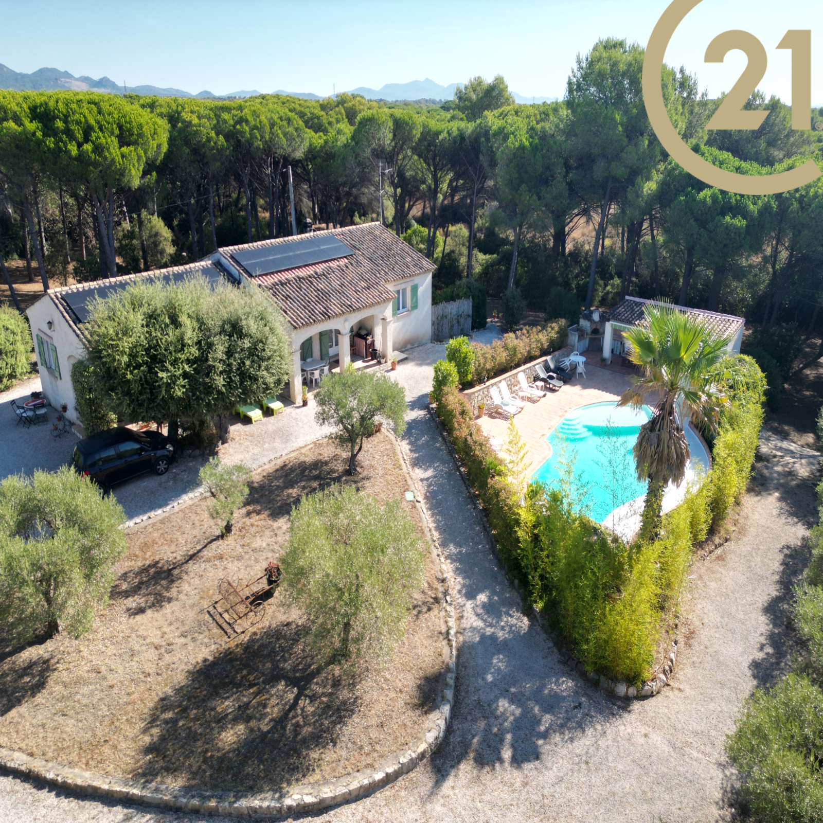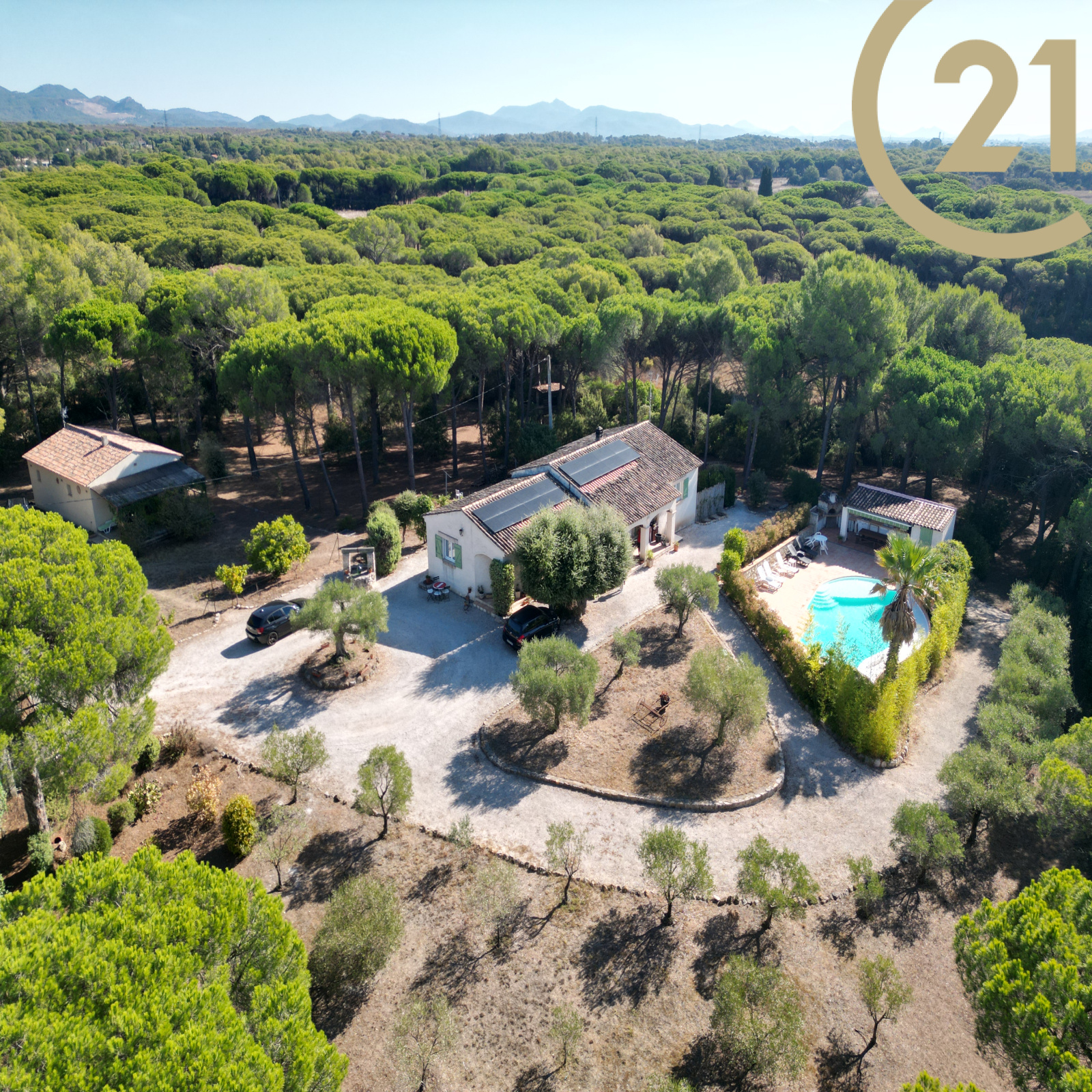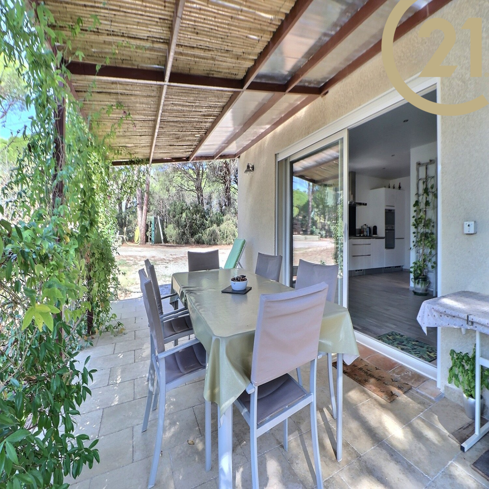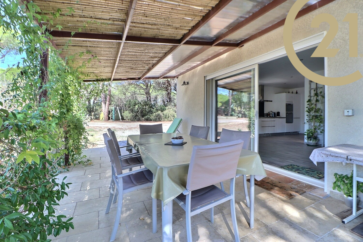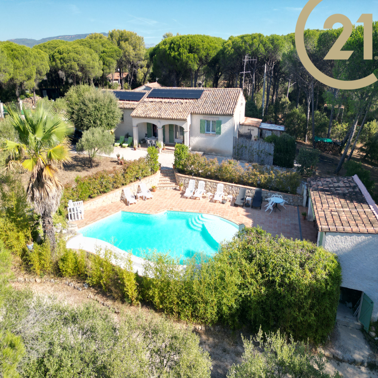 VENTE EN EXCLUSIVITE - ROQUEBRUNE-SUR-ARGENS - Située à mi-chemin de la bouverie et du village de Roquebrune, dans un environnement calme et verdoyant, jolie villa provençale de 170m² (110m² Carrez) édifiée sur un terrain de 9100m² clôturé.