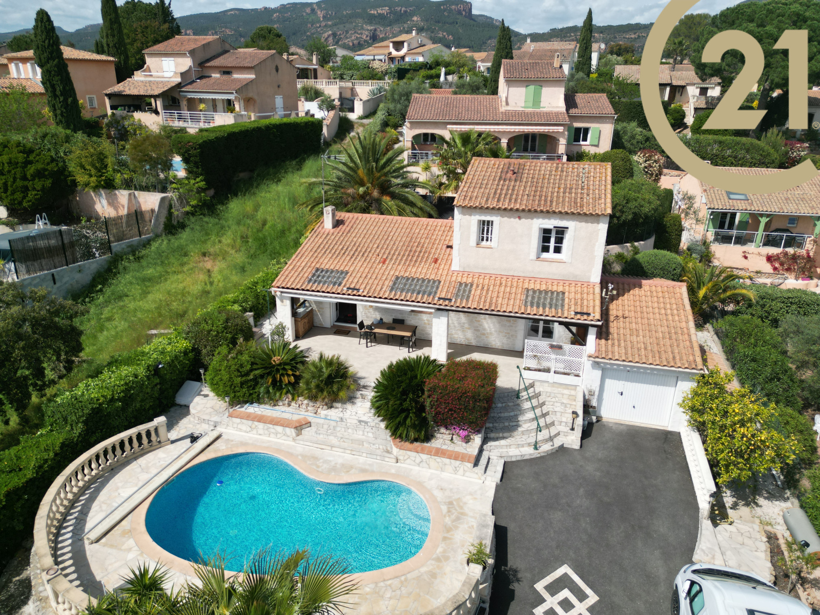 une spacieuse terrasse de plus de 40 m² exposée plein Sud avec store électrique, idéale pour les repas en extérieur, ainsi qu’une piscine traditionnelle 7 x 4 m avec mosaïques et machinerie neuve.