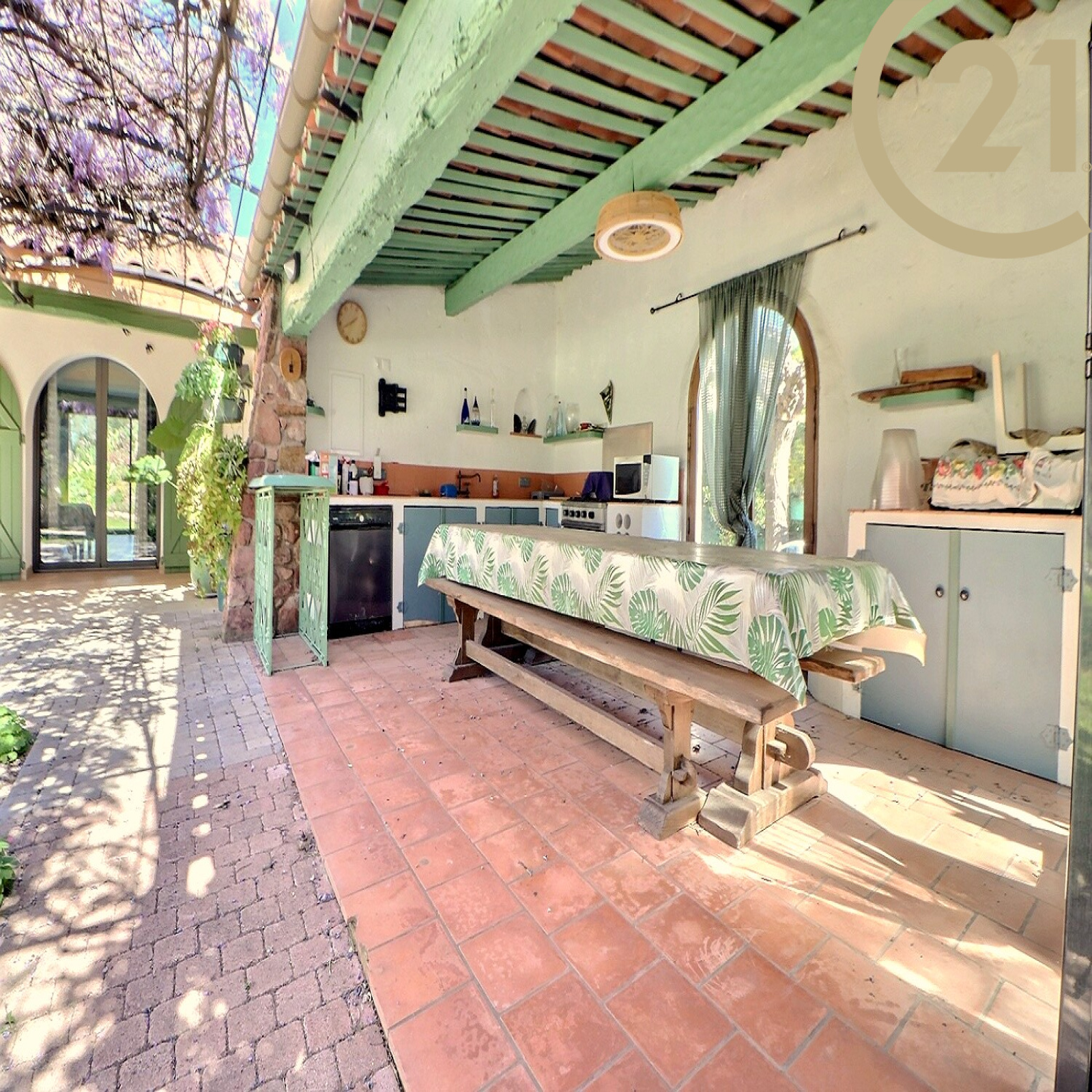 Très agréable terrasse couverte avec fontaine d'environ 46 m2 et cuisine d'été d'environ 22 m2.