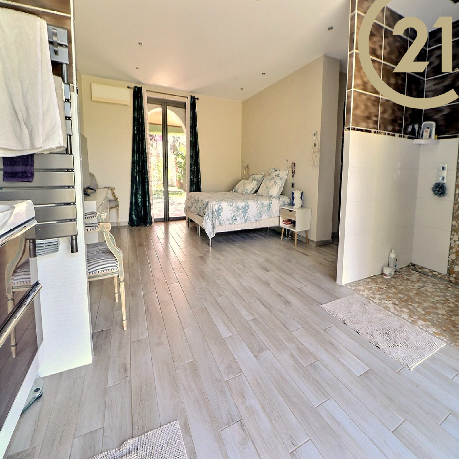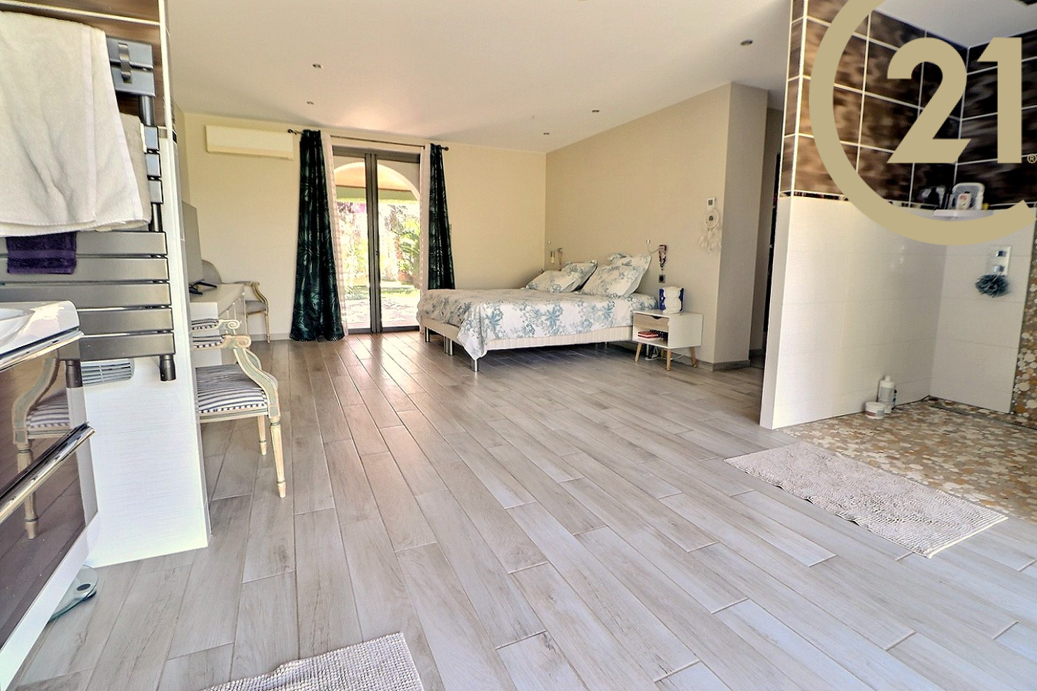 Climatisation dans toute la maison, chauffage au sol, baies en aluminium à galandage avec moustiquaires. Piscine 12 x 5 avec terrasse, jacuzzi, magnifique terrain cloturé arboré, forage, arrosage automatique, assainissement aux normes (microstation récente).
