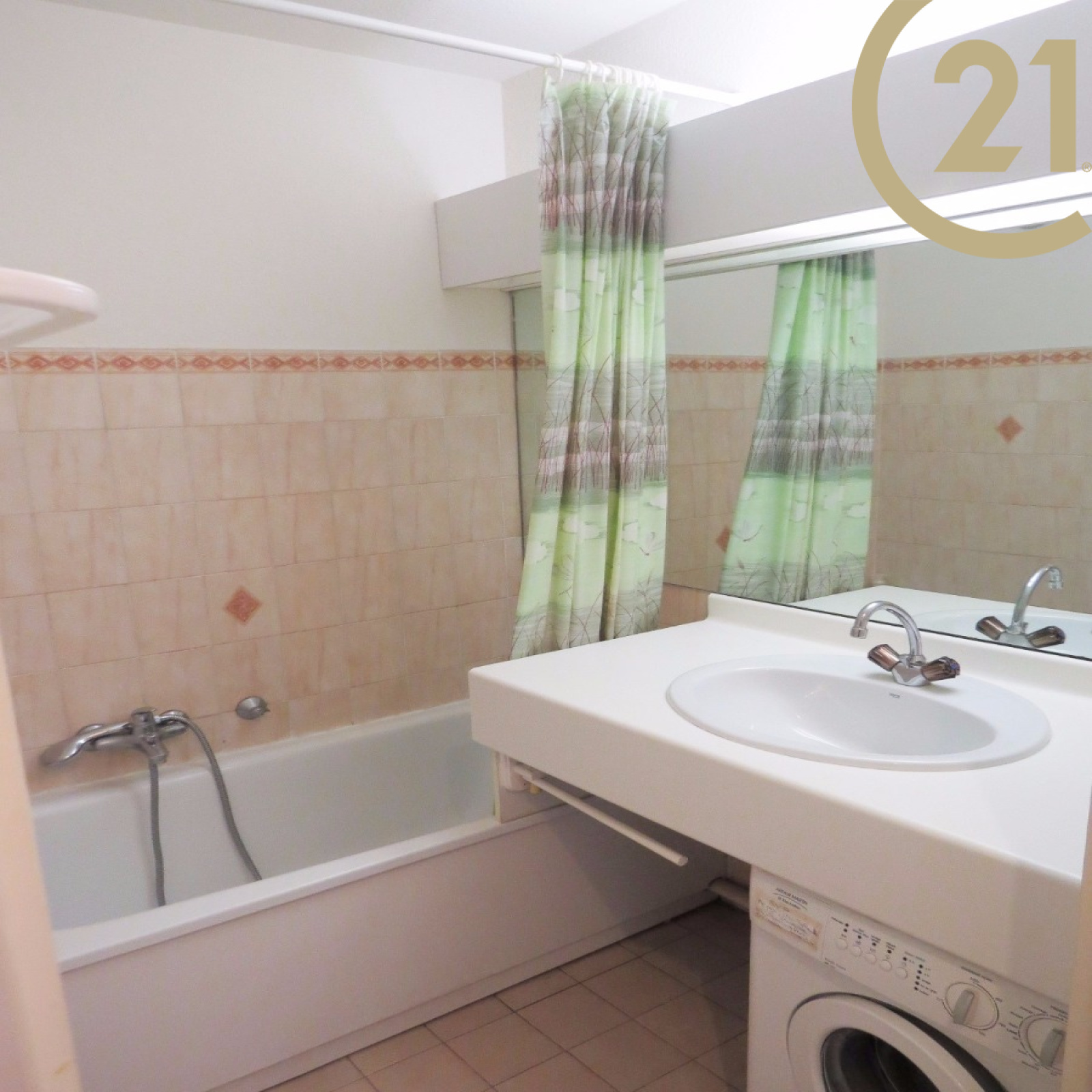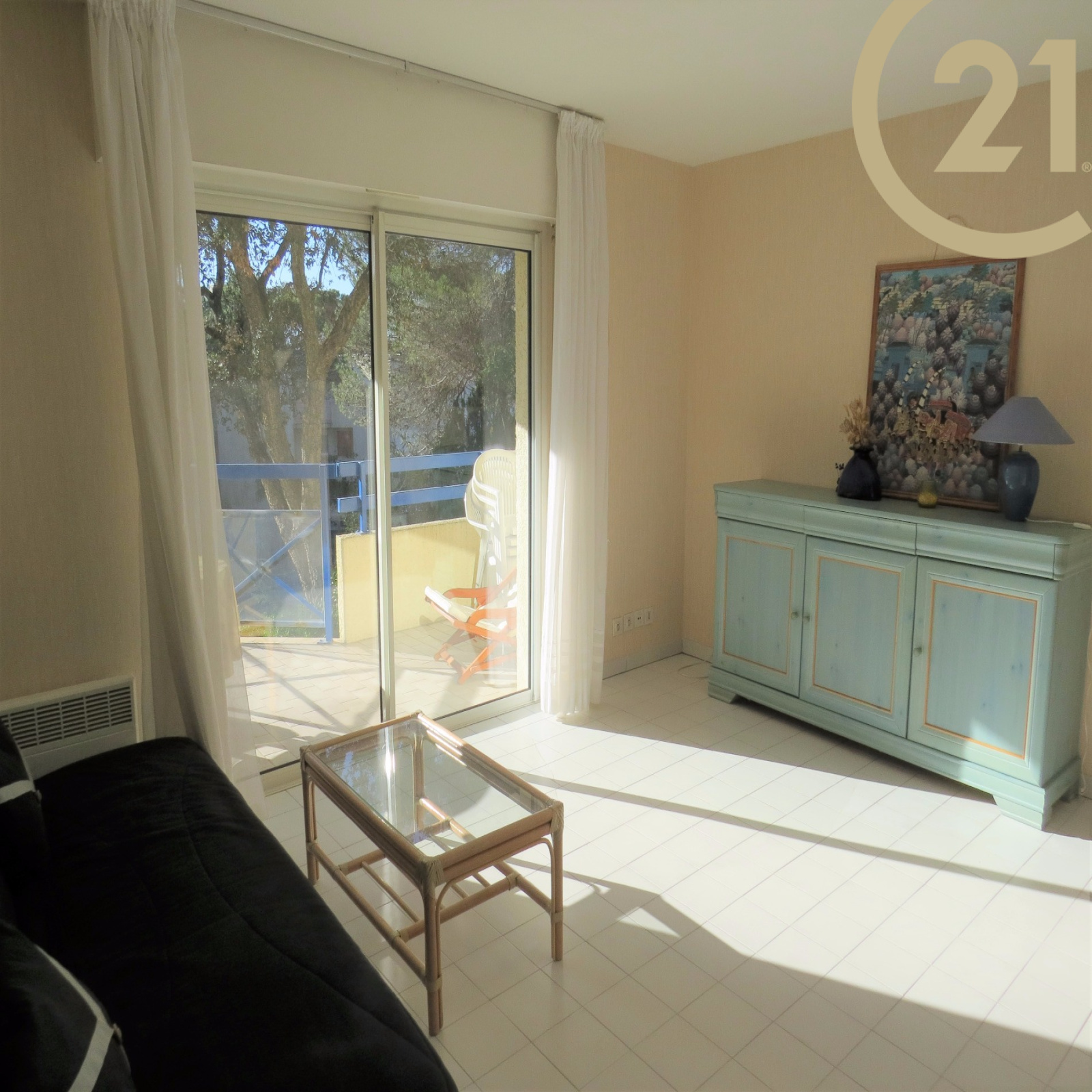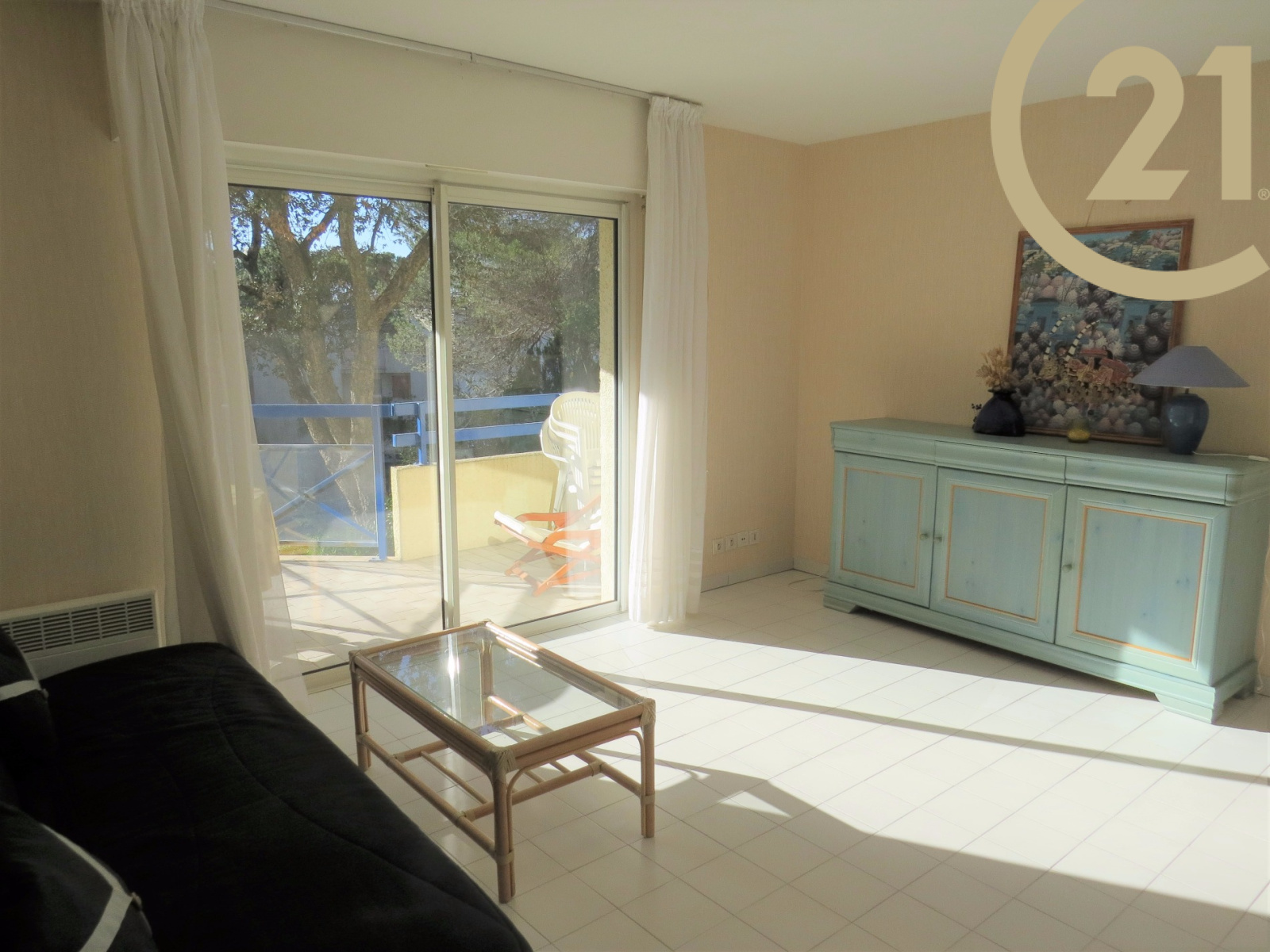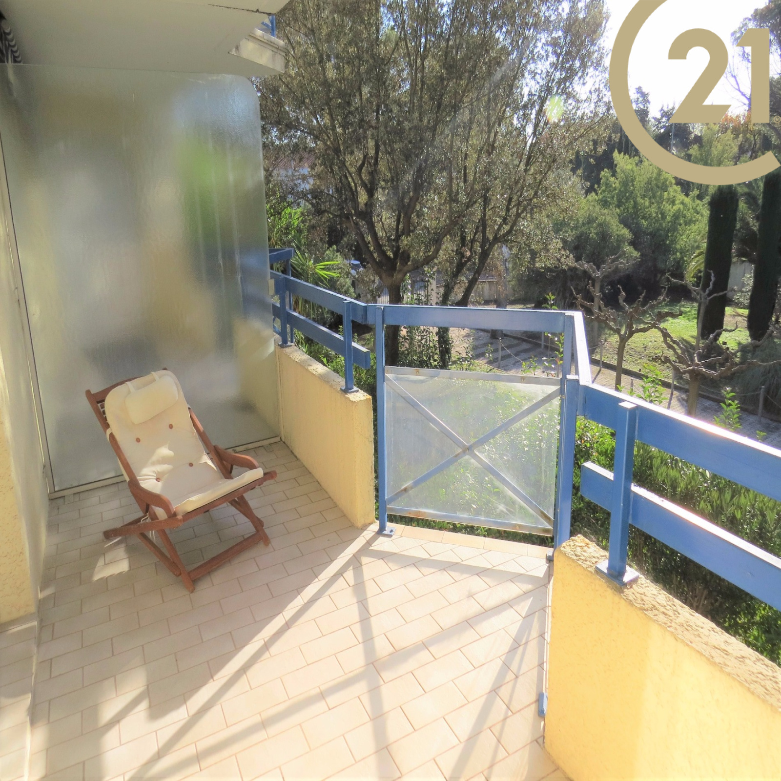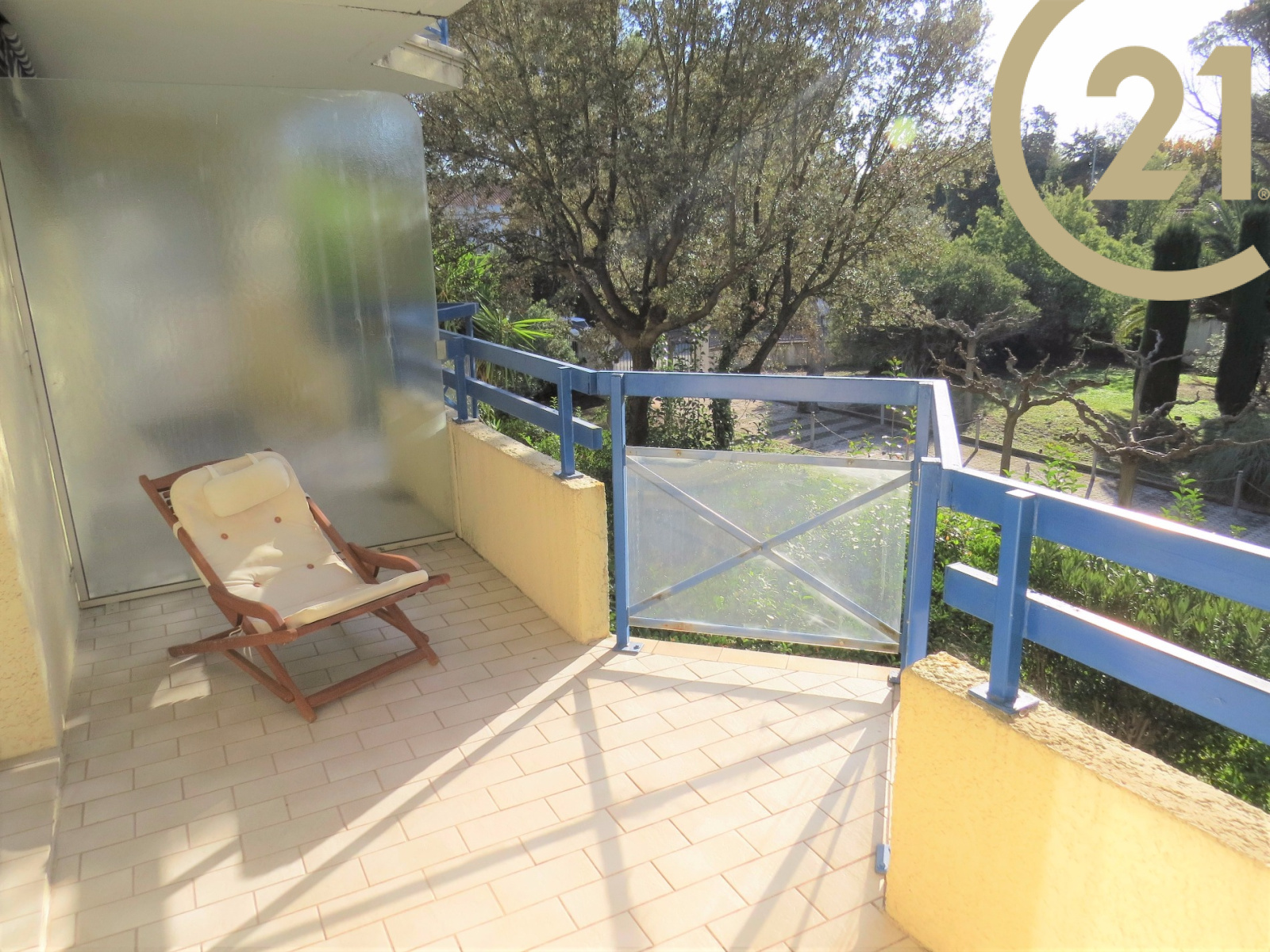SAINT-RAPHAEL - EXCLUSIVITE - SOUS COMPROMIS - A quelques minutes du centre-ville de Saint-Raphaël, charmant appartement 2 pièces de 32 m² situé dans une jolie résidence nichée au coeur de la verdure. Cet appartement très lumineux offre une entrée avec placard, un séjour avec cuisine ouverte donnant sur une spacieuse terrasse avec vue dégagée sur un joli parc arboré et exposée plein sud, une petite chambre, une salle de bain et des toilettes indépendantes. Une place de parking privative est vendue avec cet appartement. Arrêt de bus et centre de commercial à proximité.