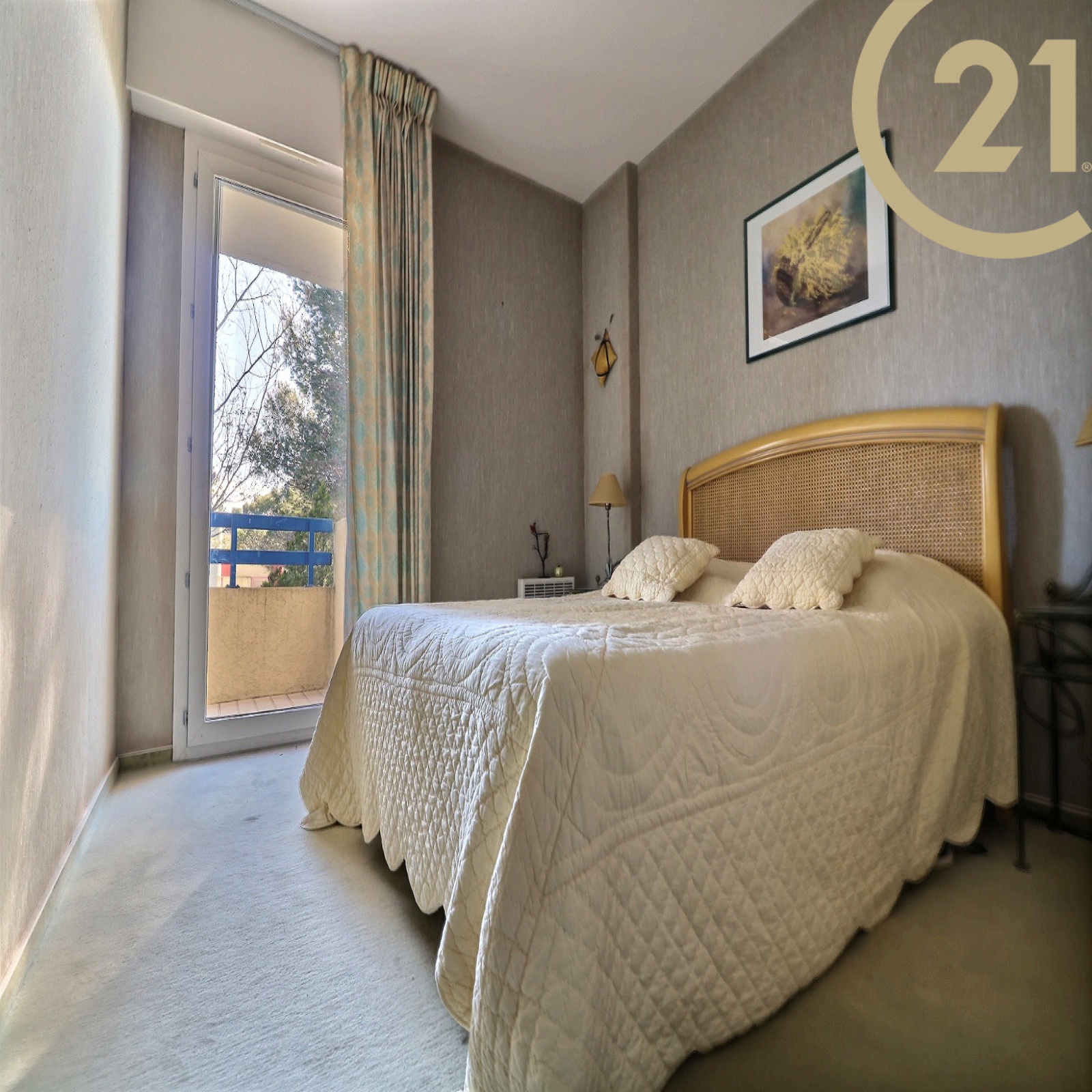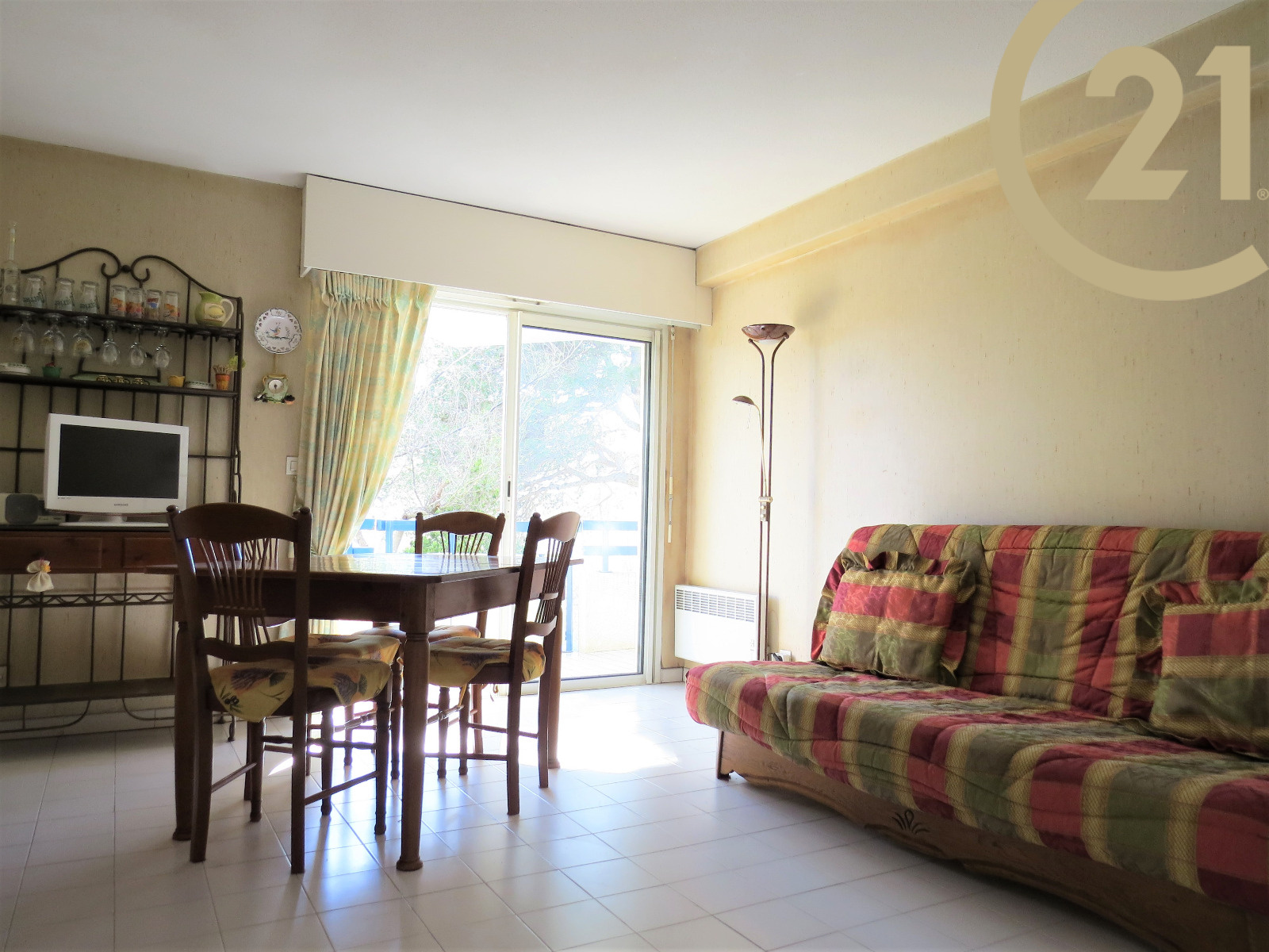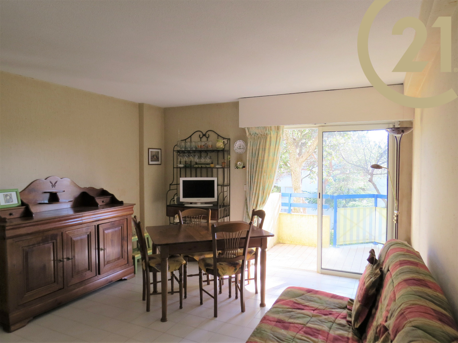 EXCLUSIVITE SAINT-RAPHAEL - A quelques minutes du centre-ville de Saint-Raphaël, charmant appartement 2 pièces de 39 m² situé dans une jolie résidence nichée au coeur de la verdure. Cet appartement très lumineux offre un séjour avec cuisine ouverte donnant sur une spacieuse terrasse avec vue dégagée sur un joli parc arboré et exposée plein sud, une chambre, un coin nuit avec lit superposés, une salle de bain, des WC et des rangements. Une place de parking privative et un garage en sous-sol sont vendus avec cet appartement. Arrêt de bus et centre de commercial à proximité.