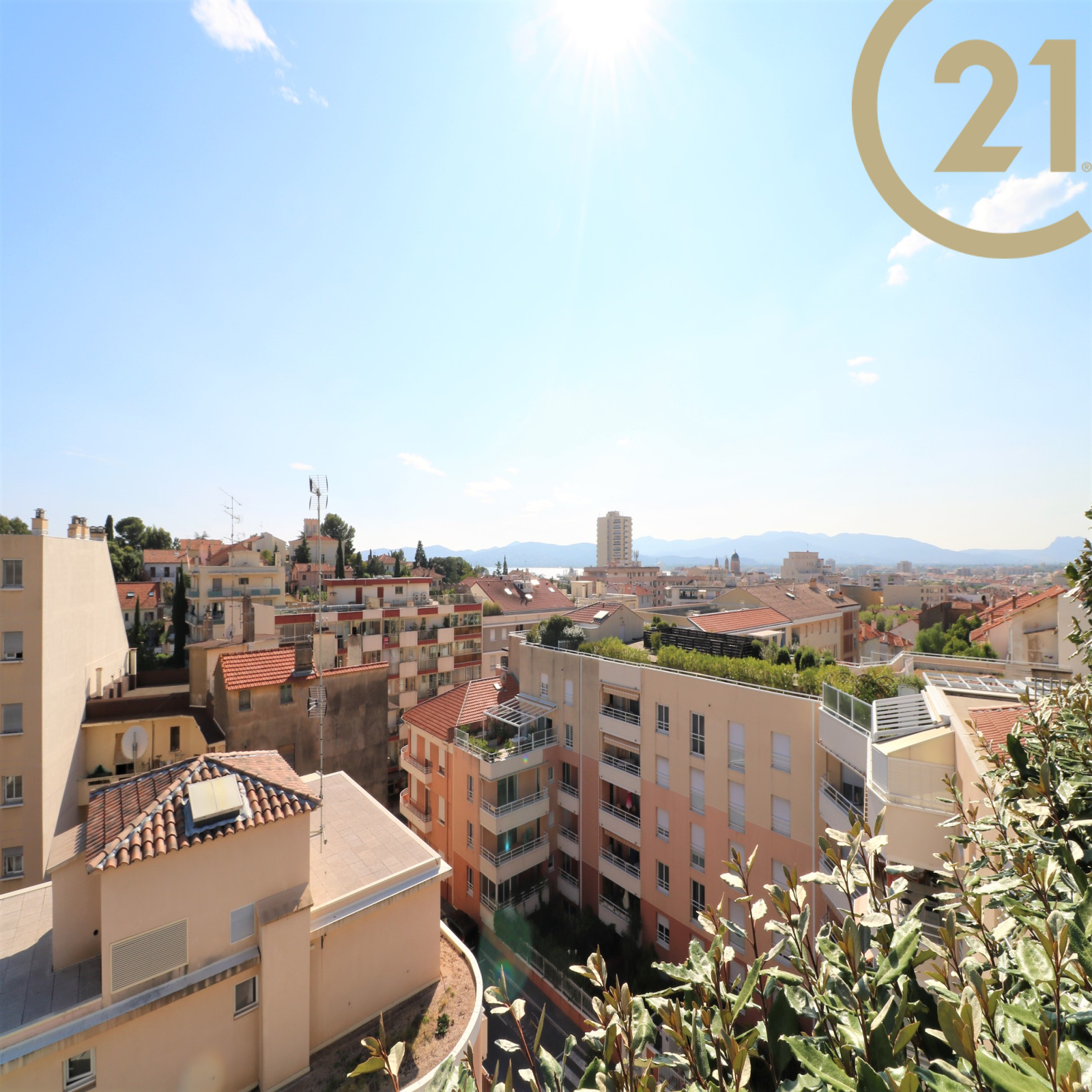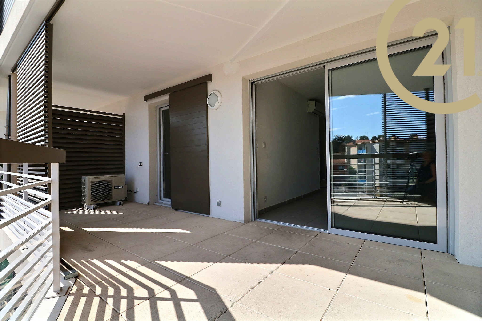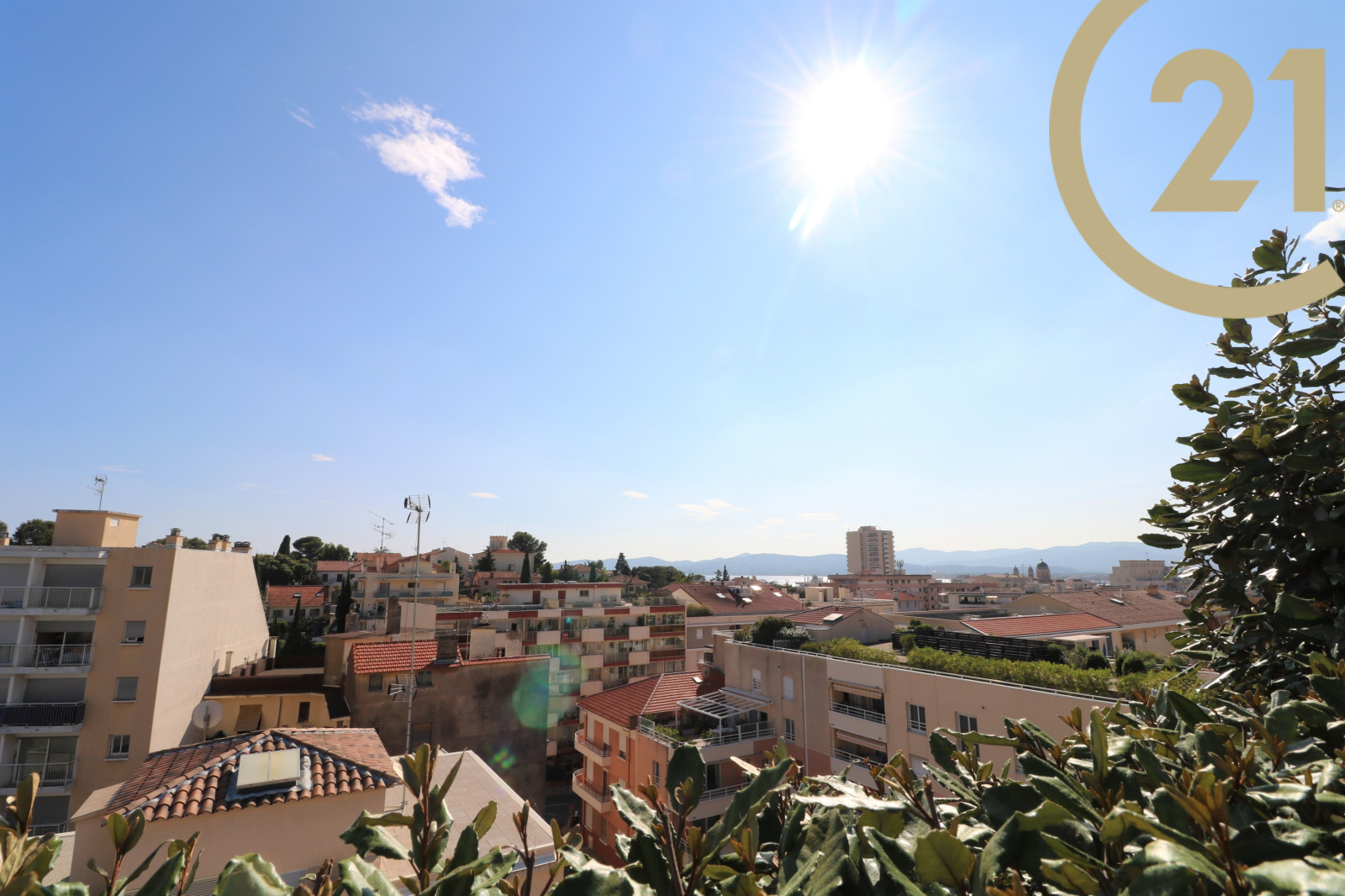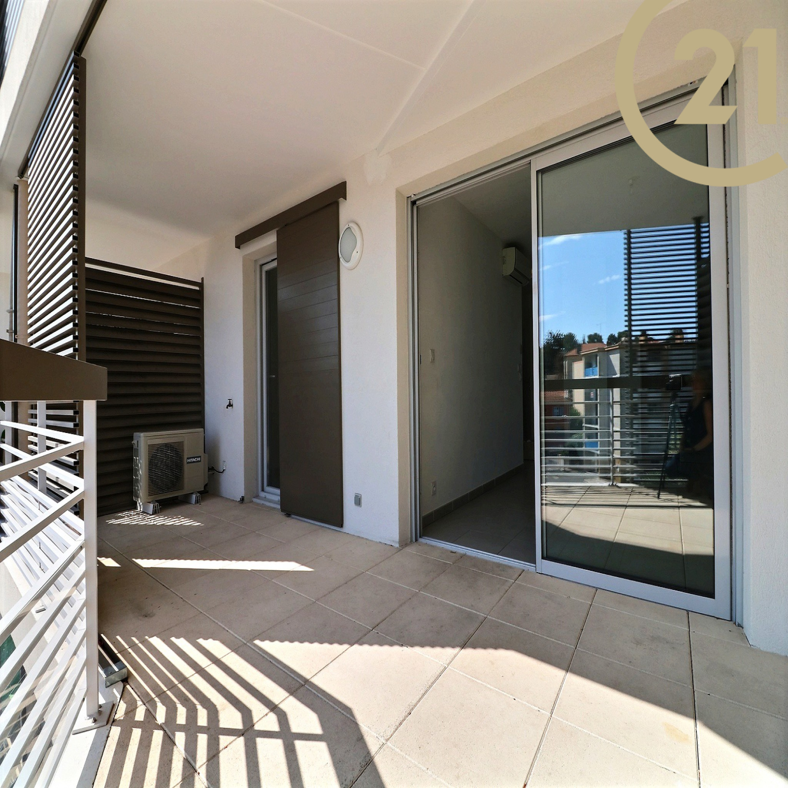 EXCLUSIVITE - SAINT-RAPHAEL CENTRE - Bel appartement 2 pièces de 43.98 m2 idéalement situé dans une résidence de standing récente en coeur de ville, à deux pas du centre historique, de la gare et des plages. Cet appartement contemporain en étage élevé offre un hall d'entrée avec placard, une grande et lumineuse pièce de vie avec cuisine américaine équipée de volets roulants électriques, une spacieuse chambre, une salle d'eau et des WC séparés. Le séjour et la chambre climatisés offrent un accès direct sur une vaste terrasse de plus de 15 m² exposée Plein Sud. Cette petite copropriété propose une architecture contemporaine aux lignes épurées. Légèrement en recul, l’ensemble a été pensé pour allier calme et sérénité. Les matériaux nobles, rigoureusement sélectionnés, assurent une esthétique et un confort remarquables. La résidence bénéficie d'une piscine sur le toit offrant une vue dégagée sur le centre-ville de Saint-Raphaël. Place de parking privative vendue avec l'appartement. Copropriété de 28 lots à usage d'habitation. Charges annuelles : 981 euros.