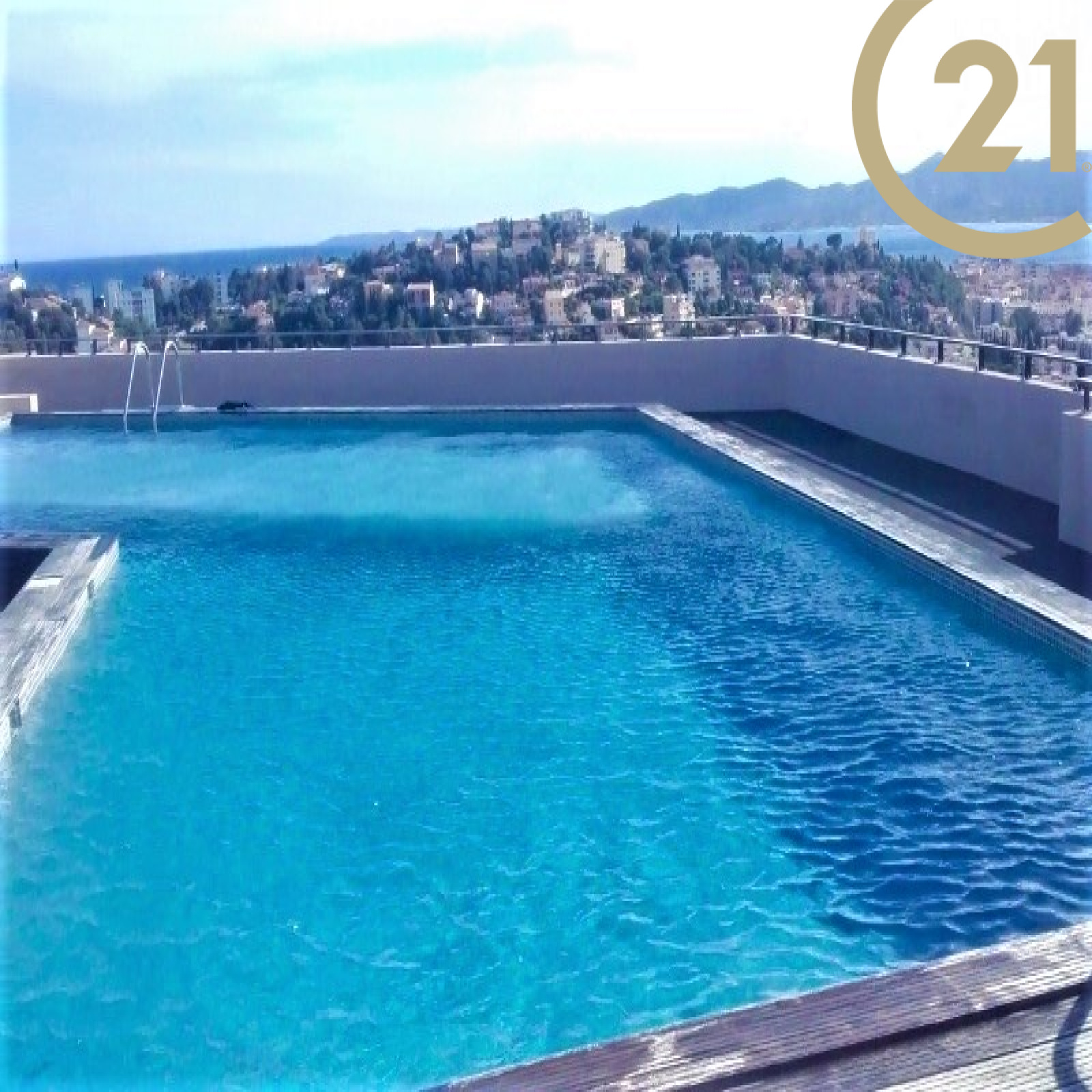 EXCLUSIVITE SAINT-RAPHAEL, dans une résidence de standing récente avec piscine, bel appartement 4 pièces en rez-de-jardin de 85m² avec vue dégagée jusqu'à la mer.