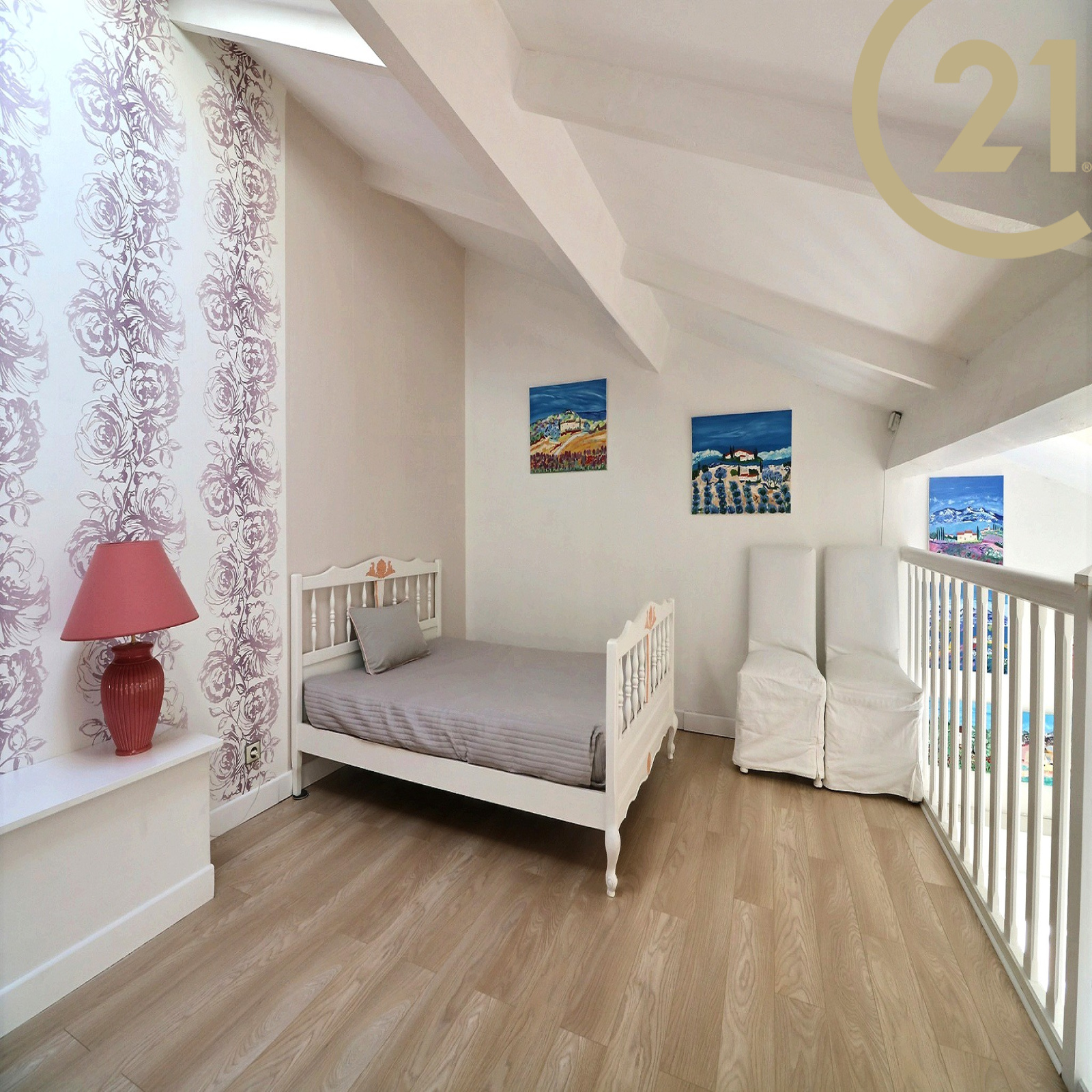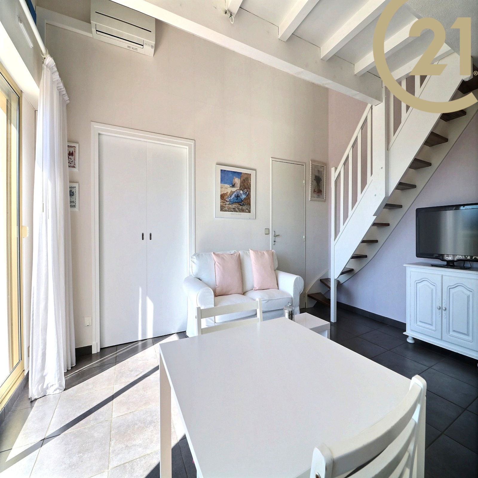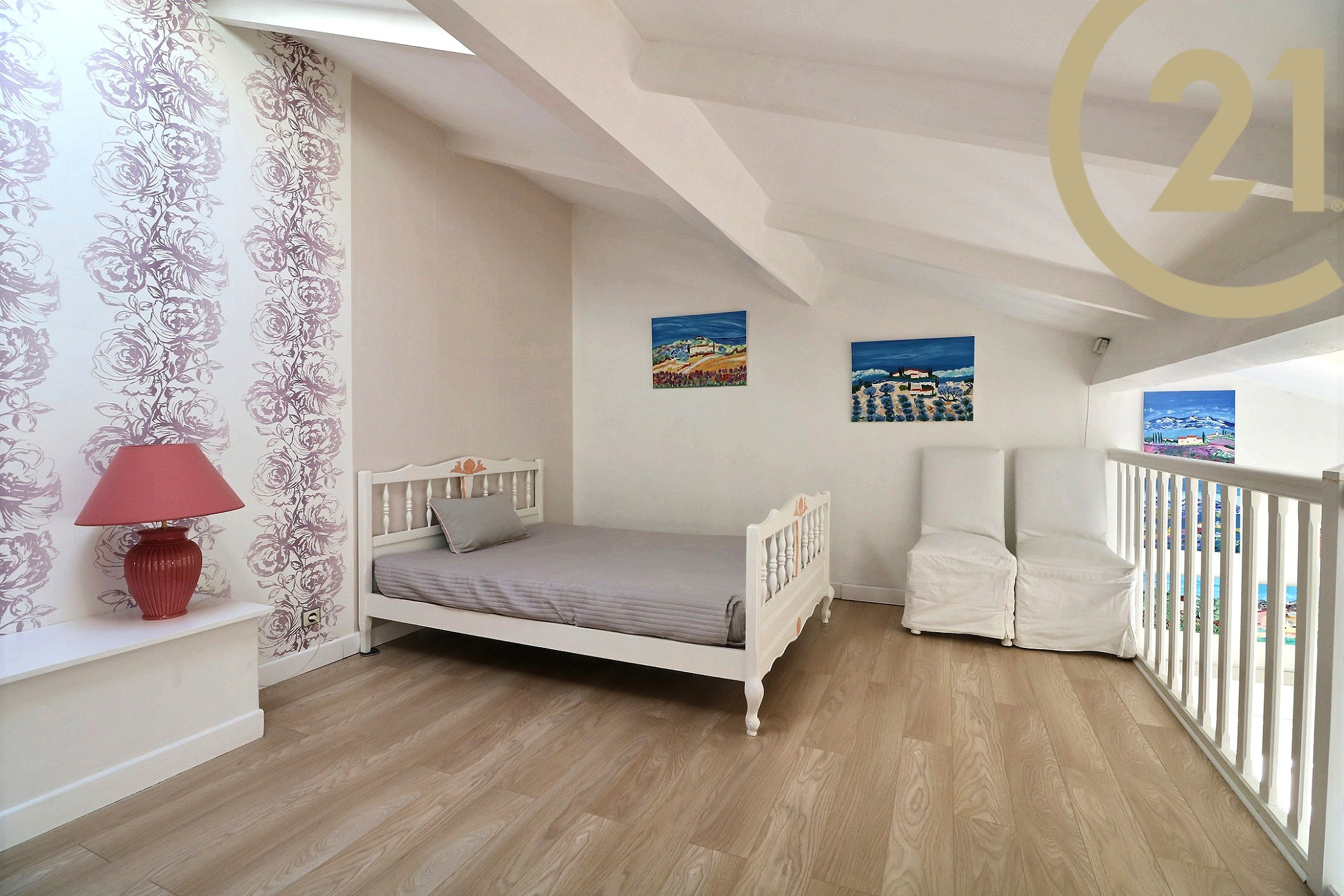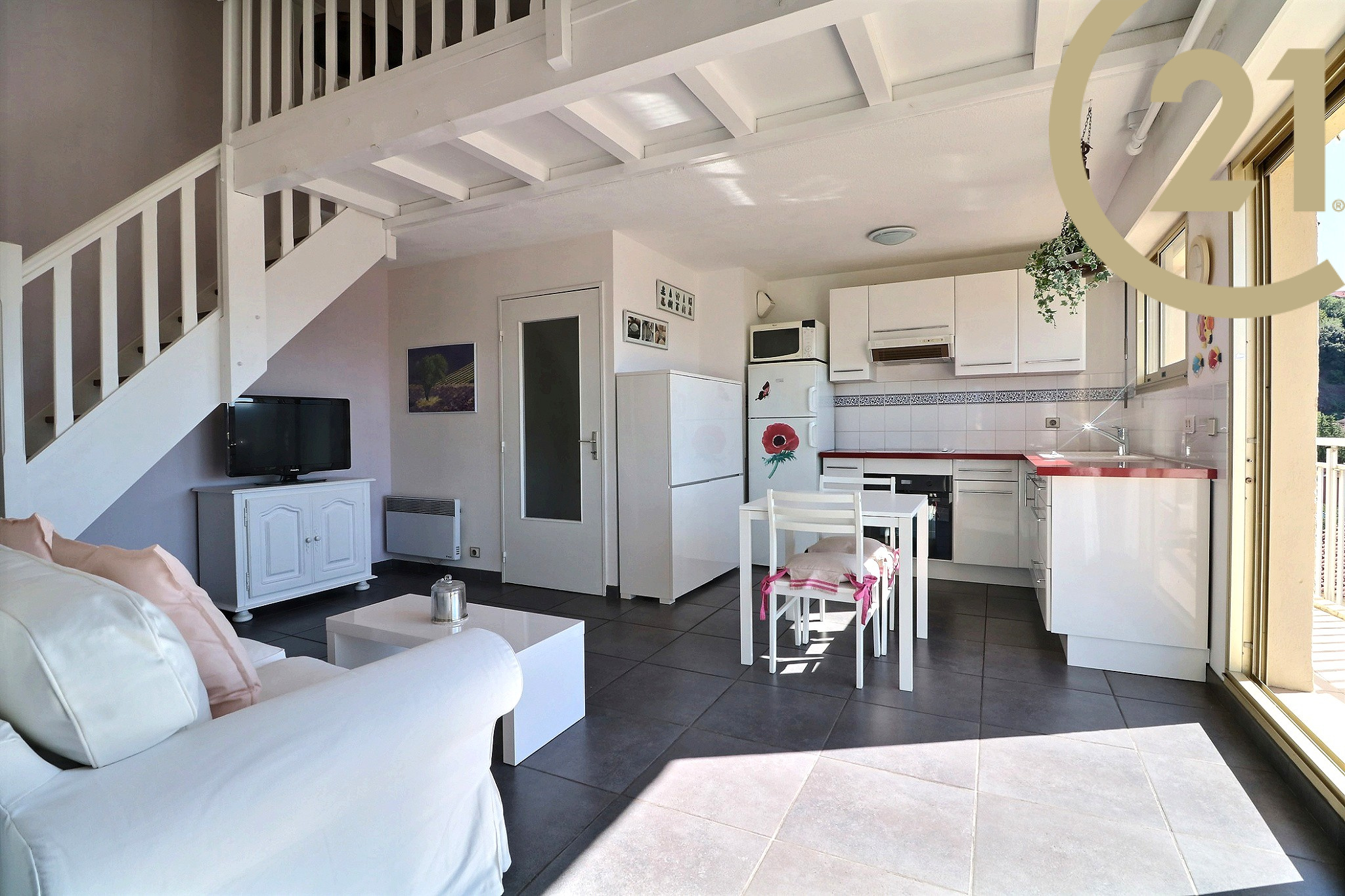 EXCLUSIVITE SAINT-RAPHAEL PROCHE CENTRE - Appartement entièrement rénové avec goût situé à proximité immédiate du centre ville de Saint-Raphaël dans une petite résidence sécurisée avec ascenseur. Cet appartement offre une entrée avec placard, un lumineux séjour avec cuisine entièrement équipée ouvert sur une terrasse bénéficiant d'une exposition Sud/Ouest et d'une jolie vue dégagée, une chambre donnant sur une grande terrasse couverte, une salle d'eau, des toilettes séparées et un dégagement avec rangements. Une grande mezzanine de plus de 13 m² avec rangements et velux motorisé complète cet espace. Une place de parking privative est vendue avec l'appartement. Gare, centre-ville et plage / mer accessibles en quelques minutes à pied. Copropriété de 51 lots. Charges annuelles : 1604 euros.