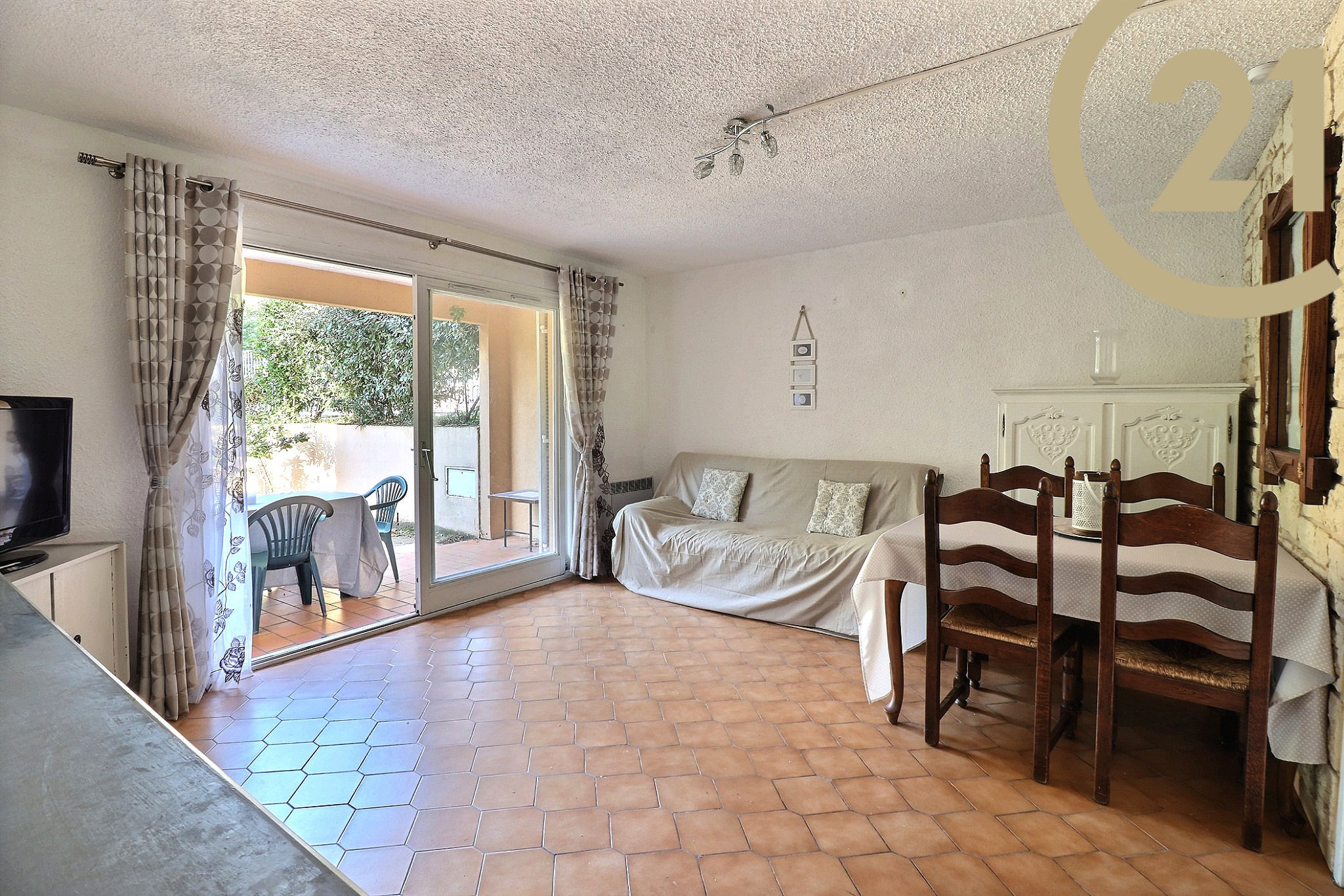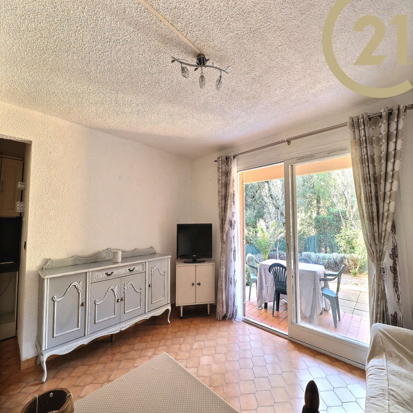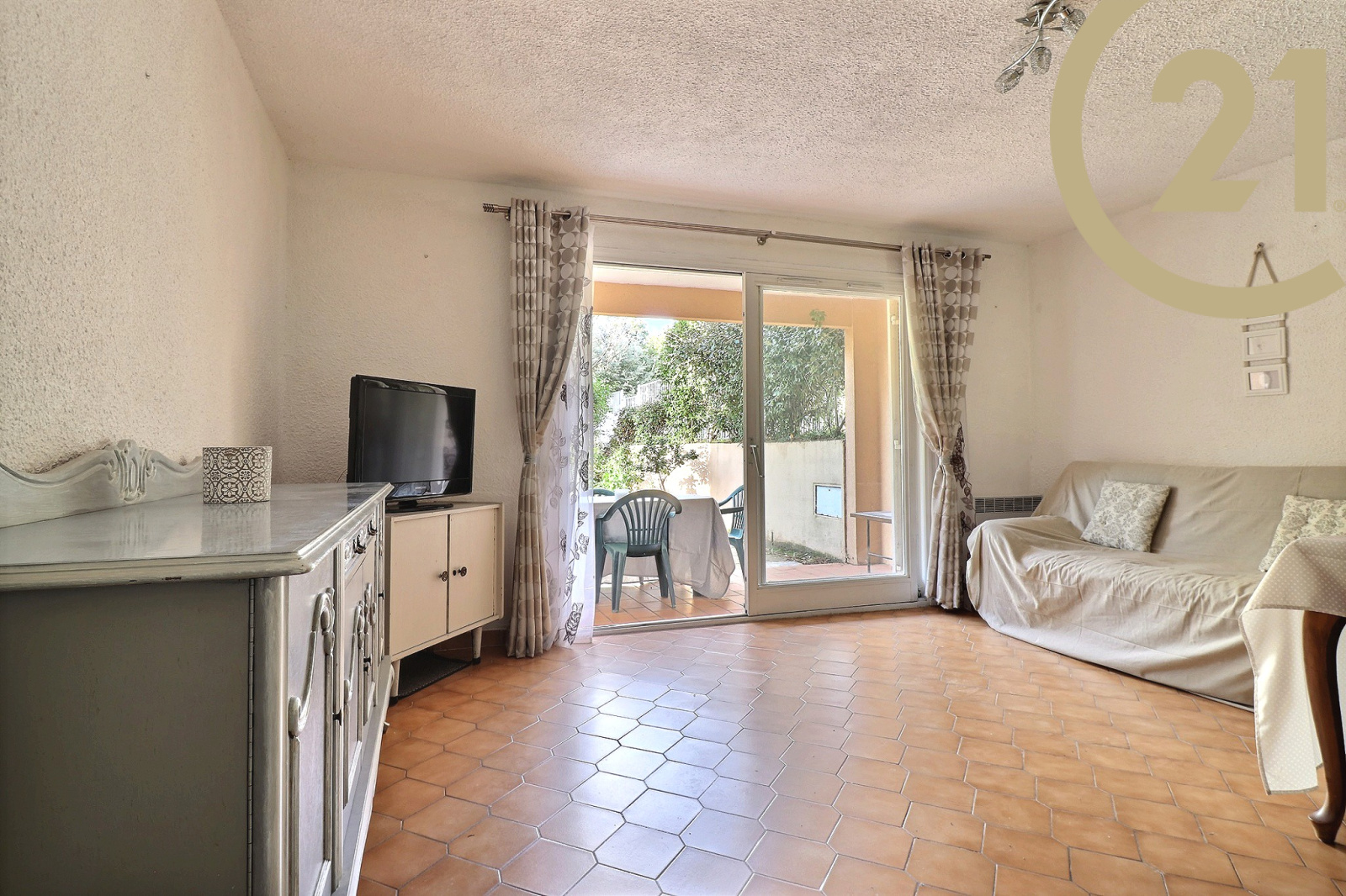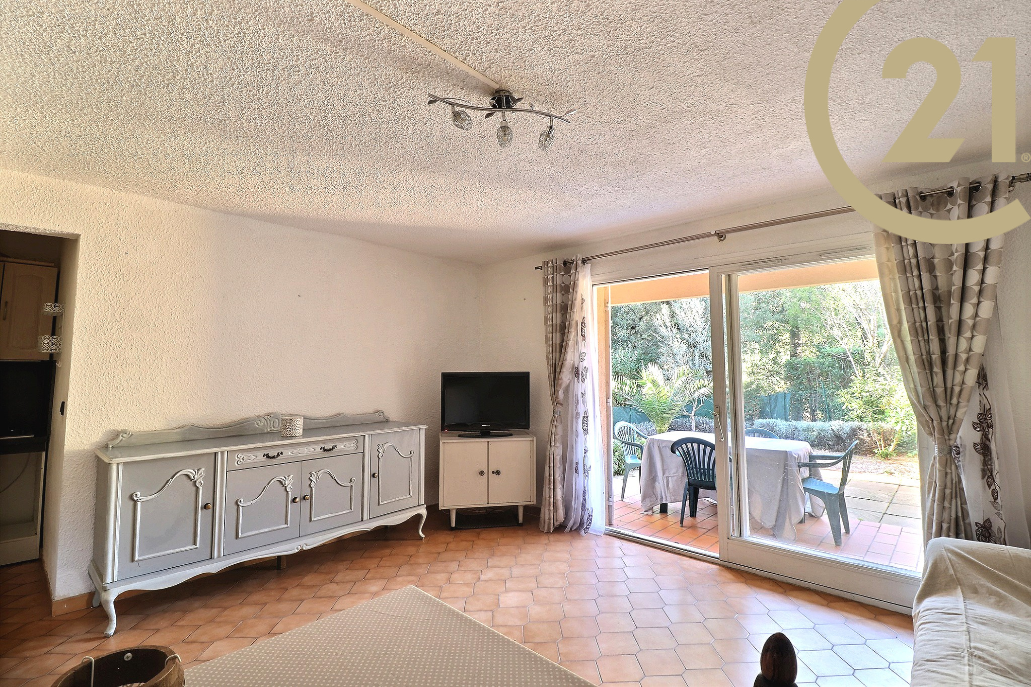 EXCLUSIVITE SAINT-RAPHAEL VALESCURE - Charmant appartement 1/2 pièces de 35 m² situé dans une jolie résidence avec piscine et tennis nichée au coeur de la verdure. Cet appartement offre une entrée avec grands placards, un spacieux séjour donnant sur une terrasse avec jardin, une cuisine équipée, un coin nuit avec fenêtre pouvant accueillir un lit double et une salle d'eau avec WC. Transformation en T2 possible. Vous apprécierez l'environnement verdoyant et le calme absolu à proximité du centre-ville de Saint-Raphael. Une cave et une place de parking privative sont vendues avec cet appartement. Résidence ravalée récemment. Copropriété de x lots - Charges courantes annuelles : 1108 €.