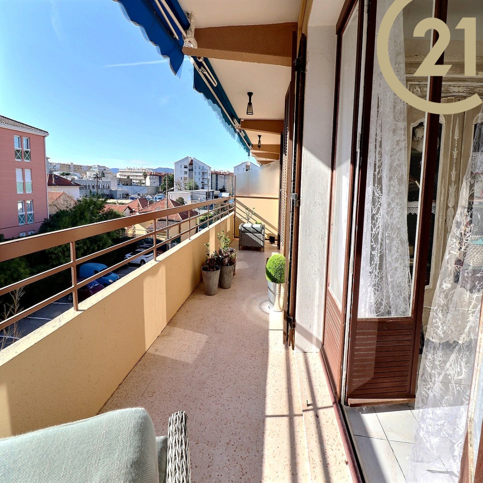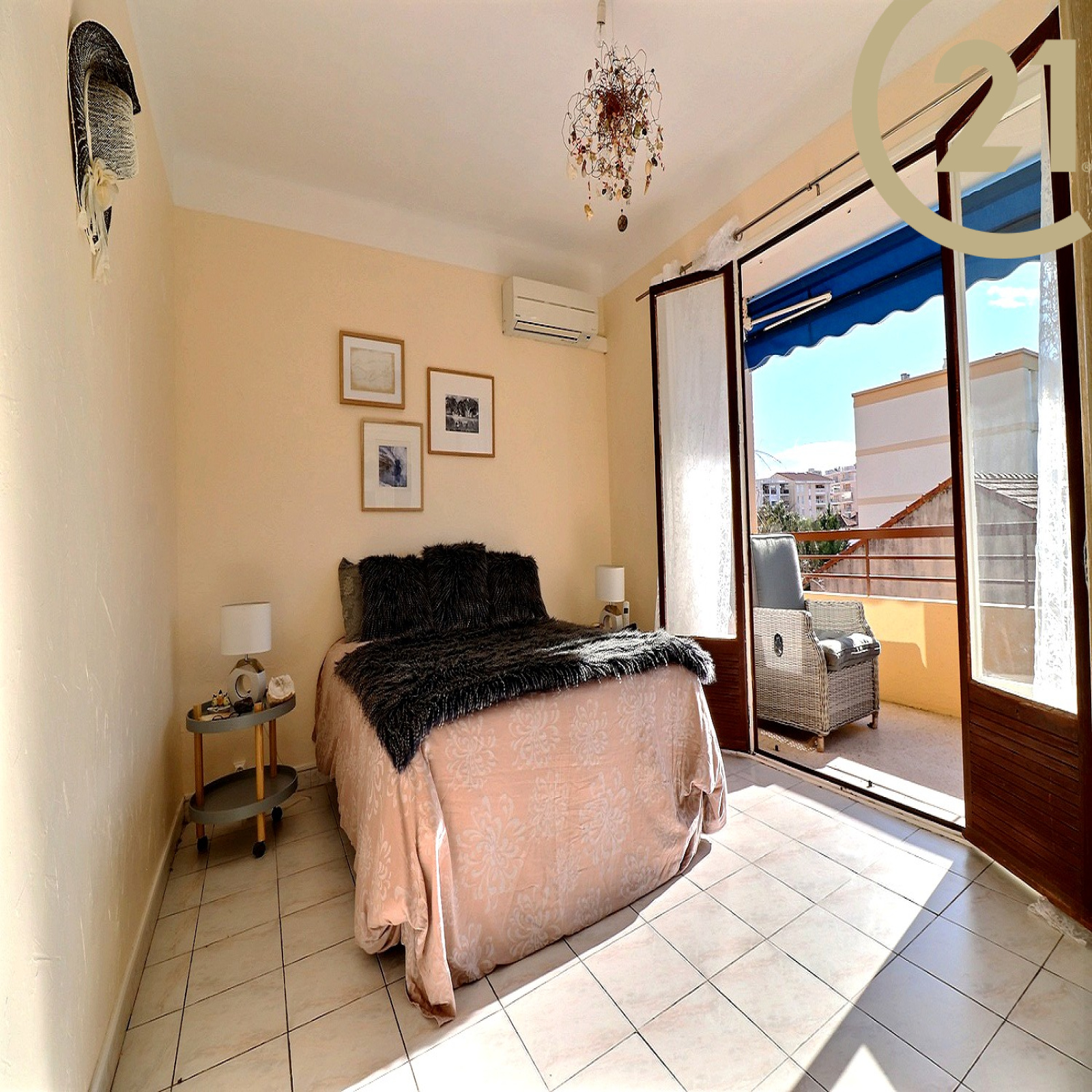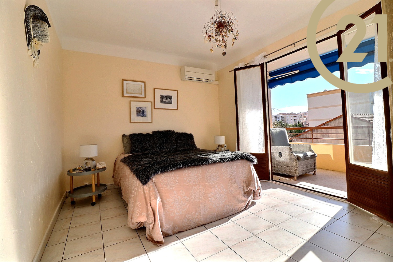 EXCLUSIVITE SAINT-RAPHAEL, dans une petite résidence sécurisée, Appartement 3 pièces très bien agencé comprenant une entrée avec rangement, un wc indépendant avec fenêtre, une première chambre, une salle de bains avec fenêtre, une seconde chambre avec accès terrasse, un séjour confortable avec accès terrasse et une cuisine indépendante équipée. Spacieuse terrasse de 14 m² environ exposée Sud. L'appartement en pignon d'immeuble bénéficie d'une tripe exposition Nord / Est / Sud. Un parking privatif complète ce bien.