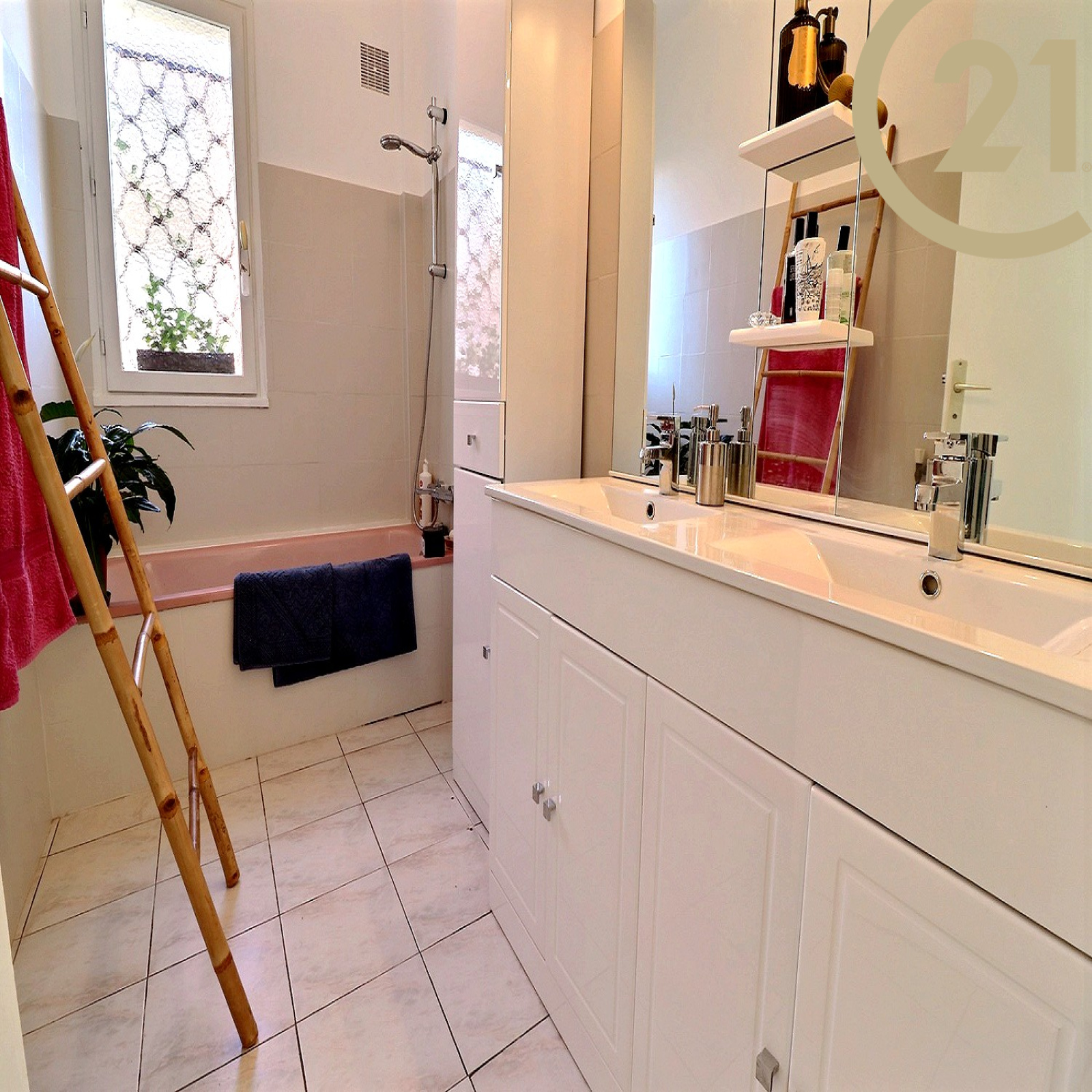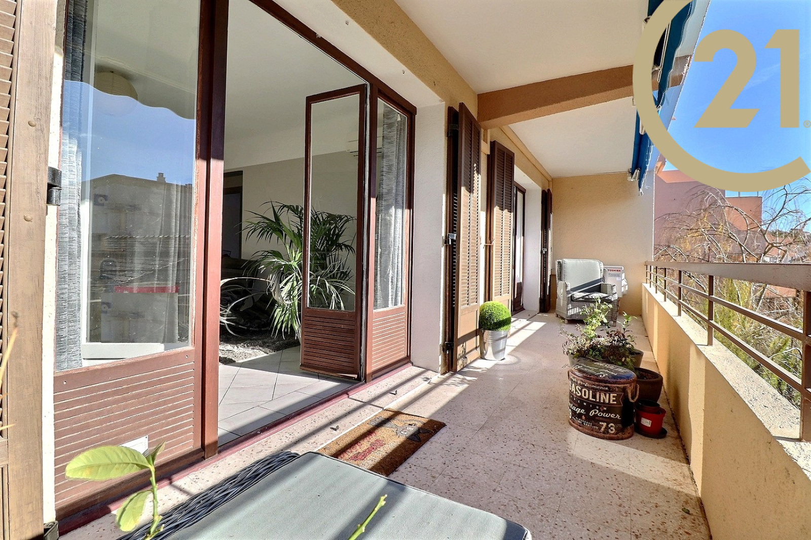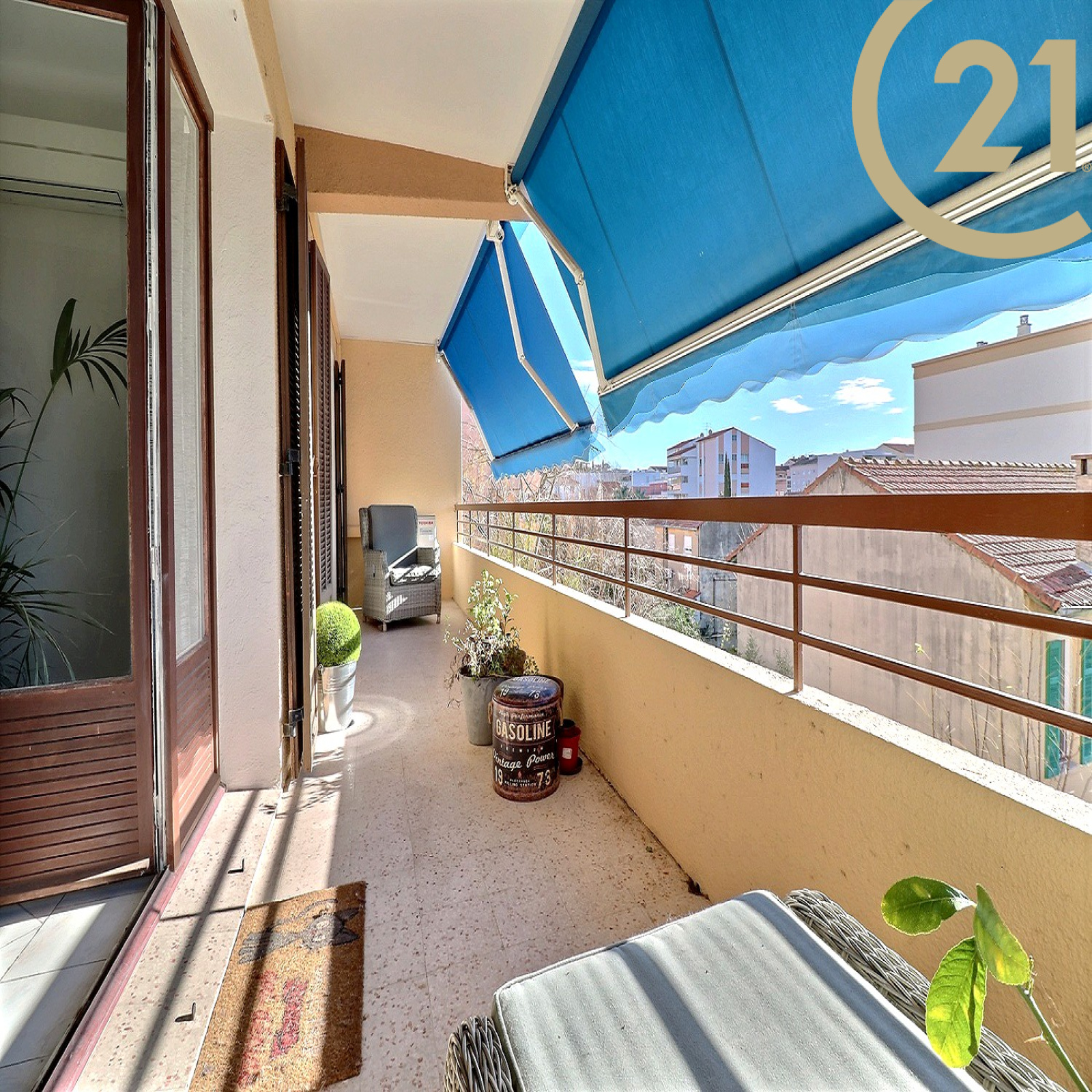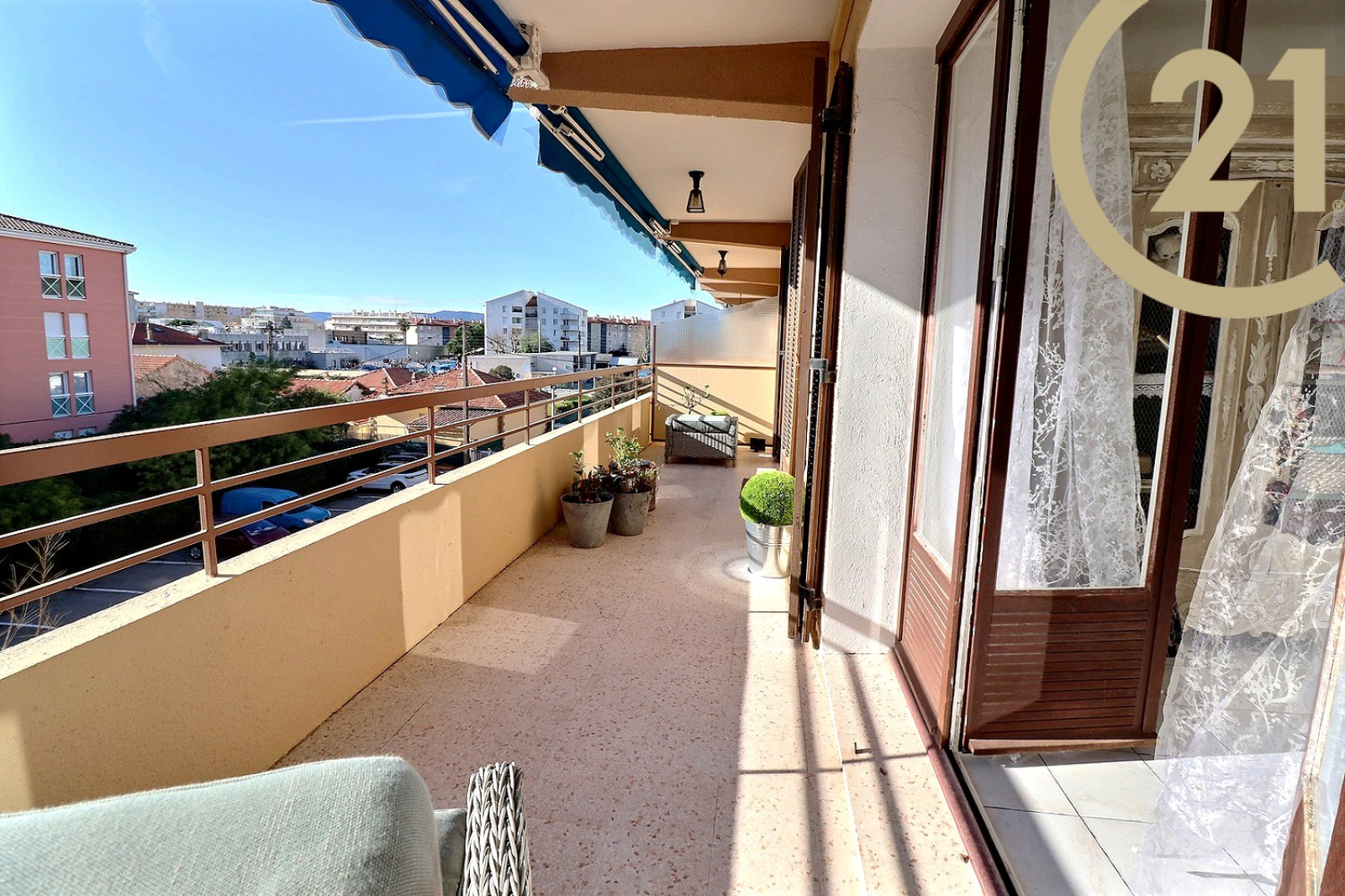 EXCLUSIVITE SAINT-RAPHAEL, dans une petite résidence sécurisée, Appartement 3 pièces très bien agencé comprenant une entrée avec rangement, un wc indépendant avec fenêtre, une première chambre, une salle de bains avec fenêtre, une seconde chambre avec accès terrasse, un séjour confortable avec accès terrasse et une cuisine indépendante équipée. Spacieuse terrasse de 14 m² environ exposée Sud. L'appartement en pignon d'immeuble bénéficie d'une tripe exposition Nord / Est / Sud. Un parking privatif complète ce bien.