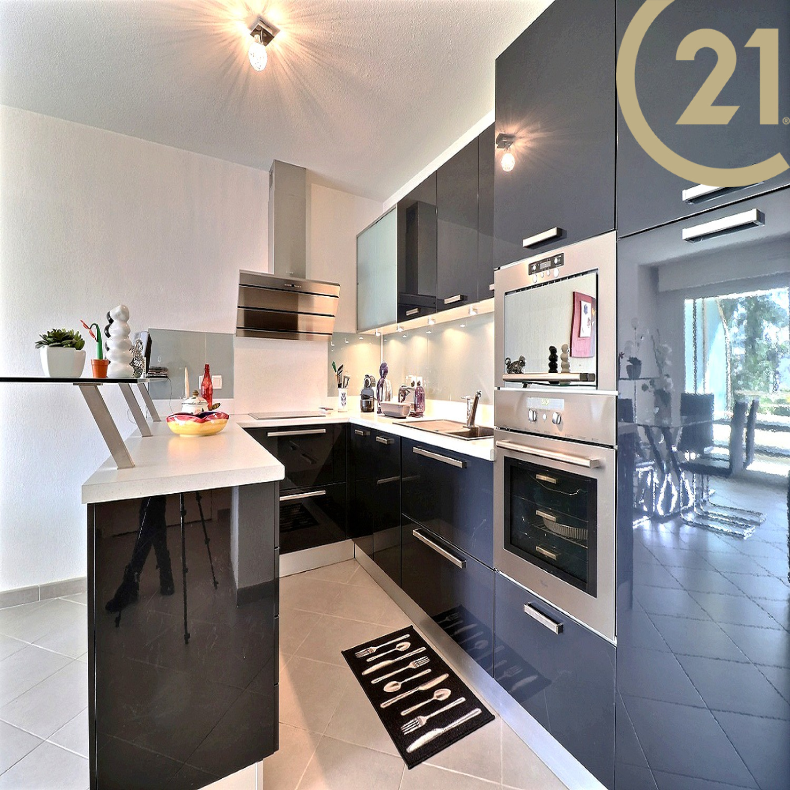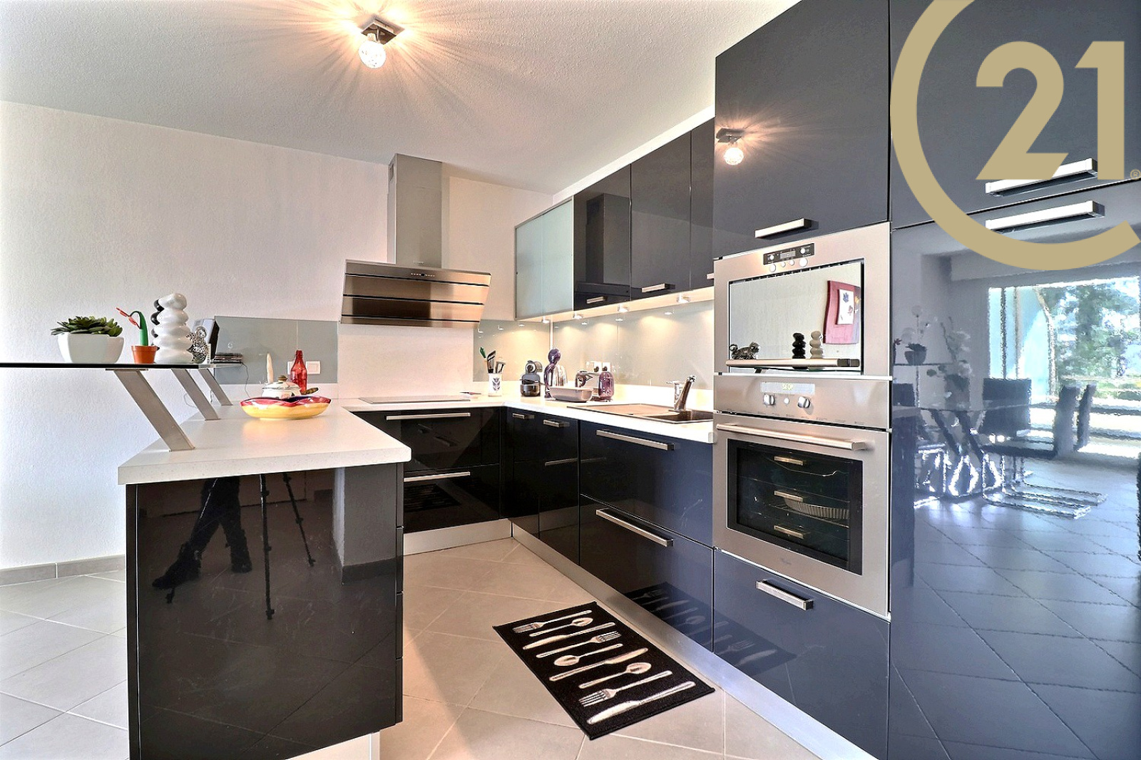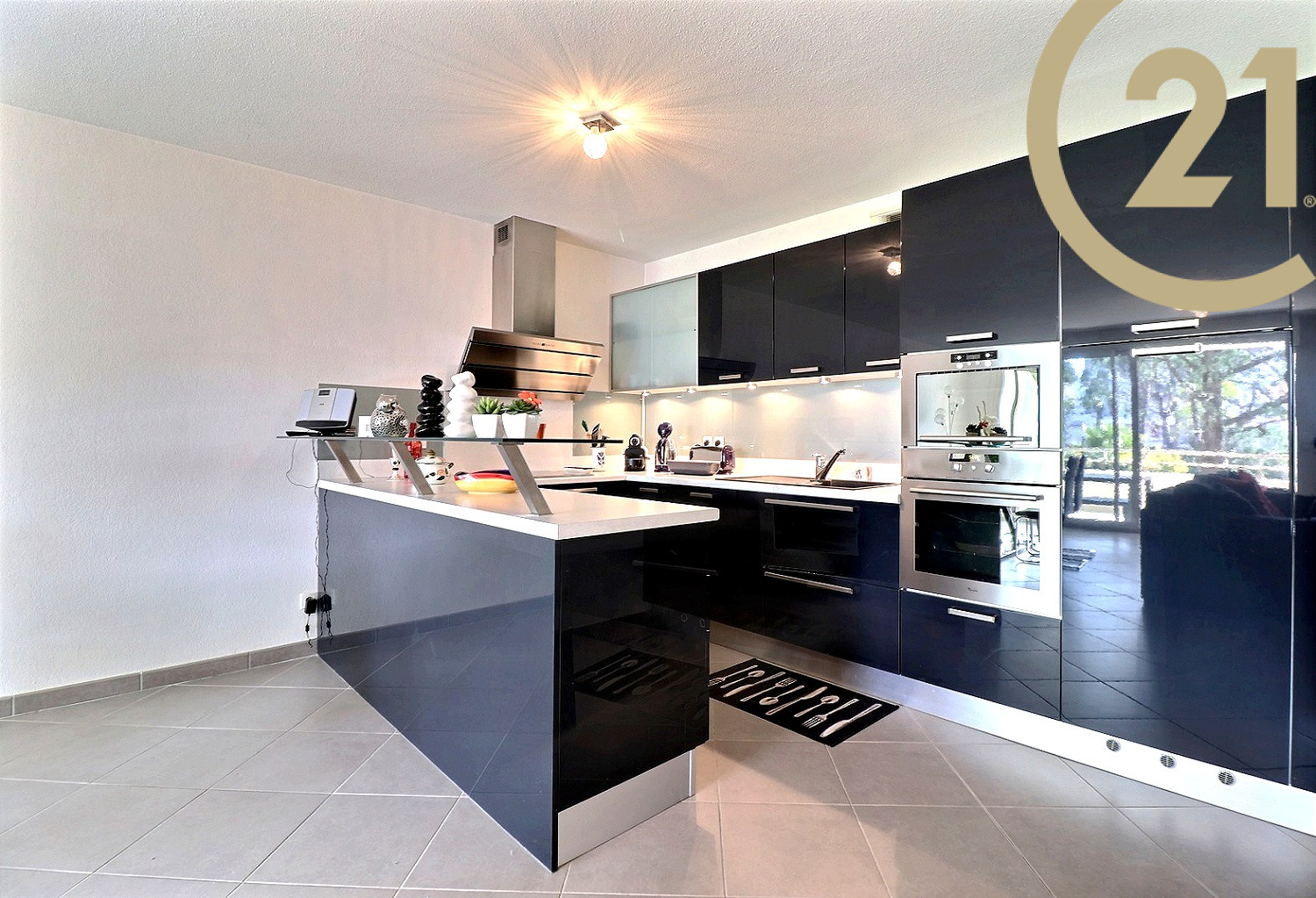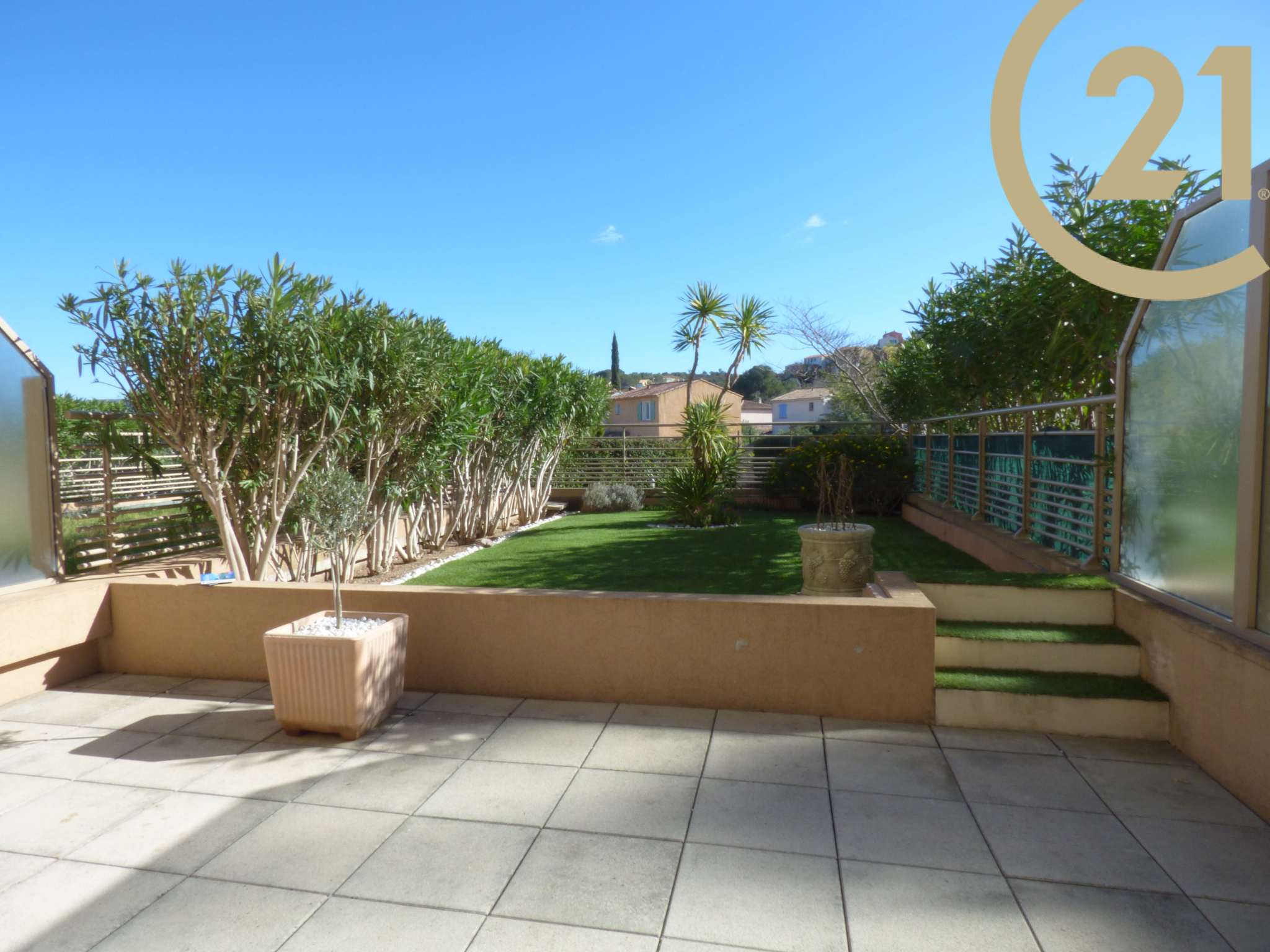 EXCLUSIVITE SAINT-RAPHAEL - Bel appartement traversant 3 pièces de 85.57 m² situé dans une résidence de standing récente à deux pas du centre-ville. Cet appartement se compose : d'un spacieux séjour avec cuisine ouverte équipée et aménagée donnant sur une grande terrasse de 20 m² exposée Ouest avec vue dégagée sur la verdure, deux grandes chambres avec placards aménagés donnant sur un jardin exposé Sud-Est de 50 m², une buanderie, une salle d'eau avec douche à l'italienne et des WC indépendants. Très belles prestations : double vitrage, volets roulants électriques, vue degagée sur Parc.. Un garage et une cave sont vendus avec l'appartement. Situation géographique idéale : centre-ville, écoles, commerces, plages accessibles à pied.