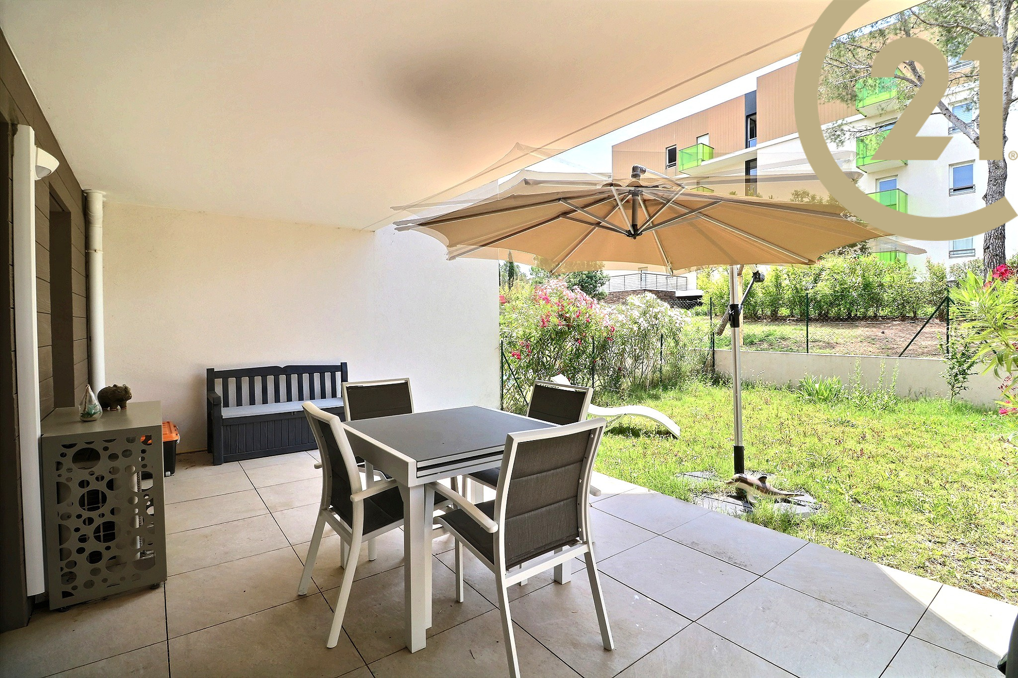 EXCLUSIVITE SAINT-RAPHAEL -Joli appartement 3 pièces de 71 m² situé en rez-de-jardin dans une résidence récente avec piscine à quelques minutes des commodités. Cet appartement traversant offre une entrée avec placard, une spacieuse pièce de vie de plus de 32 m² avec cuisine récente entièrement équipée et fonctionnelle, deux spacieuses chambres avec dressing, une salle de bains et des WC séparés avec lave-mains. La pièce de vie offre un accès direct sur une large terrasse couverte de plus de 21 m² et un jardin de 45 m² exposés Sud. Volets roulants centralisés et climatisation réversible. Cet appartement est vendu avec un garage fermé en sous-sol. Possibilité d'acquérir une place de parking couverte en supplément. Centre-ville, plages, commerces et écoles accessibles en quelques minutes seulement. Copropriété de 104 lots. Charges annuelles : 1721 €.