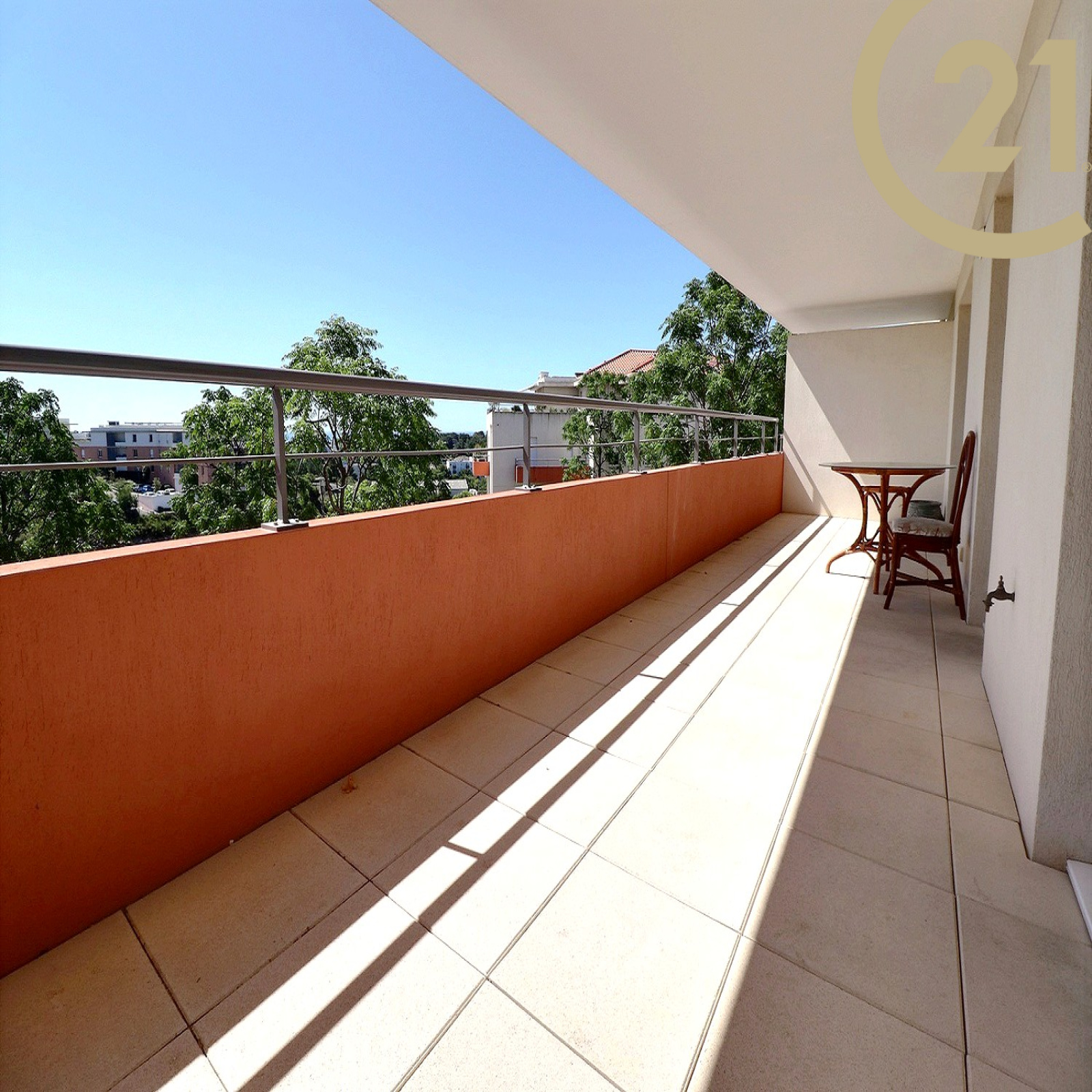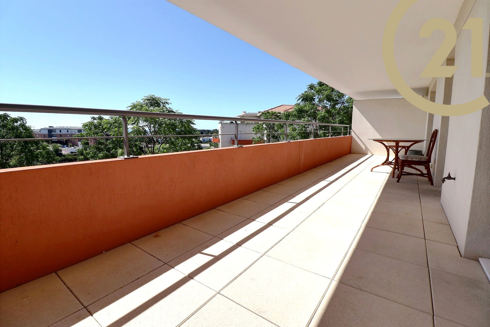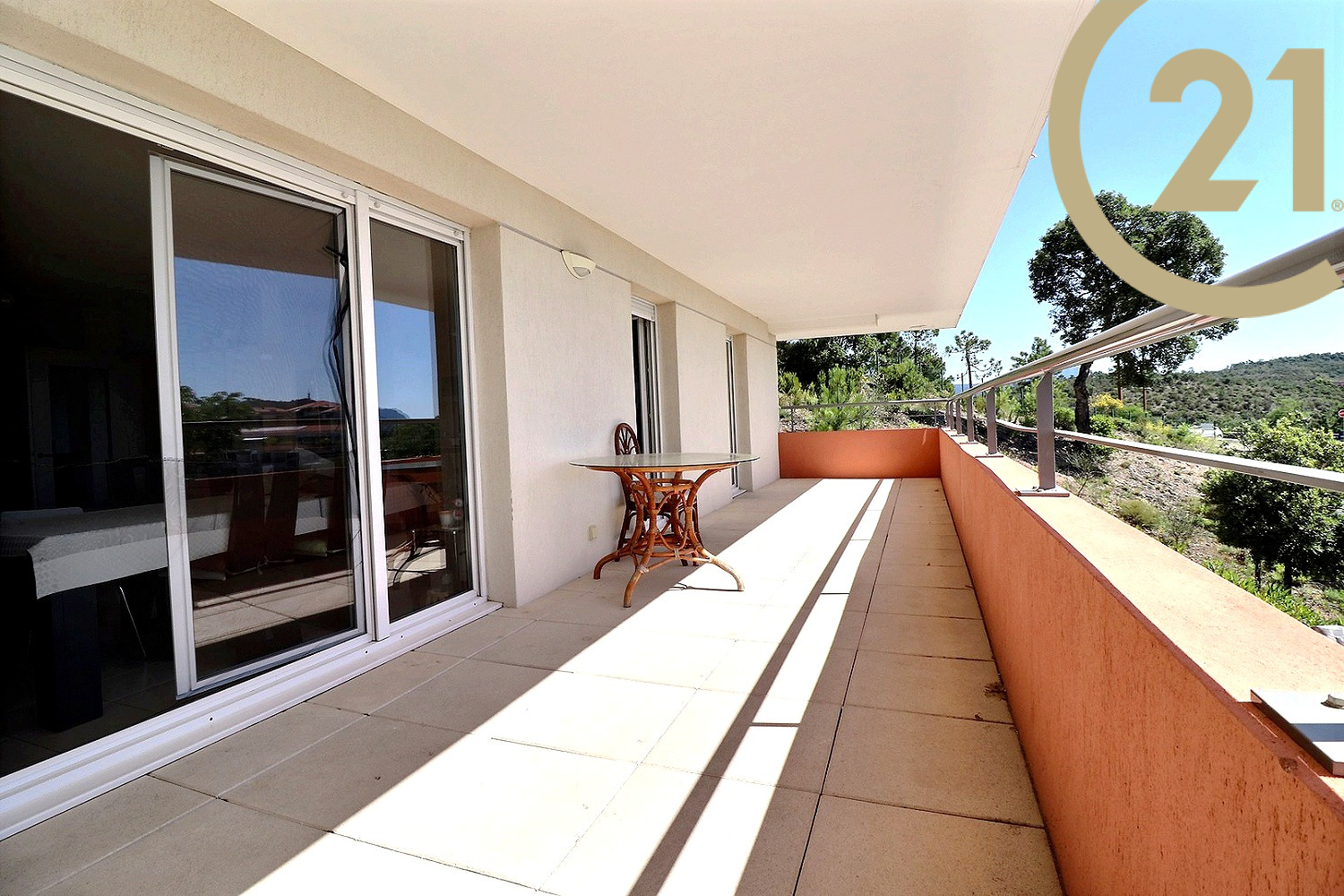 SAINT-RAPHAEL PROCHE CENTRE VILLE, dans une résidence de standing récente et sécurisée, spacieux appartement 3 pièces comprenant une entrée, un séjour avec cuisine ouverte équipée, un coin nuit composé de 2 chambres avec dressings intégrés et une salle de bains. Le séjour et l'une des chambres donnent sur une grande terrasse de 22 m² avec aperçu mer et vue esterel.
