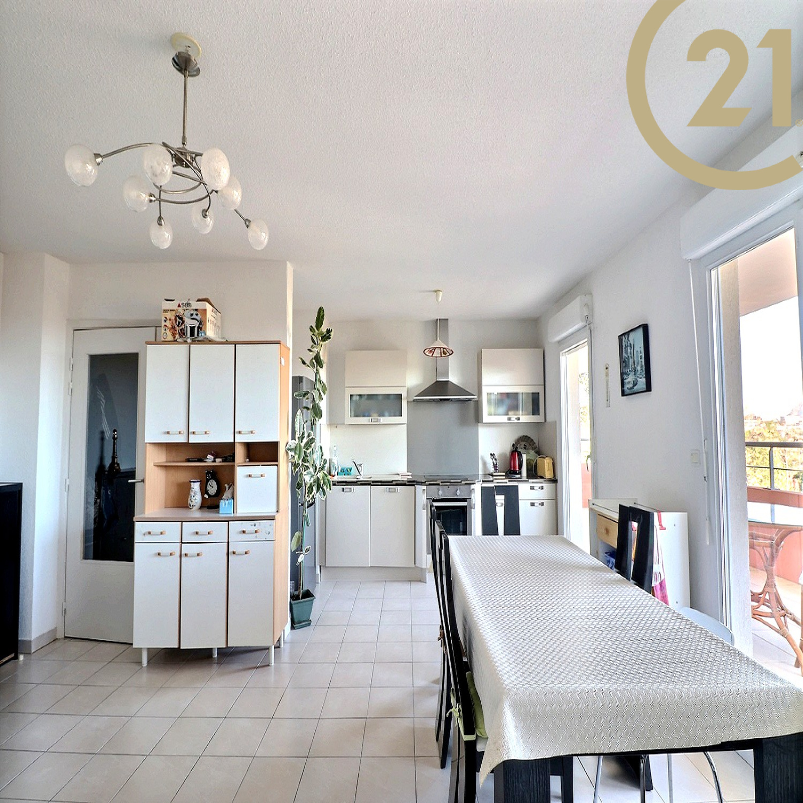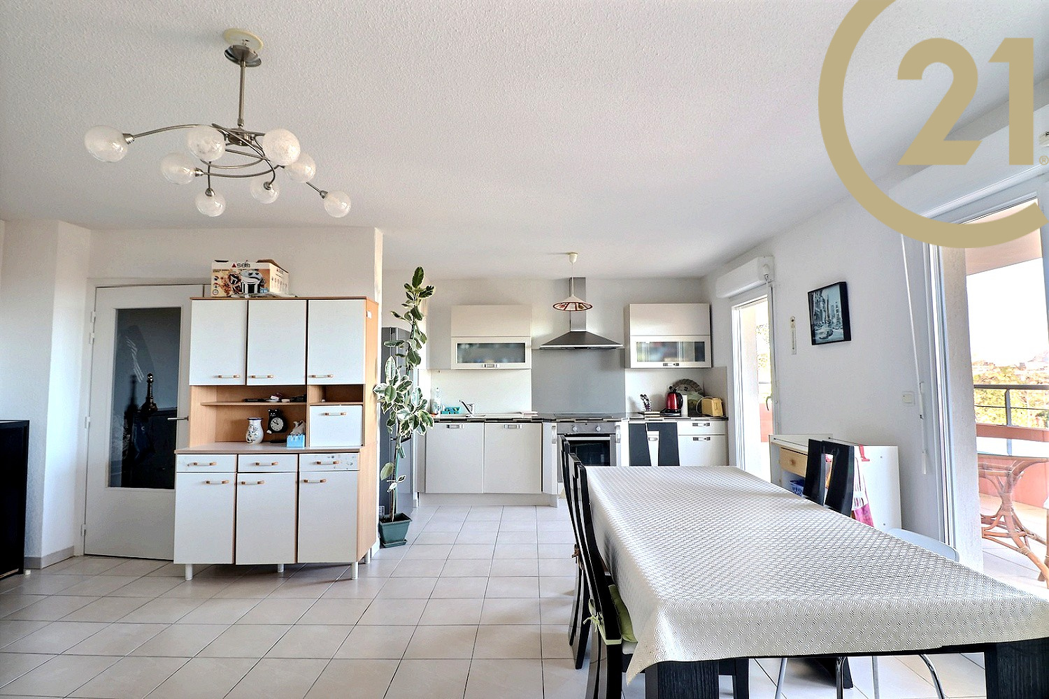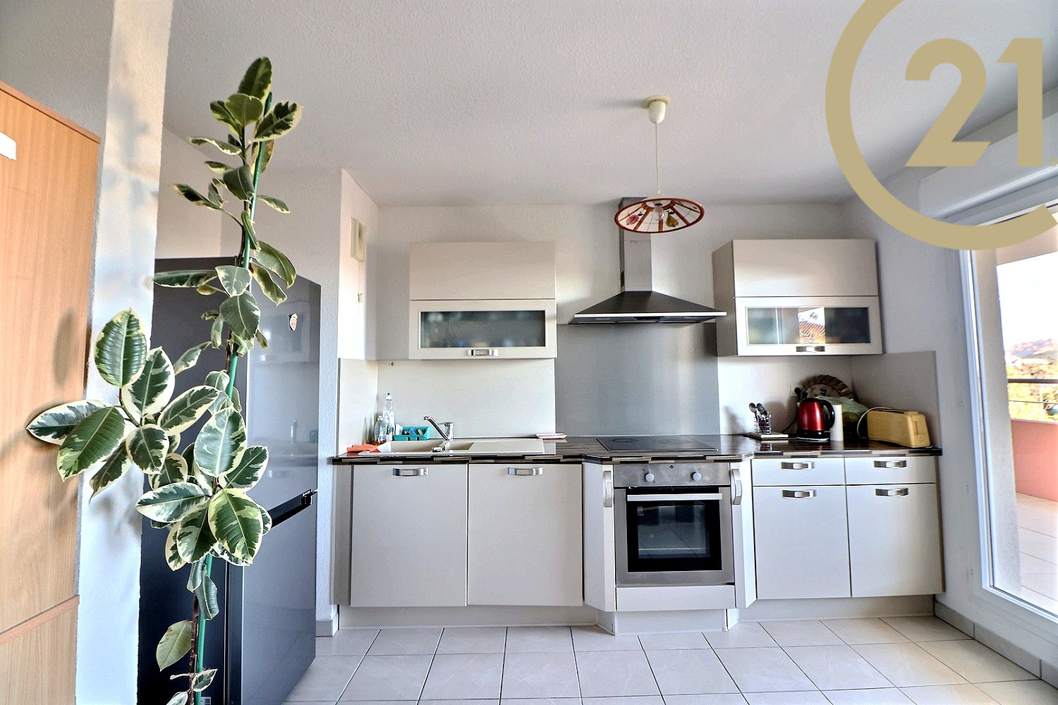 SAINT-RAPHAEL PROCHE CENTRE VILLE, dans une résidence de standing récente et sécurisée, spacieux appartement 3 pièces comprenant une entrée, un séjour avec cuisine ouverte équipée, un coin nuit composé de 2 chambres avec dressings intégrés et une salle de bains. Le séjour et l'une des chambres donnent sur une grande terrasse de 22 m² avec aperçu mer et vue esterel.