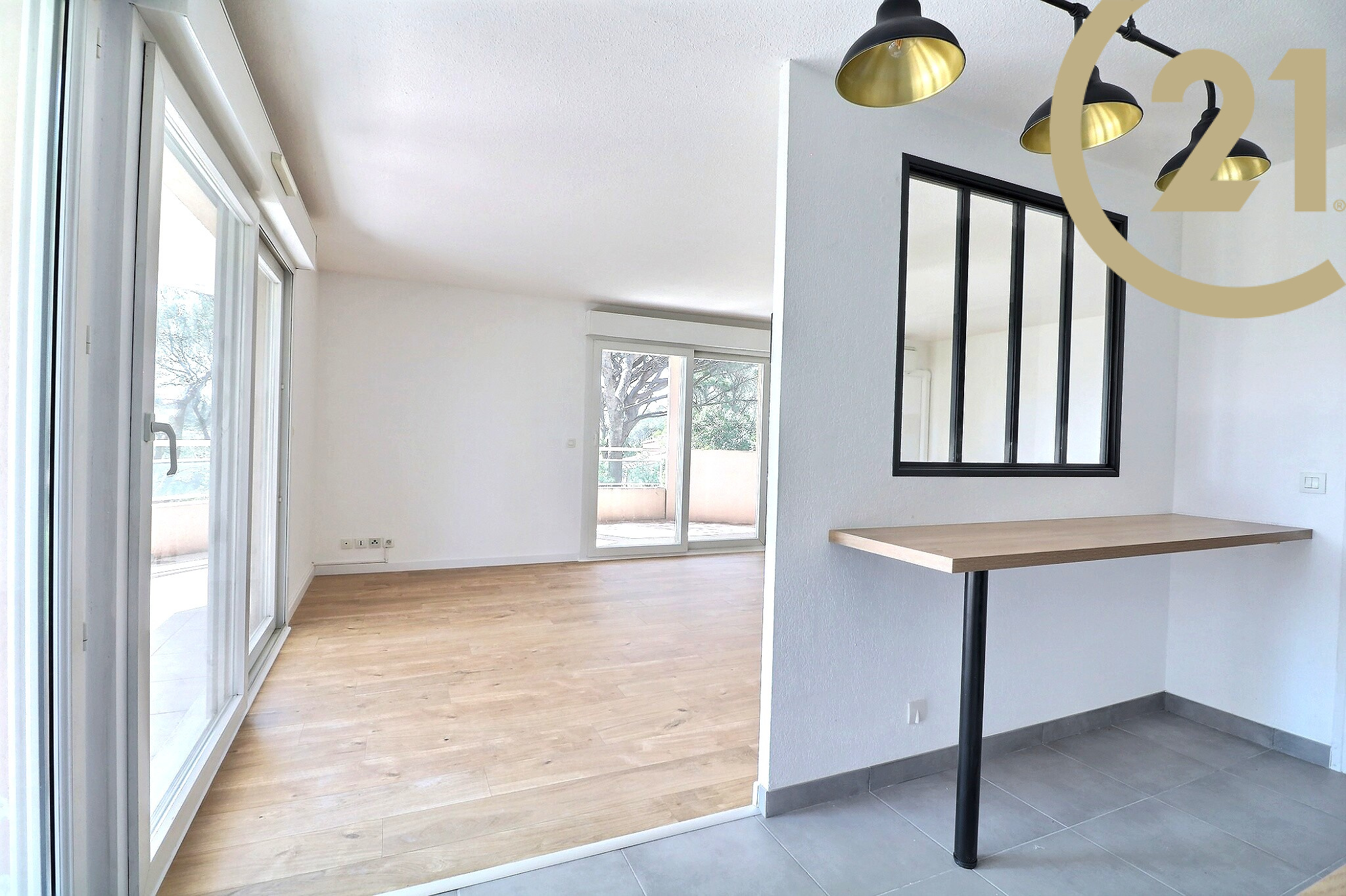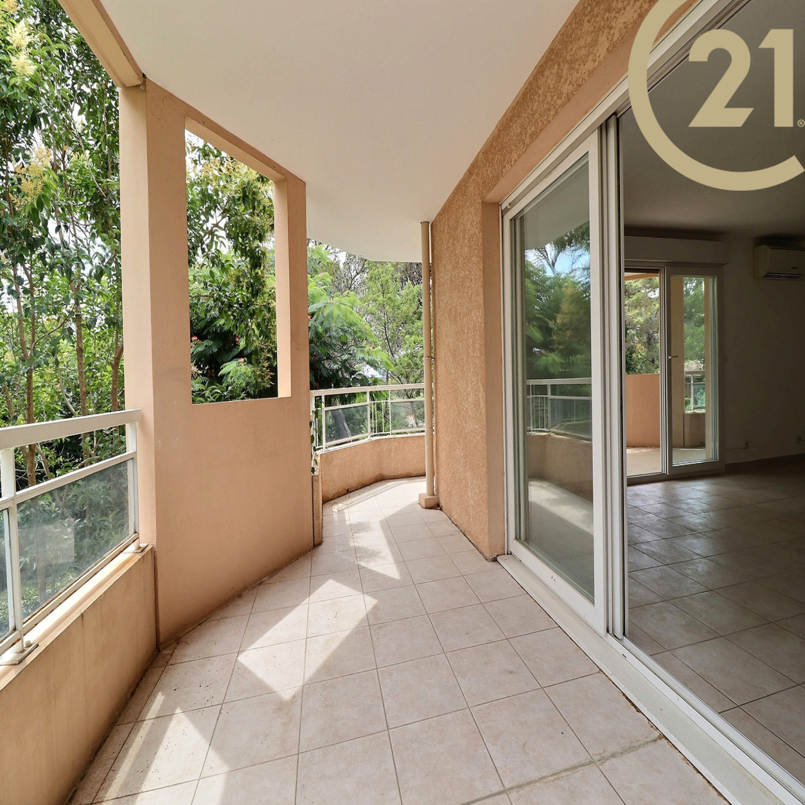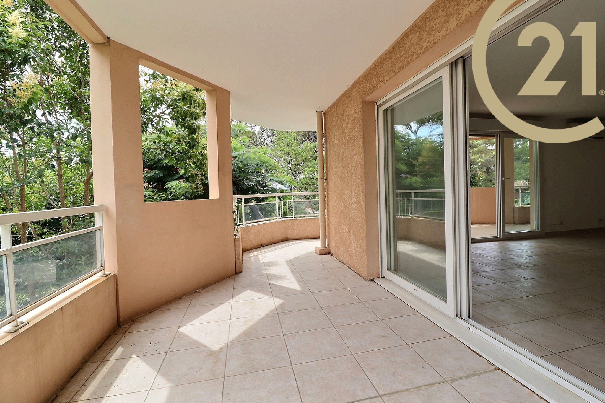 EXCLUSIVITE - SAINT-RAPHAEL VALESCURE - Spacieux appartement 4 pièces de 92 m² situé dans une petite copropriété verdoyante au coeur du quartier prisé de Valescure. Cet appartement traversant et rénové récemment bénéficie d'un agencement optimal. Il offre une entrée avec placard, une grande pièce de vie climatisée avec cuisine séparée par une verrière et un coin nuit séparé composé d'une suite parentale avec salle d'eau, de deux chambres avec placards, d'une salle de bains dotée d'une fenêtre et de WC séparés. La pièce de vie très lumineuse offre un accès sur une large terrasse de 25 m² jouissant d'une double exposition Sud et Ouest et d'une jolie vue dégagée sur la verdure. Double vitrage et volets roulants électriques. Un garage en sous-sol est vendu avec cet appartement. Centre commercial et centre-ville accessible rapidement. Copropriété de x lots. Charges annuelles : 2521 €.
