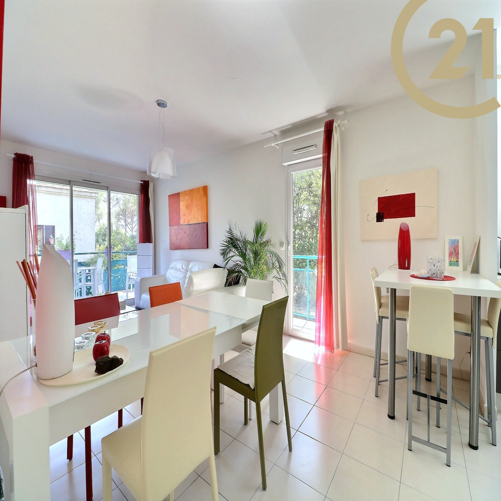 SAINT-RAPHAEL BOULOURIS - Superbe appartement 3 pièces de 73.10 m² situé dans une résidence de standing très prisée à quelques minutes à pied des plages. Cet appartement bien agencé offre une entrée avec placard, un lumineux séjour avec cuisine ouverte entièrement équipée, et un coin nuit séparé composé d'une suite parentale avec salle de bains et placard, d'une seconde chambre avec rangements, d'une salle d'eau et de WC séparés. Toutes les pièces bénéficient d'un accès direct sur une belle terrasse en angle de plus de 34 m², jouissant d'une exposition Sud/Est et Ouest. Vous apprécierez les prestations de qualité : climatisation réversible gainable, volets roulants électriques, visiophone, porte blindée ainsi que la qualité d'environnement et le calme de cette résidence dotée d'un superbe parc arboré et de belles piscines. L'appartement est vendu avec un garage en sous-sol. Possibilité d'acquérir un parking aérien en supplément. Situation géographique très recherchée : mer, tous commerces et gare à proximité immédiate.