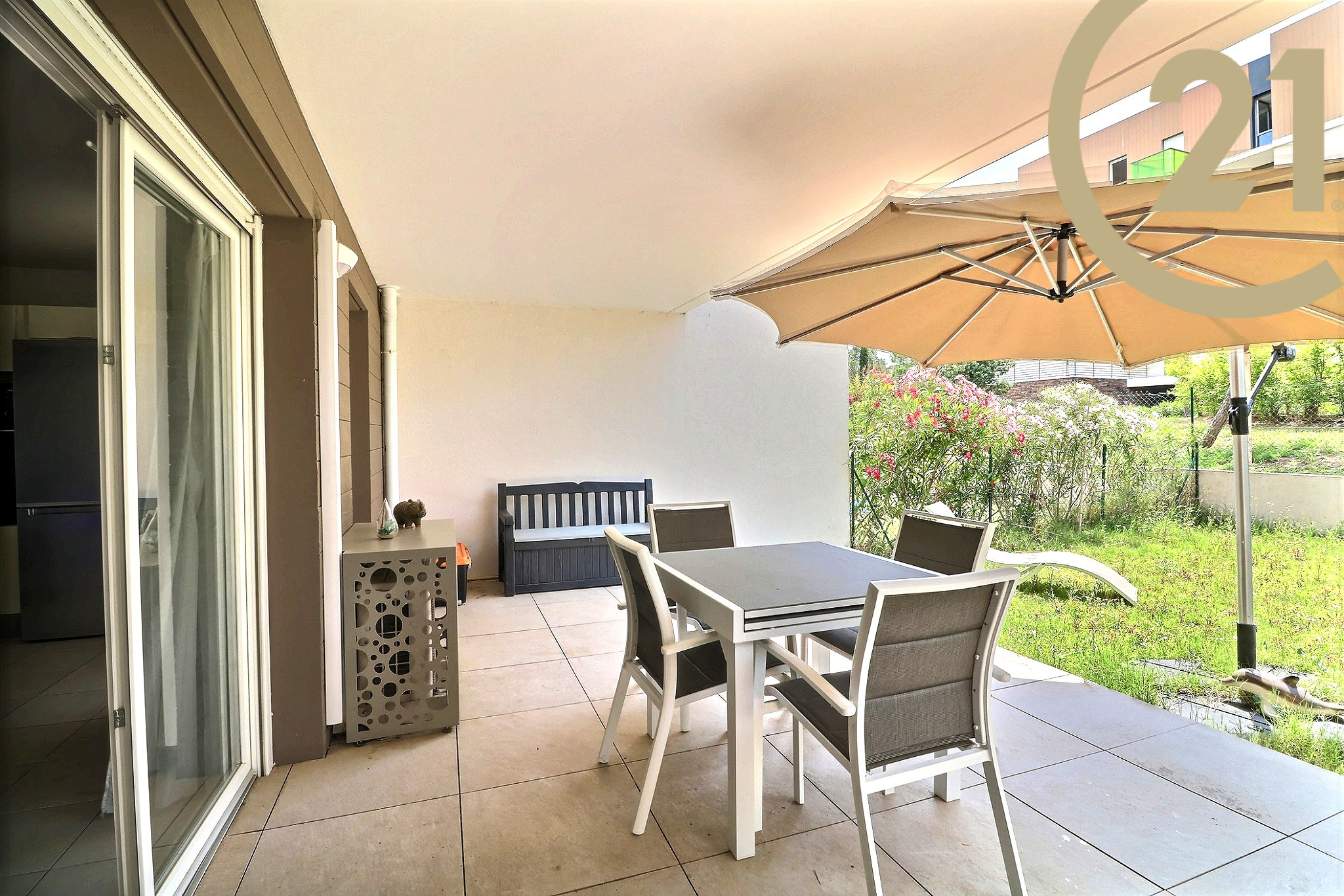 EXCLUSIVITE SAINT-RAPHAEL - Joli appartement 3 pièces de 71 m² situé en rez-de-jardin dans une résidence récente avec piscine à quelques minutes des commodités. Cet appartement traversant offre une entrée avec placard, une spacieuse pièce de vie de plus de 32 m² avec cuisine récente entièrement équipée et fonctionnelle, deux spacieuses chambres avec dressing, une salle de bains et des WC séparés avec lave-mains. La pièce de vie offre un accès direct sur une large terrasse couverte de plus de 21 m² et un jardin de 45 m² exposés Sud. Volets roulants centralisés et climatisation réversible. Possibilité d'acquérir un garage en supplément. Centre-ville, plages, commerces et écoles accessibles en quelques minutes seulement. Copropriété de 104 lots. Charges annuelles : 1721 €.
