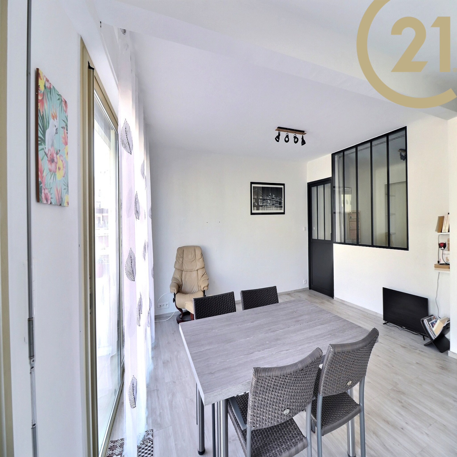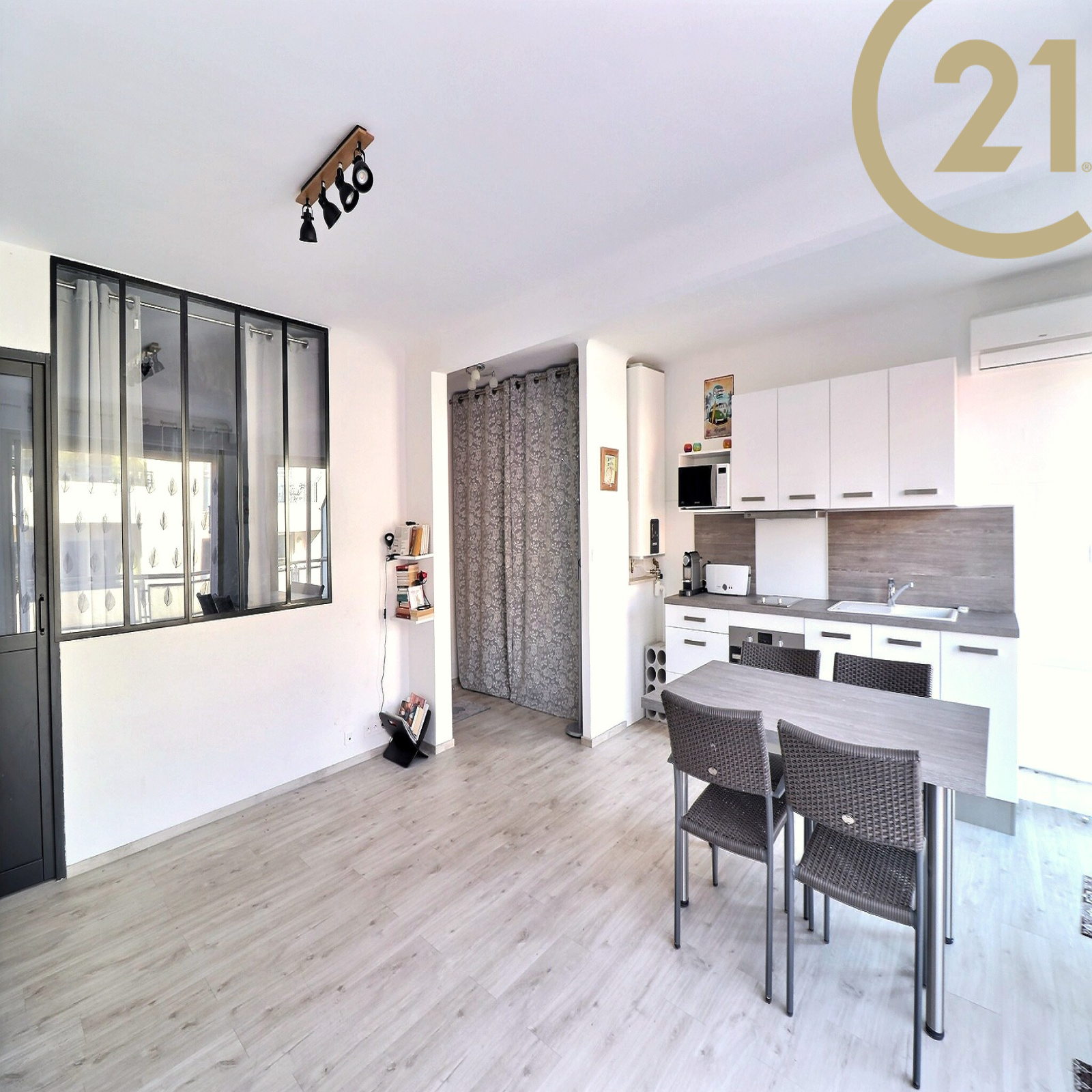 " VENDU " - EXCLUSIVITE SAINT RAPHAEL - CENTRE VILLE - Appartement 2 pièces entièrement rénové avec goût situé à deux pas du centre historique, de la gare de Saint-Raphaël et des plages. Cet appartement situé en étage élevé dans une résidence sécurisée avec ascenseur offre une entrée avec grand placard, une pièce de vie climatisée avec cuisine récente entièrement équipée donnant sur une terrasse, une chambre séparée du séjour par une jolie verrière, une salle d'eau dotée d'une grande douche et des WC séparés. Une place de parking couverte et une grande cave sont vendues avec cet appartement. Vous apprécierez le caractère clés en mains de ce bien ainsi que son emplacement central. Visite virtuelle disponible sur demande. Copropriété de 36 lots dont 14 à usage d'habitation. Charges annuelles : 1028 €