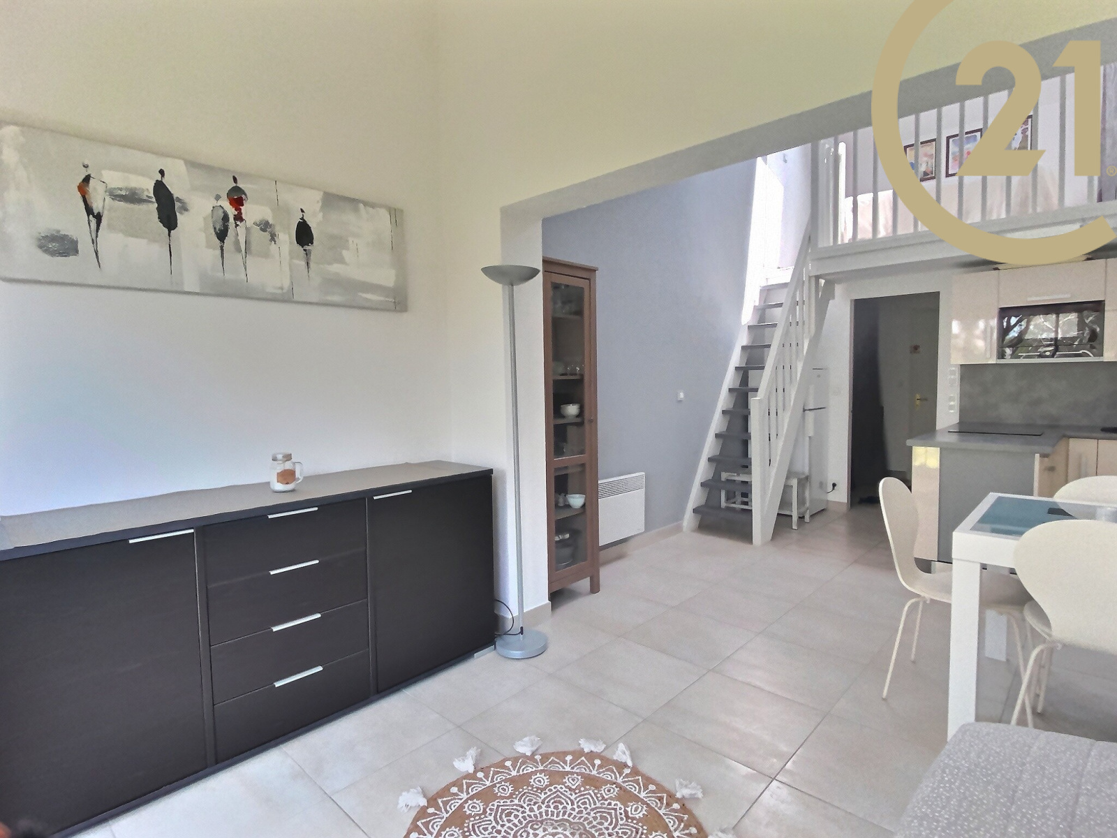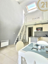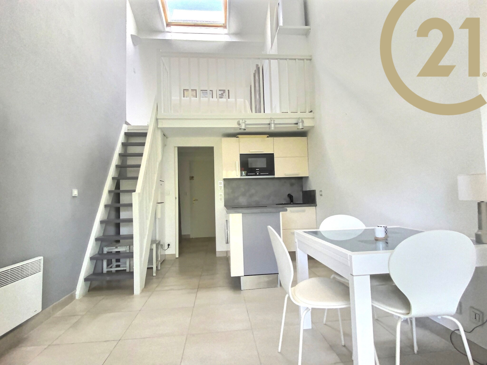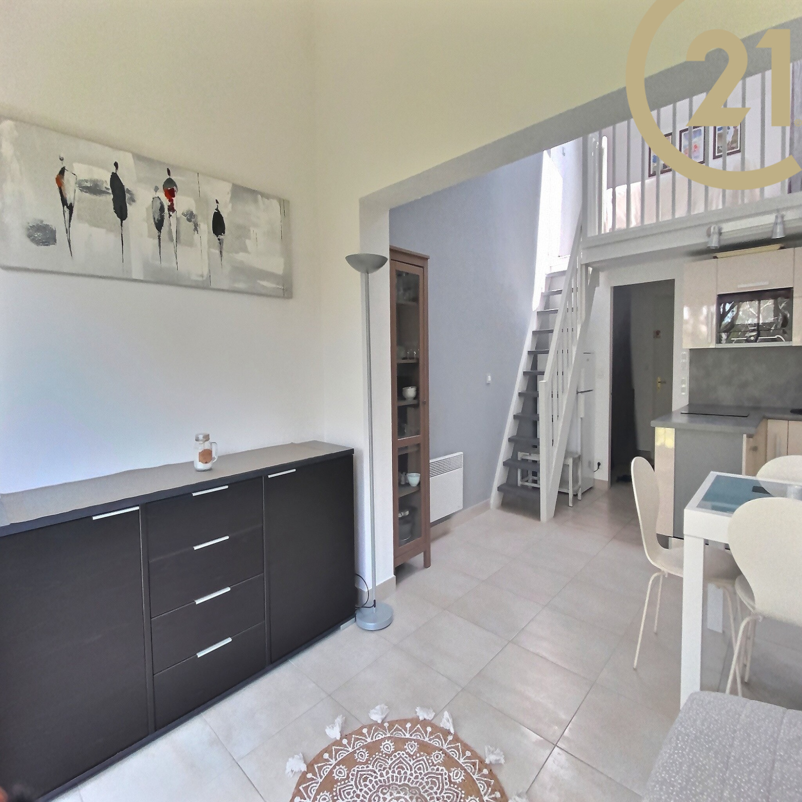 EXCLUSIVITE SAINT-RAPHAEL VALESCURE - VISITE VIRTUELLE DISPONIBLE SUR DEMANDE - Bel appartement 2 pièces entièrement rénové avec goût situé dans une résidence sécurisée avec piscine et tennis au coeur du quartier prisé de Valescure. Cet appartement en dernier étage offre un hall d'entrée avec grande penderie, un séjour bénéficiant d'une belle hauteur sous plafond avec cuisine ouverte récente et entièrement équipée, une chambre en mezzanine avec un espace de rangements et une salle d'eau avec douche et WC. L'appartement bénéficie d'une superbe vue sur la verdure et d'une absence de vis-à-vis. Il offre une surface au sol de 33.66 m². Une place de parking privative complète ce bien. Vous apprécierez la qualité d'environnement de cet appartement et son aspect clés en mains. Golfs, centre commercial, et centre-ville accessibles rapidement. Copropriété de x lots. Charges annuelles : 1151 €