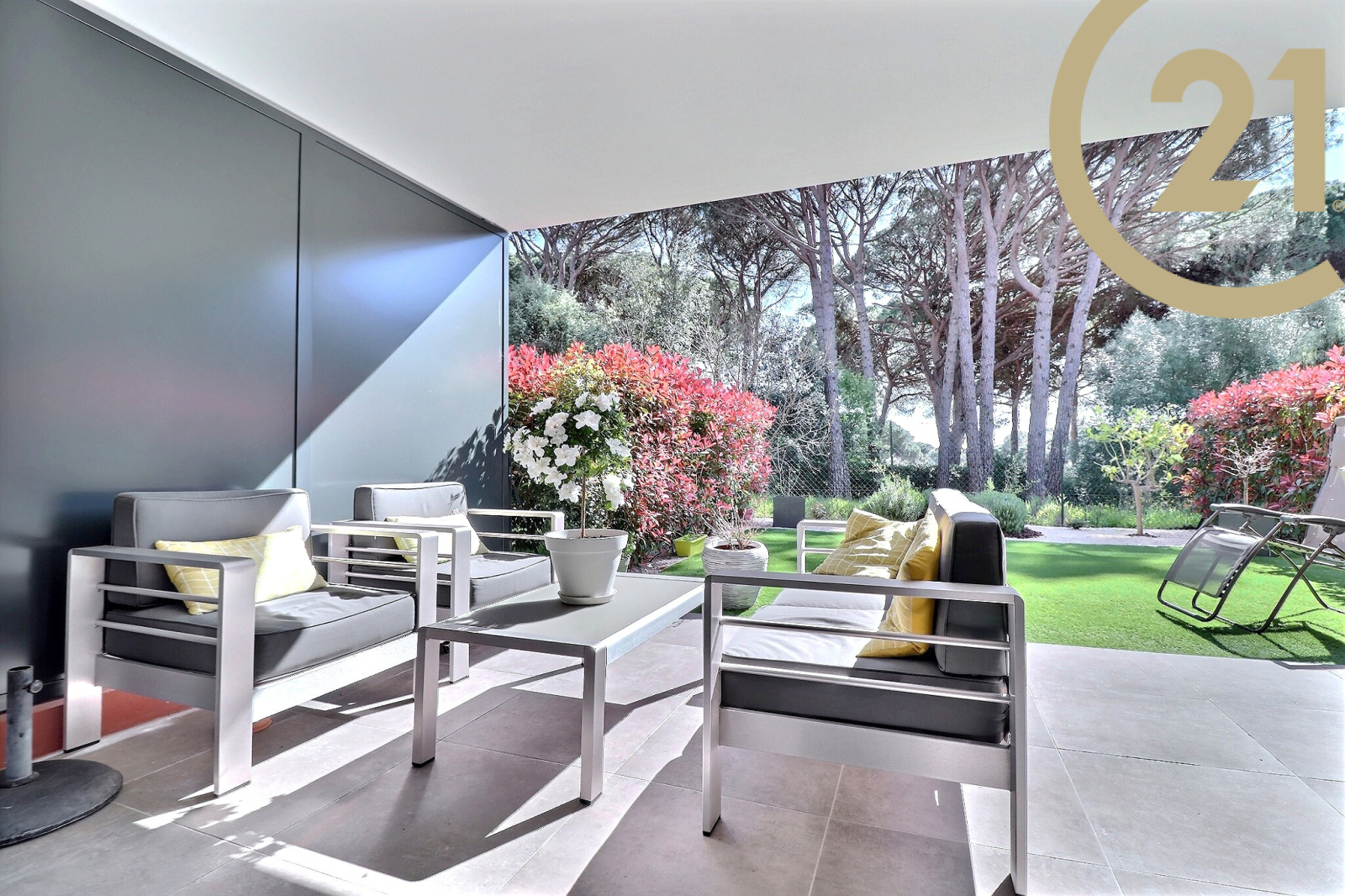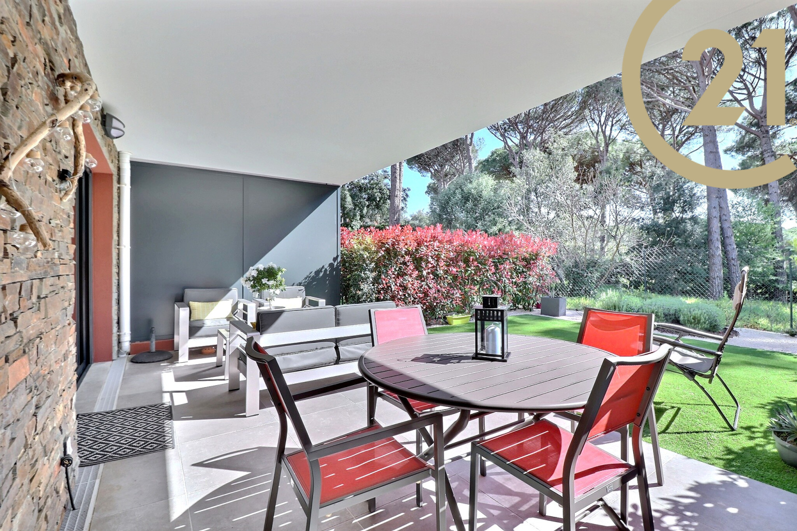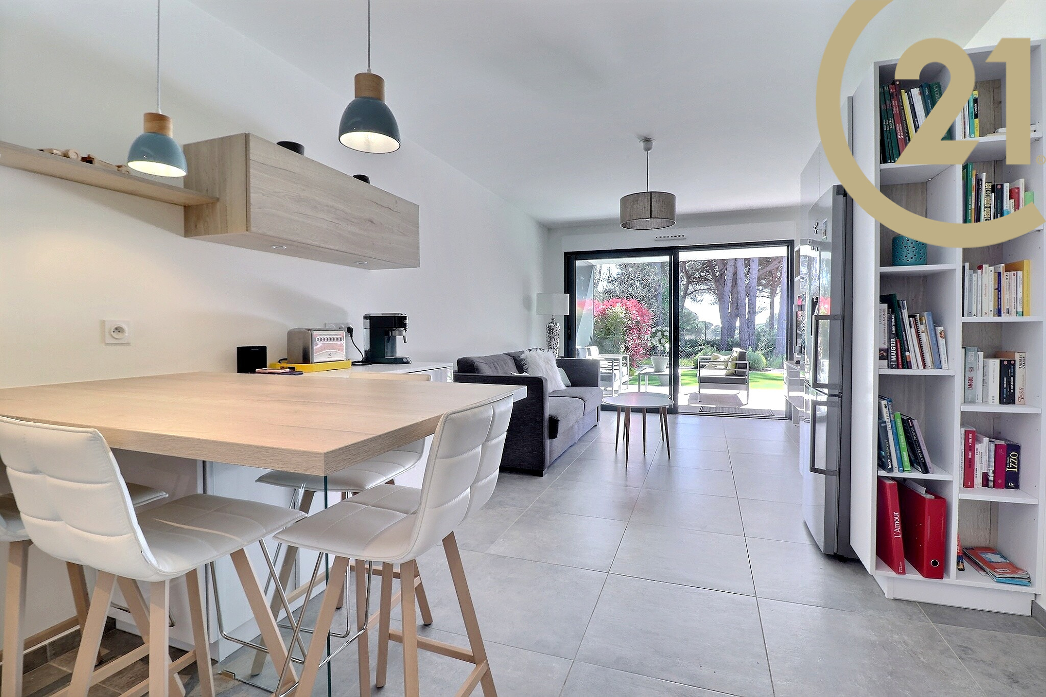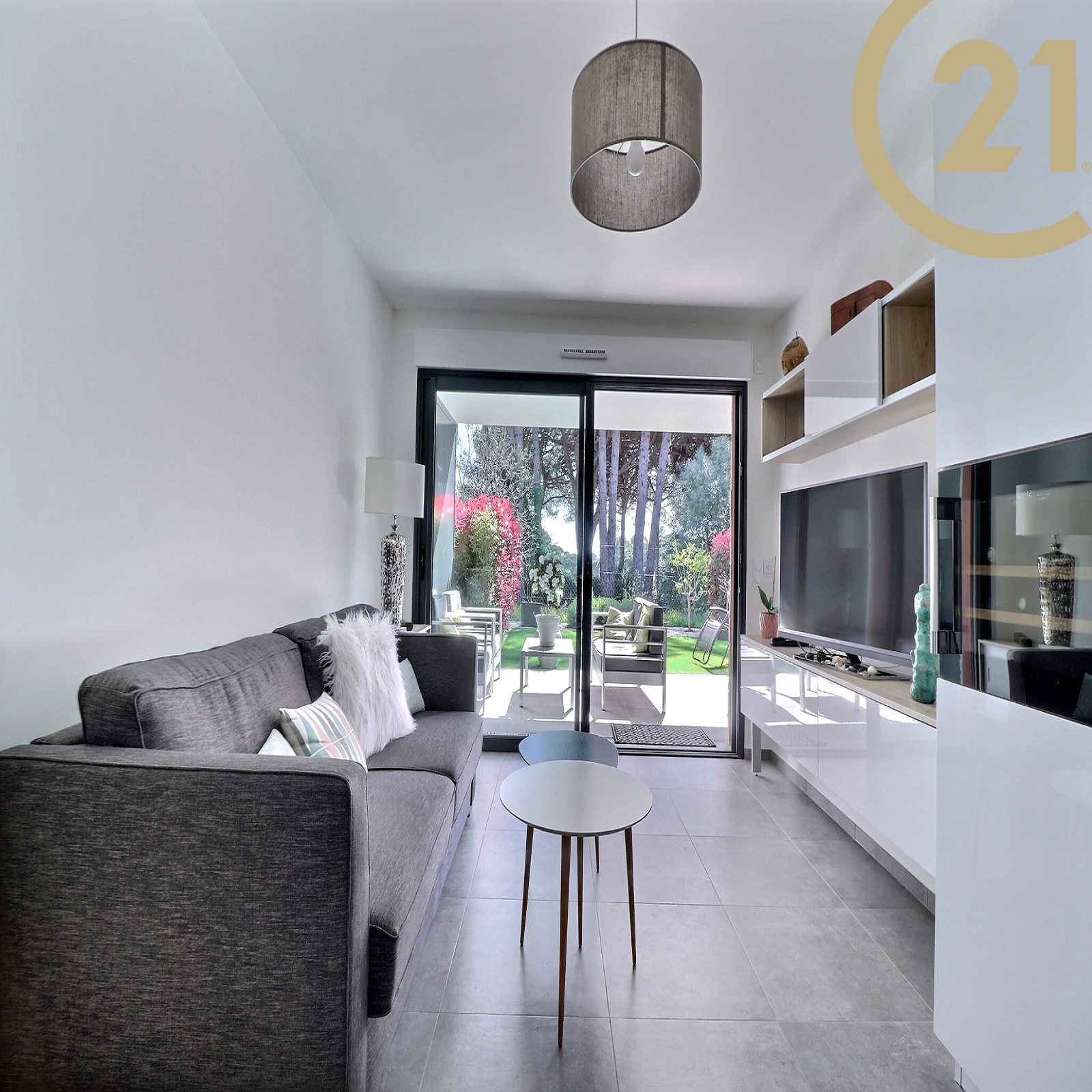 SAINT-RAPHAEL - LES GOLFS - Découvrez ce superbe appartement 2 pièces de 48 m² en rez-de-jardin situé dans une petite résidence de grand standing récente et verdoyante dans le quartier des golfs. Ce bien offre une pièce de vie lumineuse avec cuisine moderne entièrement équipée, une grande chambre avec placard, une salle d'eau avec douche à l'italienne et des toilettes séparées. Le séjour et la chambre offrent un accès direct à un jardin arboré exposé plein Sud au calme absolu et sans vis à vis. Un garage double en sous-sol de 27 m² est vendu avec l'appartement.