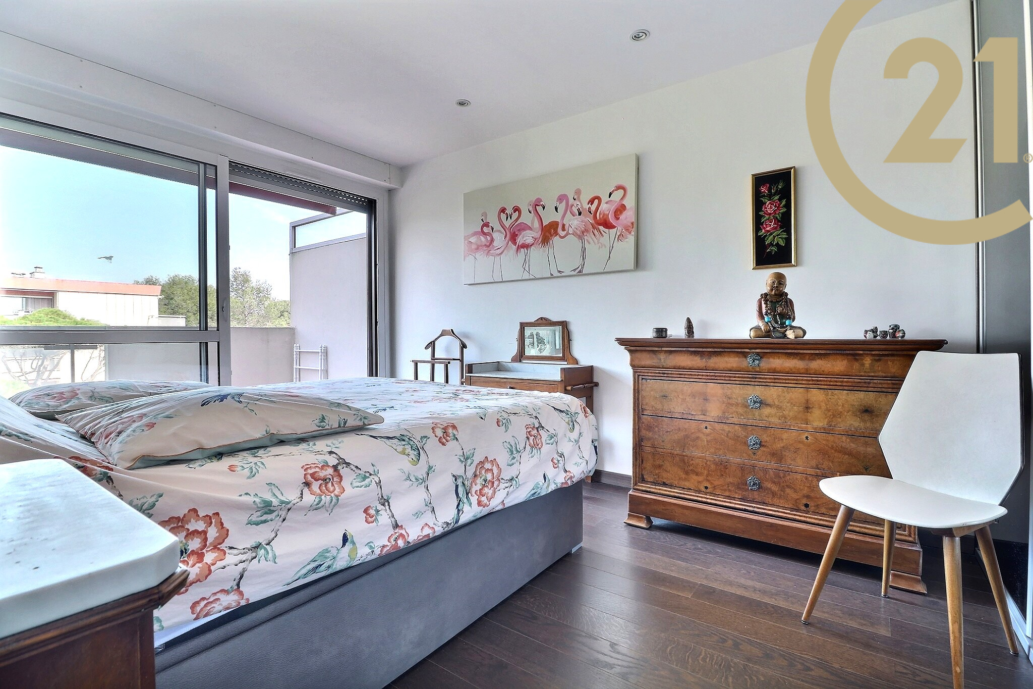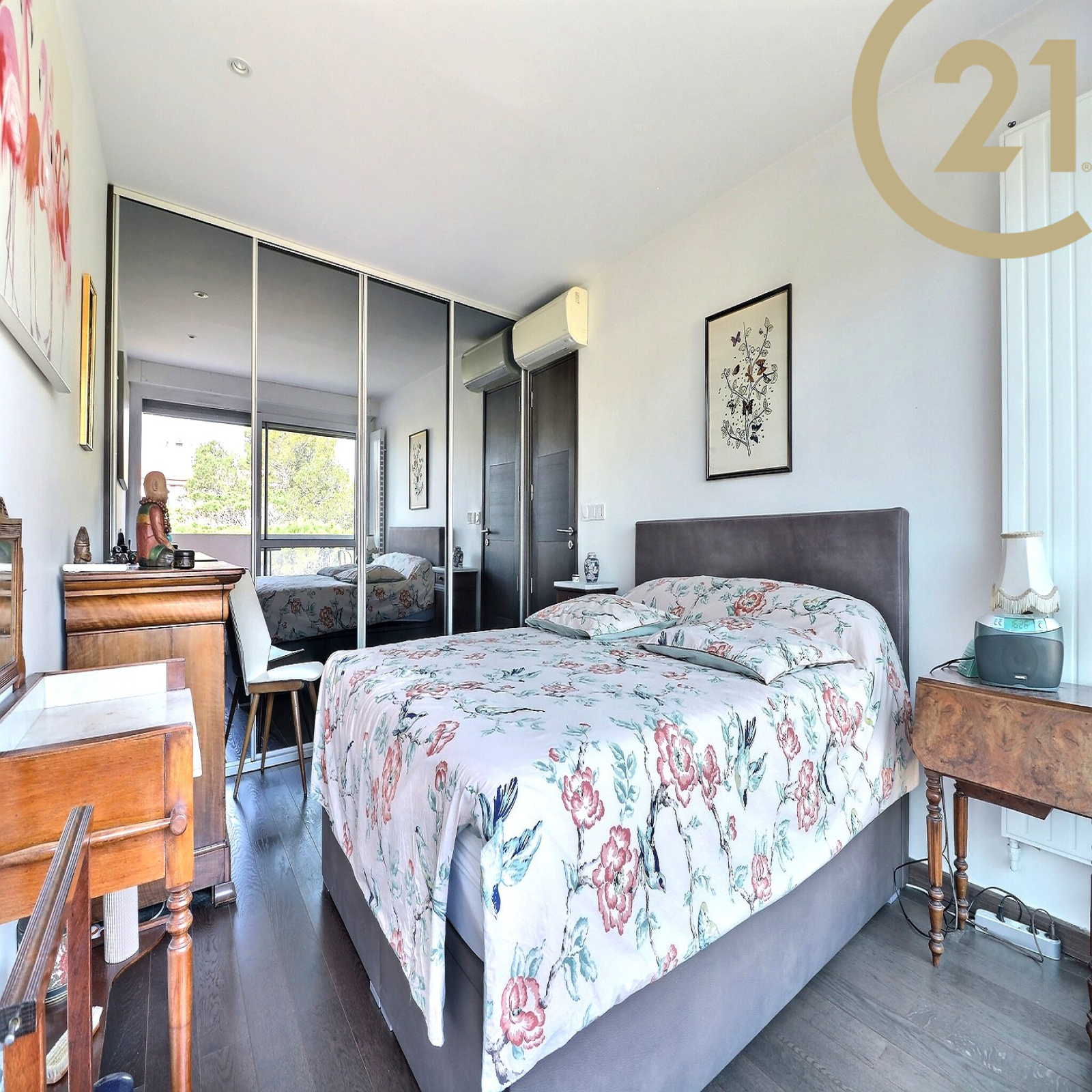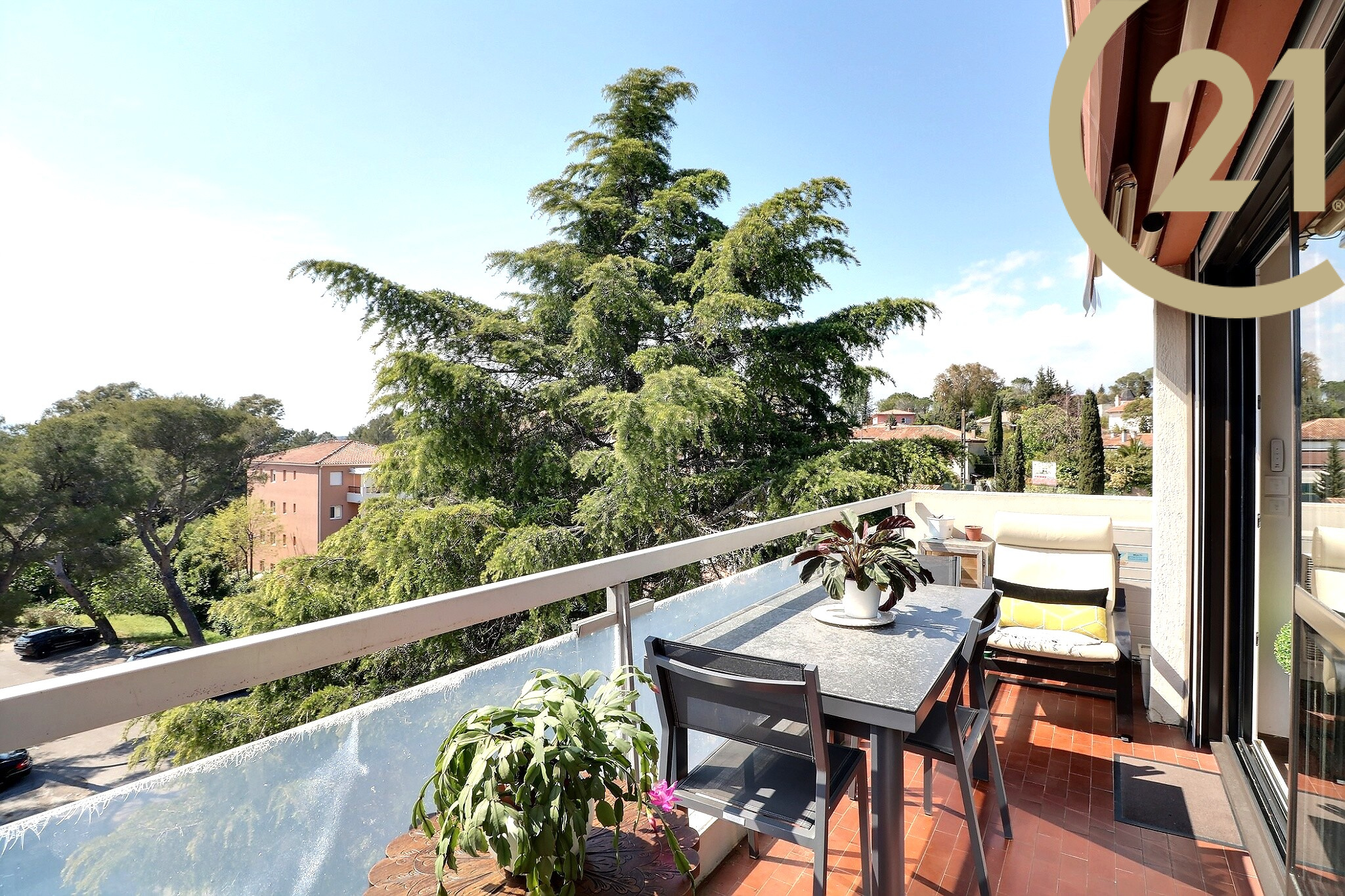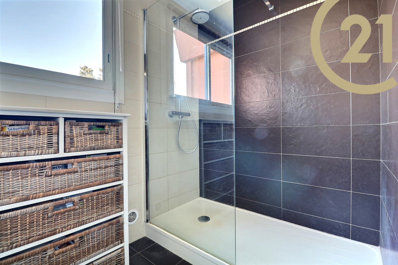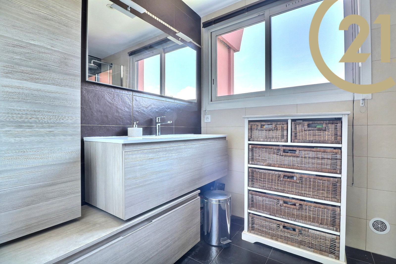 EXCLUSIVITE SAINT-RAPHAEL VALESCURE - Superbe appartement 3 pièces situé au dernier étage d'une résidence verdoyante et sécurisée avec ascenseur à quelques minutes des commerces et du centre-ville. Cet appartement traversant bénéficie d'une double exposition Ouest-Est et offre des prestations d'excellente qualité. Il offre une spacieuse pièce de vie de plus de 37 m² avec placard et cuisine américaine haut de gamme entièrement équipée (électroménager compris) donnant sur une jolie terrasse équipée d'un store motorisé à LED, deux belles chambres dont une de 13 m² avec dressing aménagé donnant sur une seconde terrasse, une salle d'eau avec fenêtre et grande douche et des WC suspendus séparés. Jolie vue dégagée sur la verdure et prestations de qualité : climatisation réversible dans toutes pièces, double vitrage aluminium, volets roulants électriques. Une cave est vendue avec cet appartement. Nombreuses places de parking libres dans la résidence. Centre commercial et centre-ville accessibles en quelques minutes. Copropriété de x lots. Charges annuelles : 2638 €.