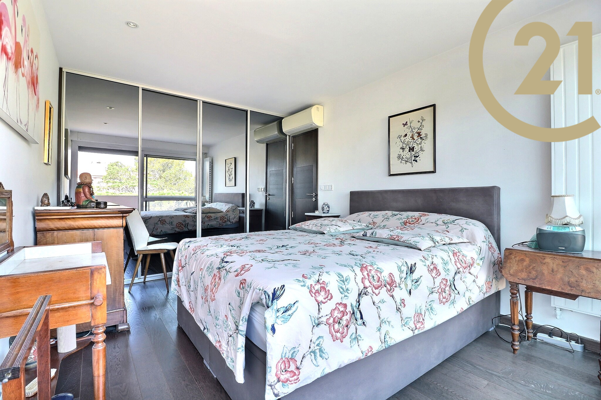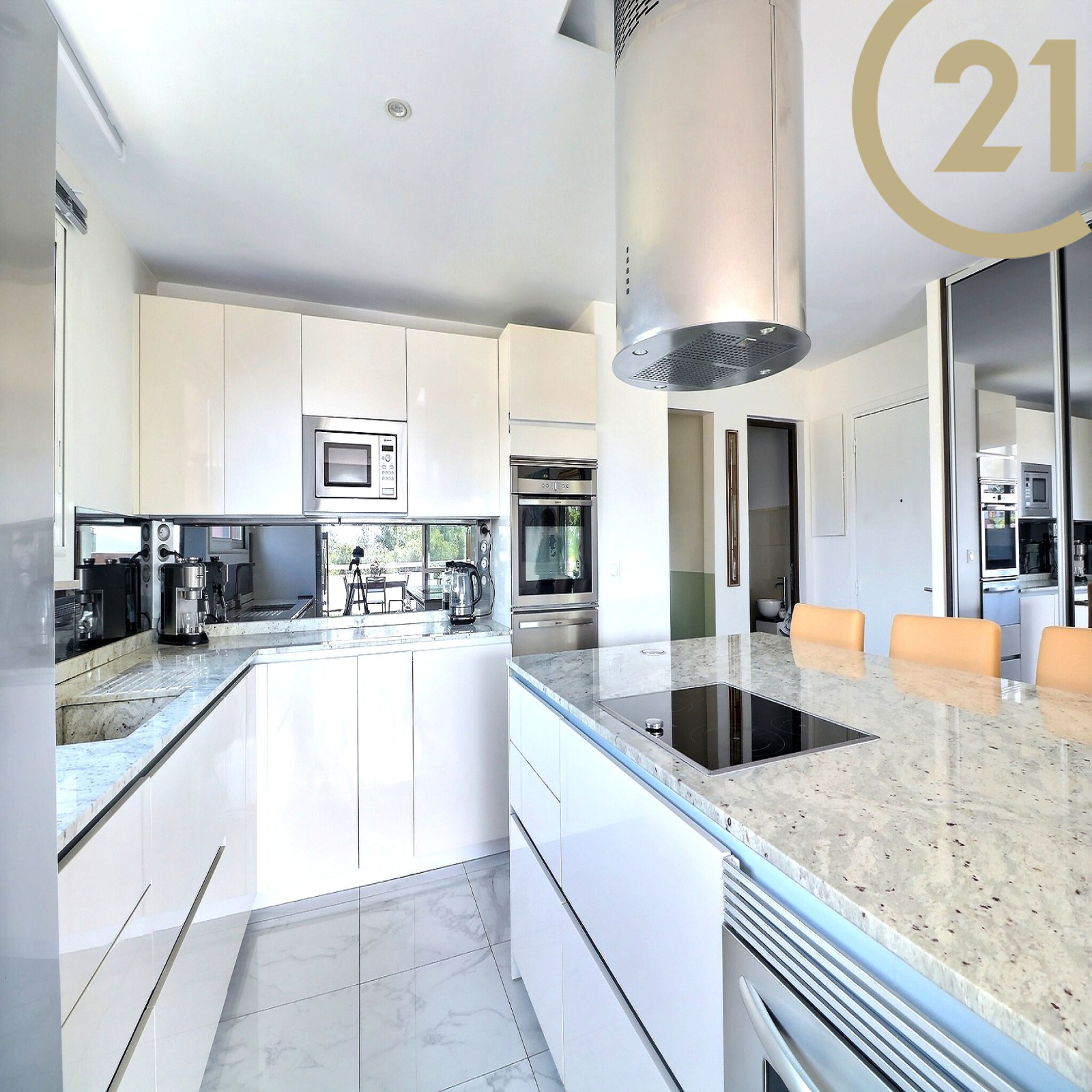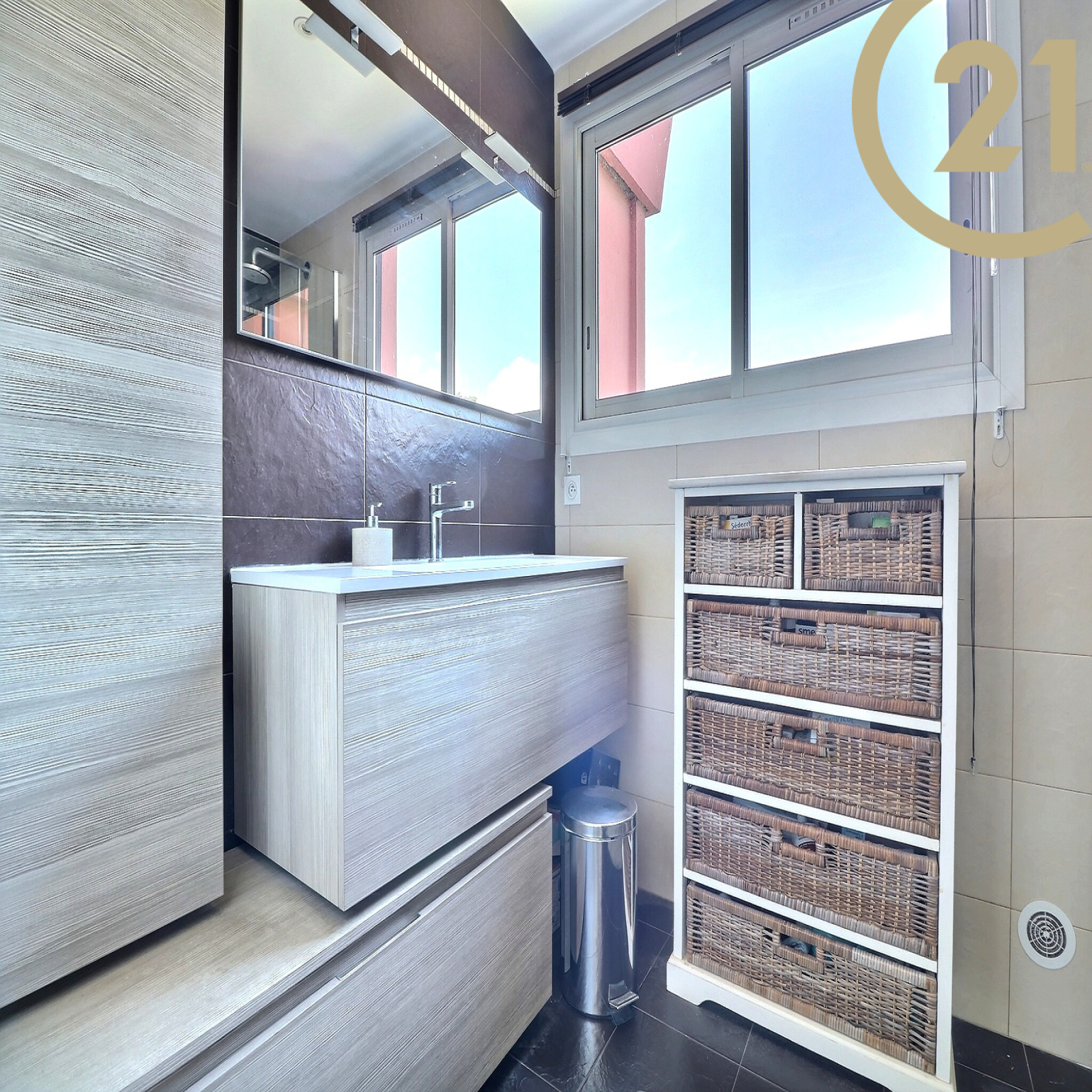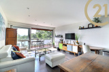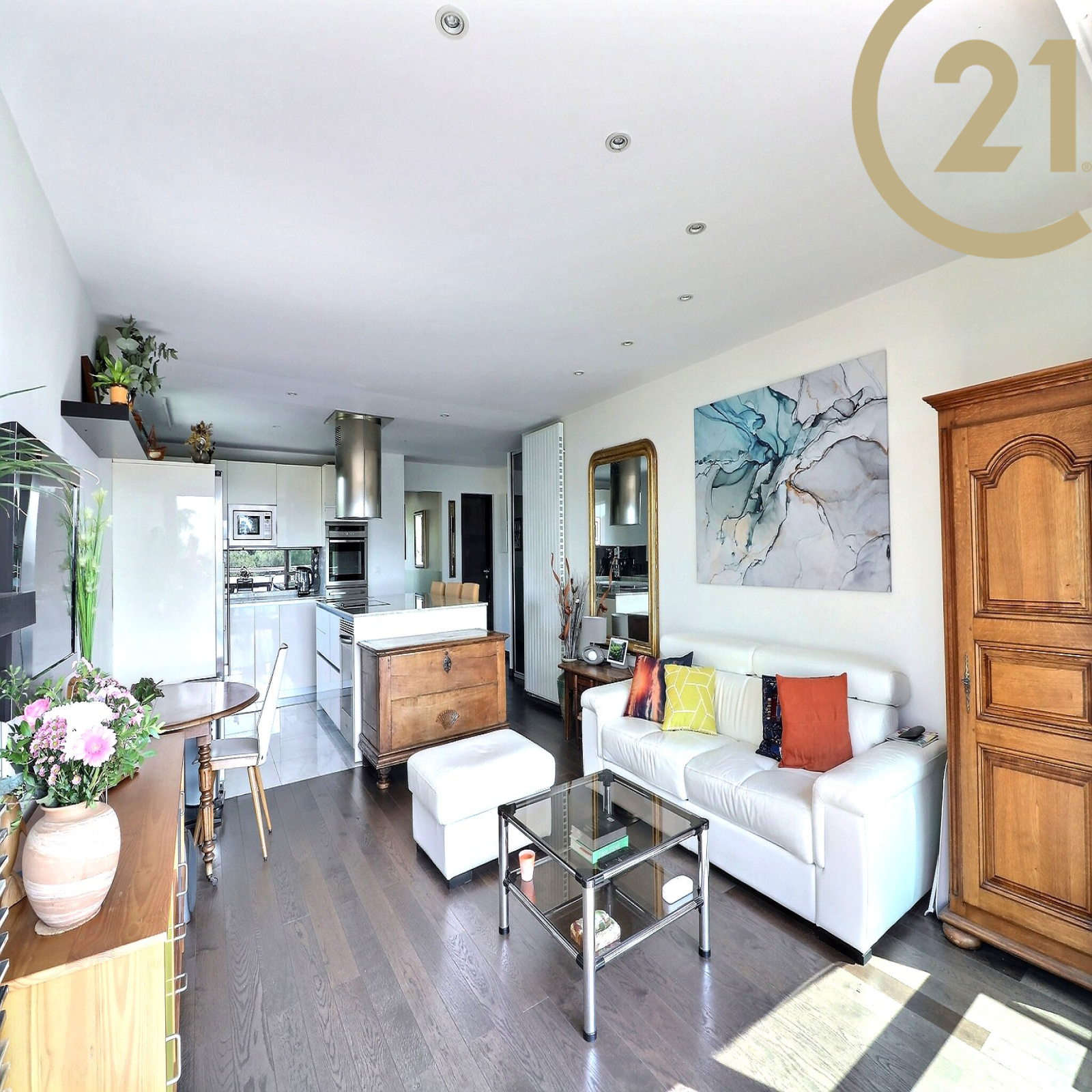 EXCLUSIVITE SAINT-RAPHAEL VALESCURE - Superbe appartement 3 pièces situé au dernier étage d'une résidence verdoyante et sécurisée avec ascenseur à quelques minutes des commerces et du centre-ville. Cet appartement traversant bénéficie d'une double exposition Ouest-Est et offre des prestations d'excellente qualité. Il offre une spacieuse pièce de vie de plus de 37 m² avec placard et cuisine américaine haut de gamme entièrement équipée (électroménager compris) donnant sur une jolie terrasse équipée d'un store motorisé à LED, deux belles chambres dont une de 13 m² avec dressing aménagé donnant sur une seconde terrasse, une salle d'eau avec fenêtre et grande douche et des WC suspendus séparés. Jolie vue dégagée sur la verdure et prestations de qualité : climatisation réversible dans toutes pièces, double vitrage aluminium, volets roulants électriques. Une cave est vendue avec cet appartement. Nombreuses places de parking libres dans la résidence. Centre commercial et centre-ville accessibles en quelques minutes. Copropriété de x lots. Charges annuelles : 2638 €.