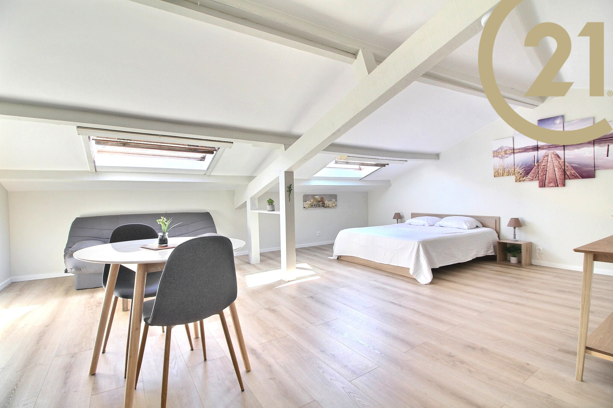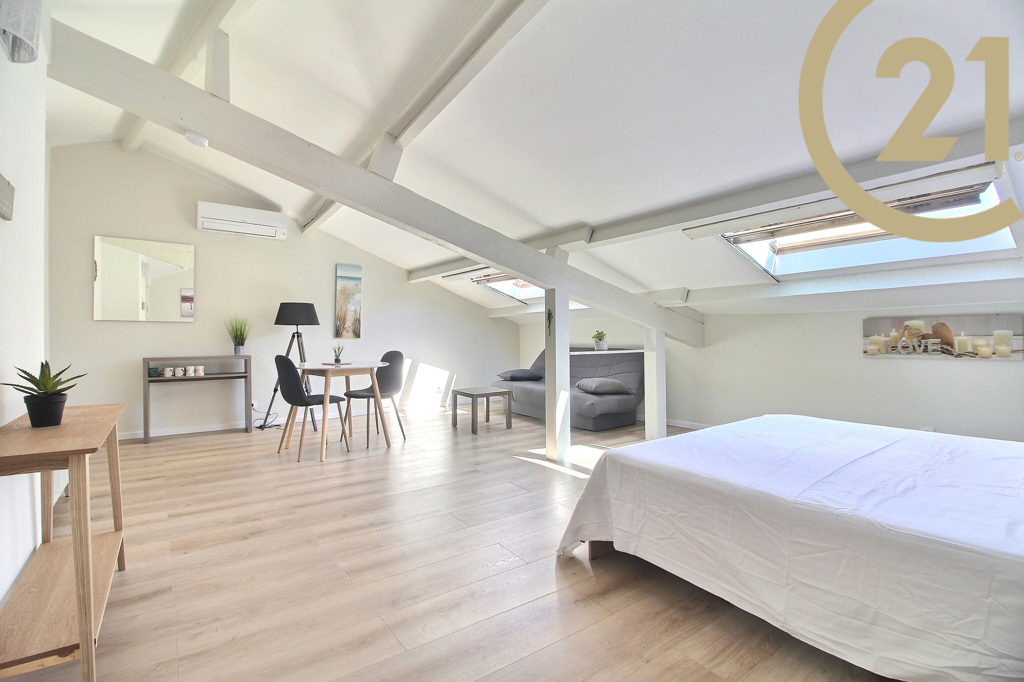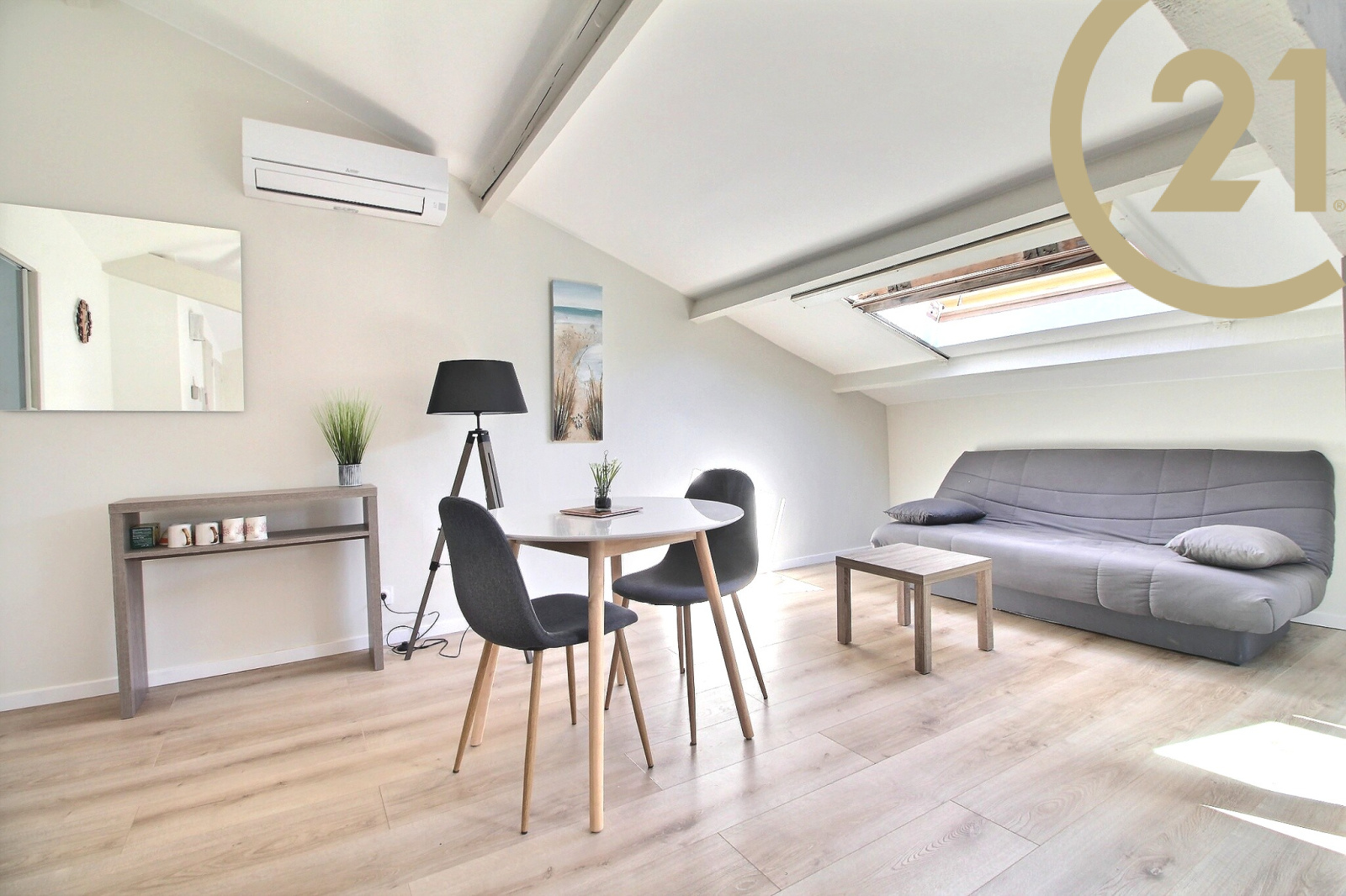 EXCLUSIVITE SAINT-RAPHAEL PROCHE PORT- Bel appartement atypique entièrement rénové avec goût situé dans une petite copropriété à quelques pas des plages, du port, du centre-ville, des commerces et de la gare. Cet appartement de 49.84 m² au sol et 30.43 m² Carrez offre une belle pièce de vie climatisée composée d'un coin nuit avec placard et d'un coin séjour et salle à manger, une jolie cuisine récente séparée entièrement équipée et une salle d'eau avec douche et WC. Un espace sous combles idéal pour le rangement complète ce bien. Vous apprécierez l'aspect clés en mains de cet appartement, sa situation géographique prisée et les faibles charges de copropriété. Copropriété de x lots. Charges annuelles : 270 € VISITE VIRTUELLE DISPONIBLE SUR DEMANDE