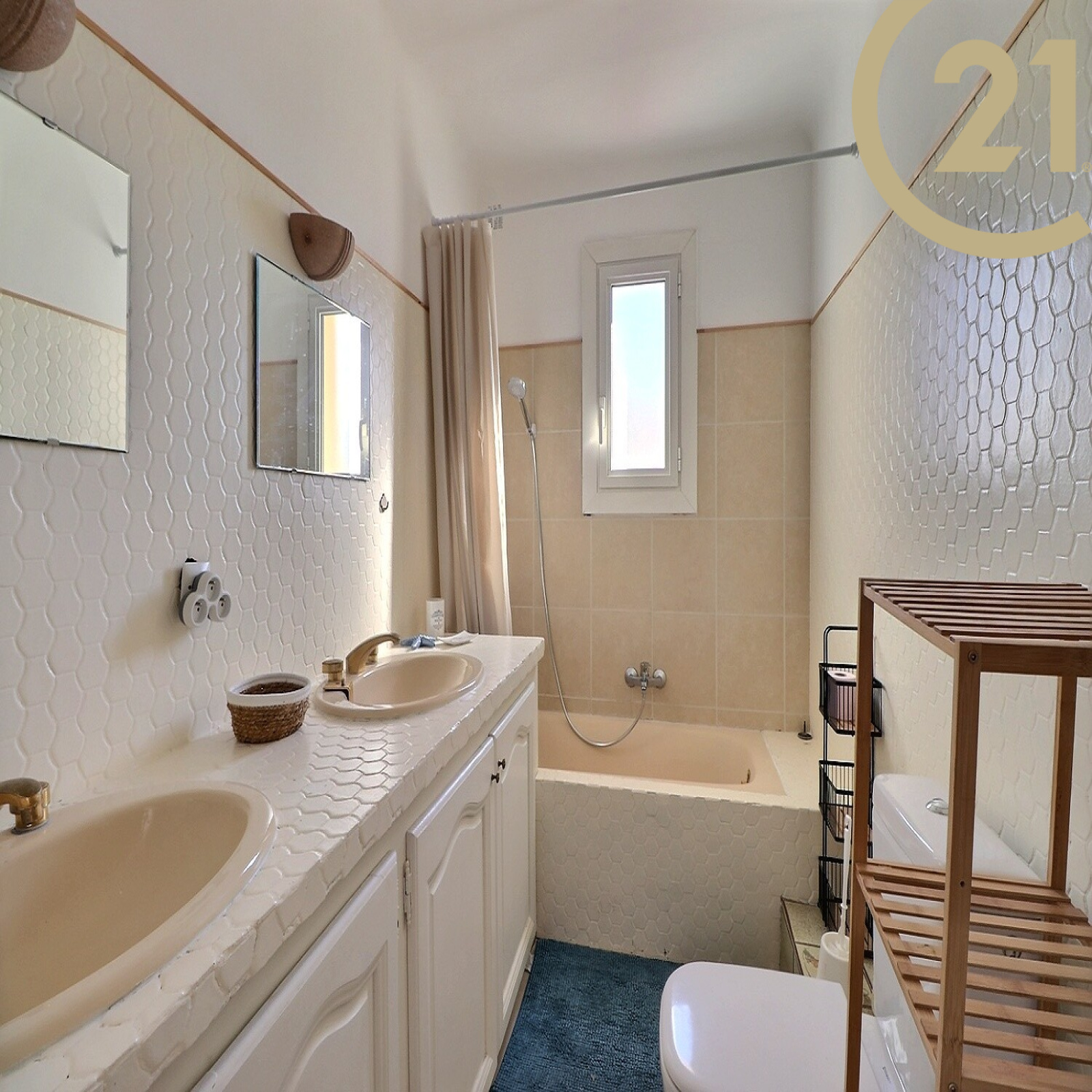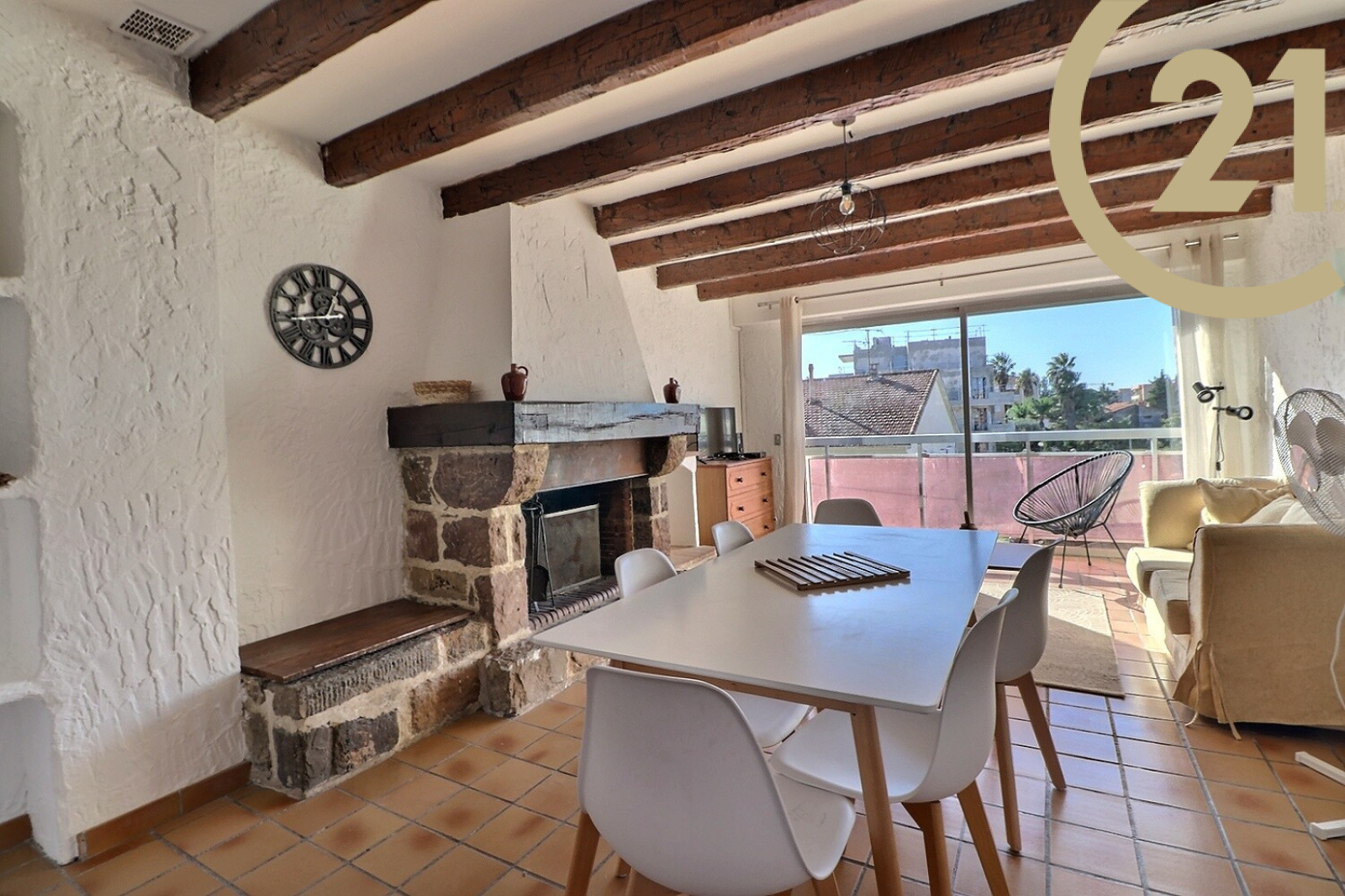 VENTE - SAINT-RAPHAËL - à proximité du centre ville, appartement 3 pièces d'une surface de 83m2 avec une exposition sud et une vue dégagée. Le séjour bénéficie de lumière grâce aux deux grandes baies vitrées et du charme des poutres apparentes et de la cheminée. Les deux chambres sont spacieuses :11m2 et 22m2. Idéalement situé, au calme, proximité du ocllège Alphonse Karr et du centre ville de Saint-Raphaël à pied. Un parking privatif complète ce bien. Très peu de charges. 2ème et dernier étage sans ascenseur. Ce bien n'a pas de terrasse, il est possible de prevoir des travaux pour créer une loggia dans le sejour exposé sud qui est spacieux.