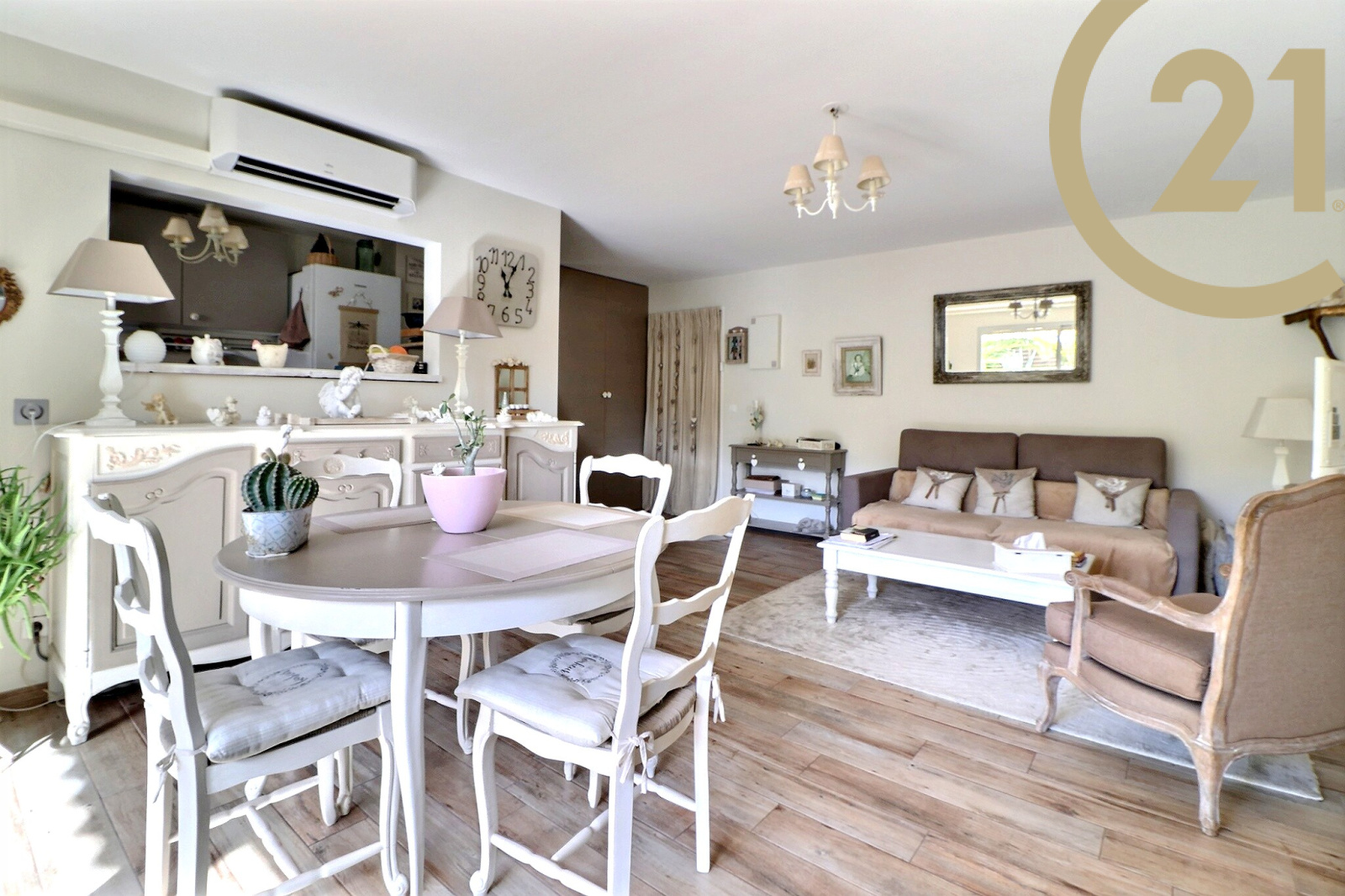 Il se compose : d'un salon, d'une cuisine, d'un hall d'entrée avec placard, d'un WC indépendant, d'une chambre, d'une salle de bains et d'un beau jardin de plus de 50 m² arboré.