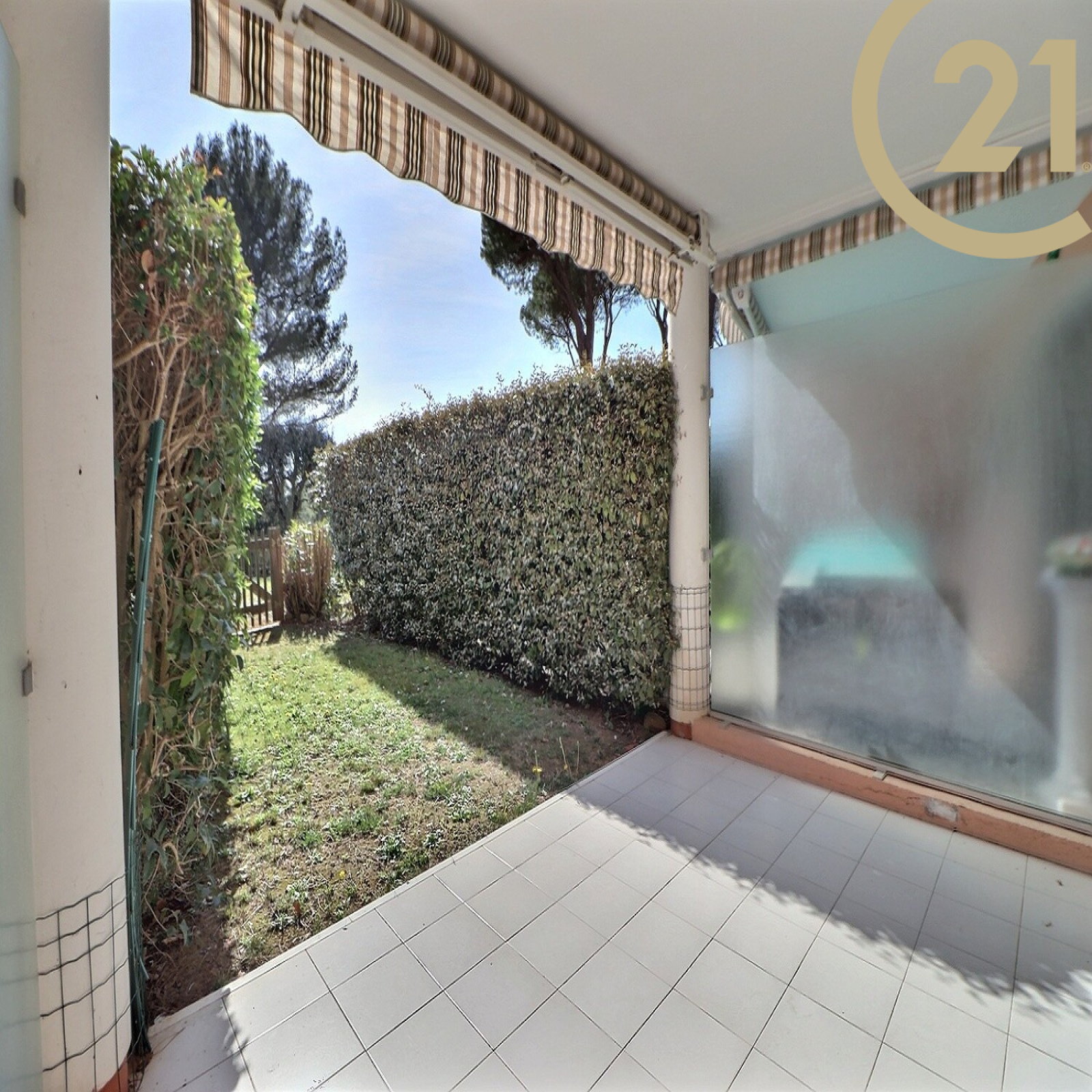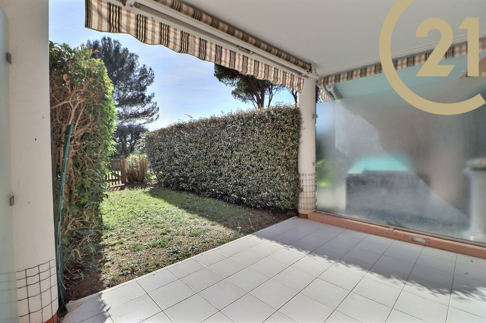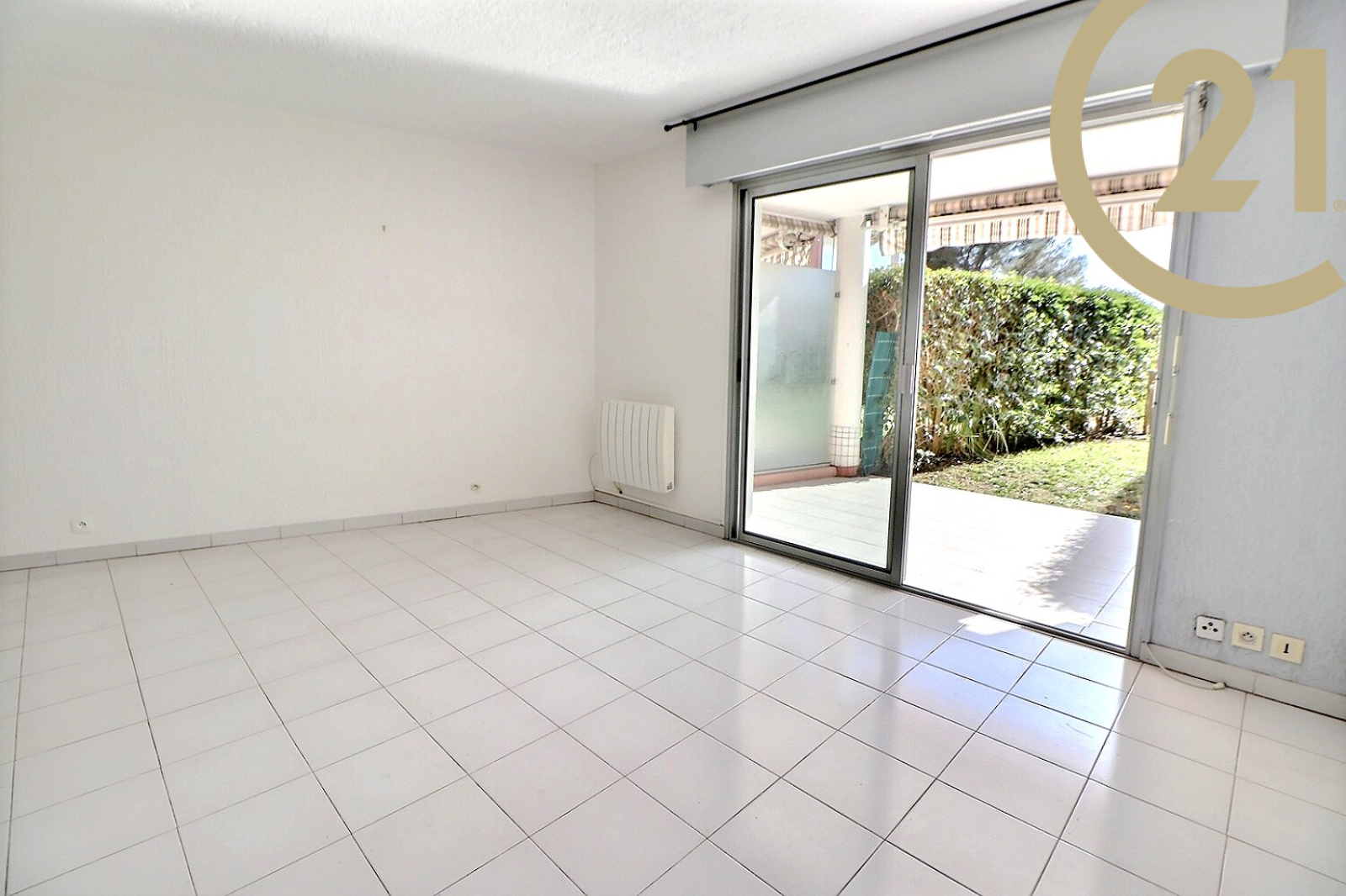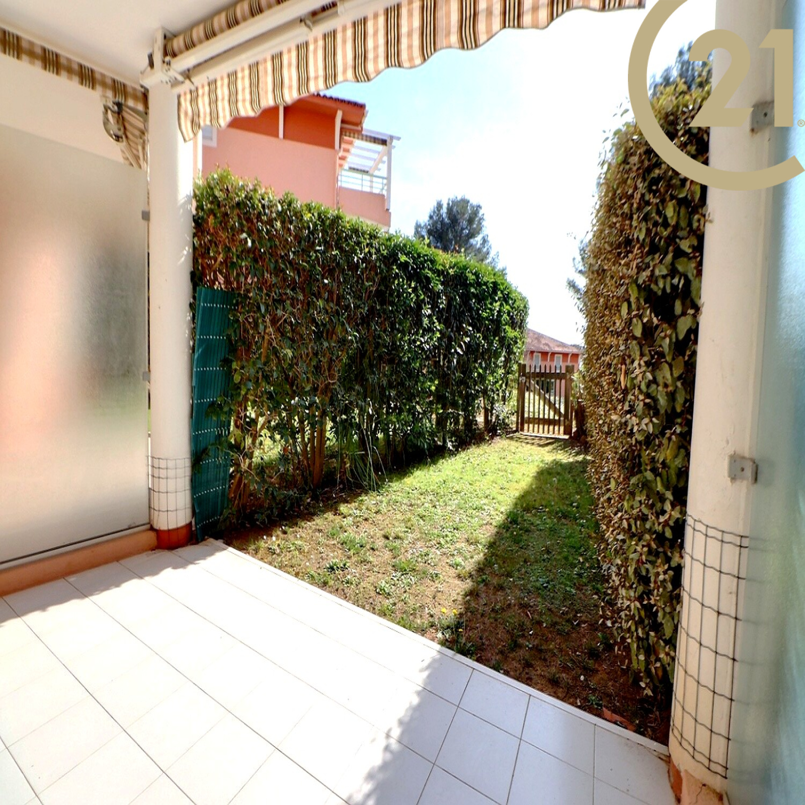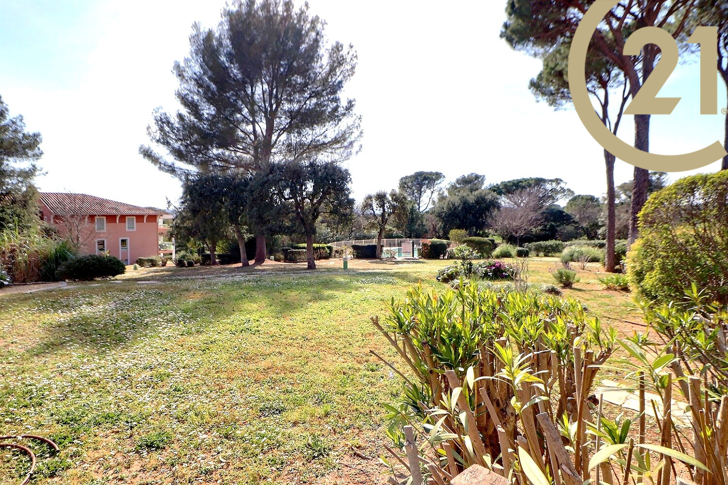 SAINT-RAPHAËL- LES GOLFS - Bel appartement 2 pièces de 40 m² situé dans un écrin de verdure dans une résidence de STANDING avec piscine. Cet appartement en rez-de-jardin offre un séjour lumineux avec une cuisine ouverte aménagée et équipée donnant sur une terrasse couverte de 9.80 m² exposée SUD, SUD-OUEST, prolongée par un joli jardin privatif, une chambre, une salle de bains, ainsi qu’un WC indépendant.
