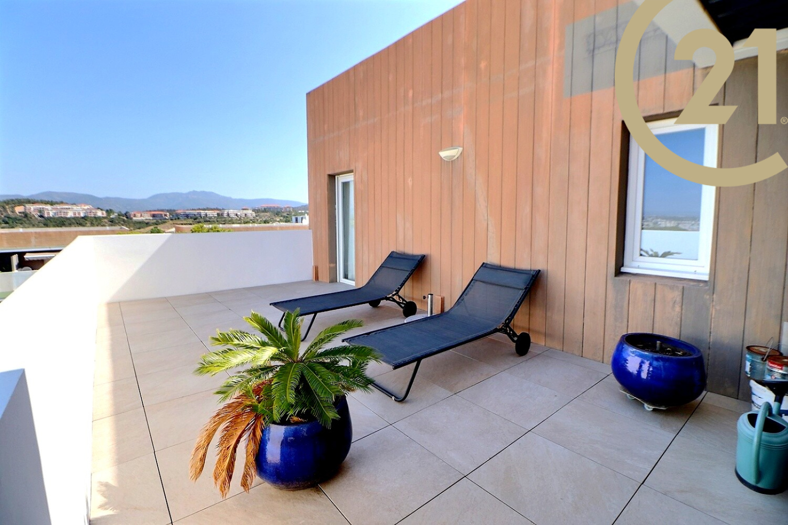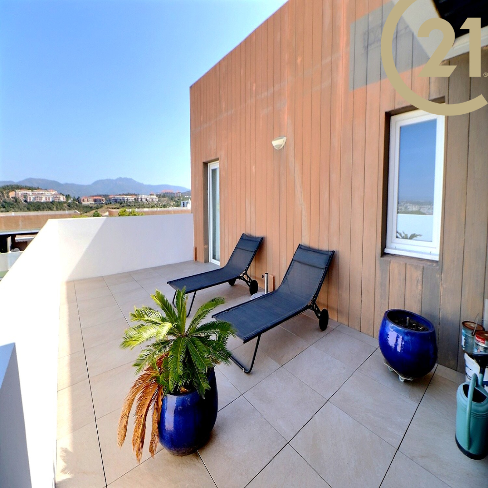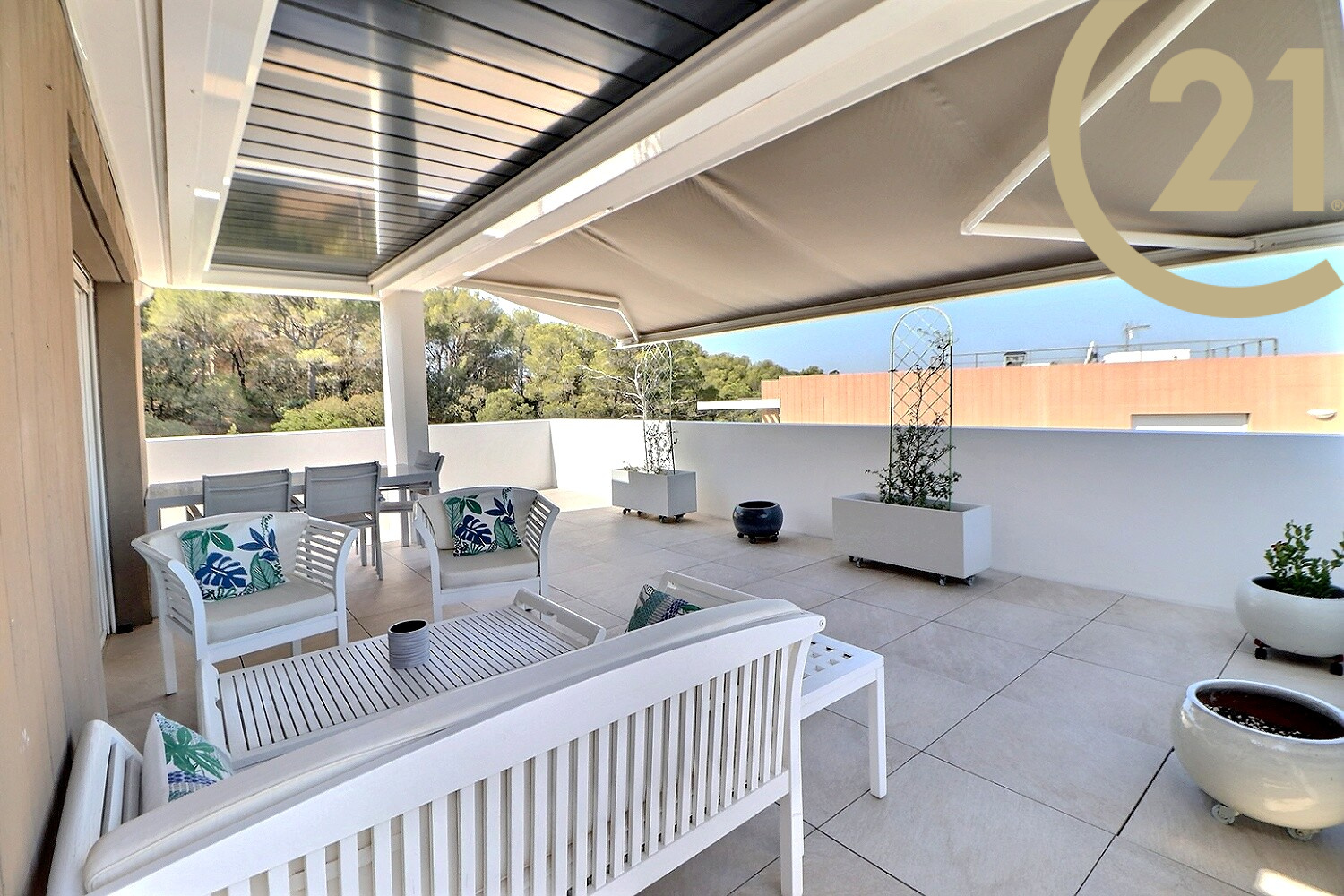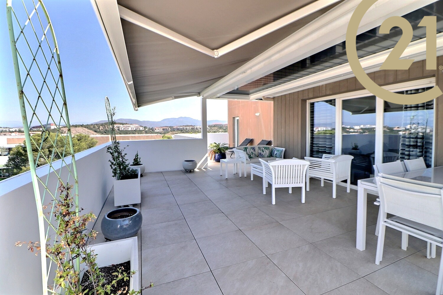L'appartement dispose d'une superbe terrasse d'angle de 80 m² avec pergola bioclimatique, coin relax et vue à plus de 180 degrès.