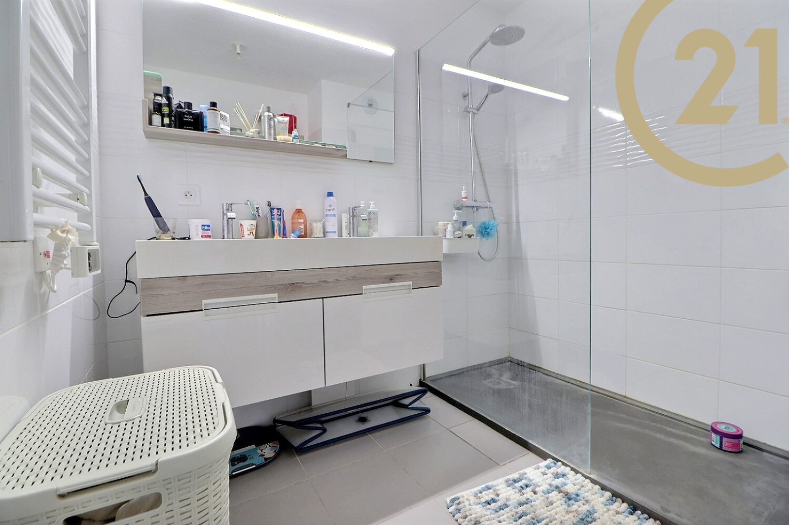 Il se compose d'une entrée avec placard donnant sur un grand séjour-cuisine de presque 40m², une belle terrasse exposé SUD-OUEST avec vue jusqu'au rocher de ROQUEBRUNE, deux chambres avec placards, une salle de douche et un WC indépendant.
