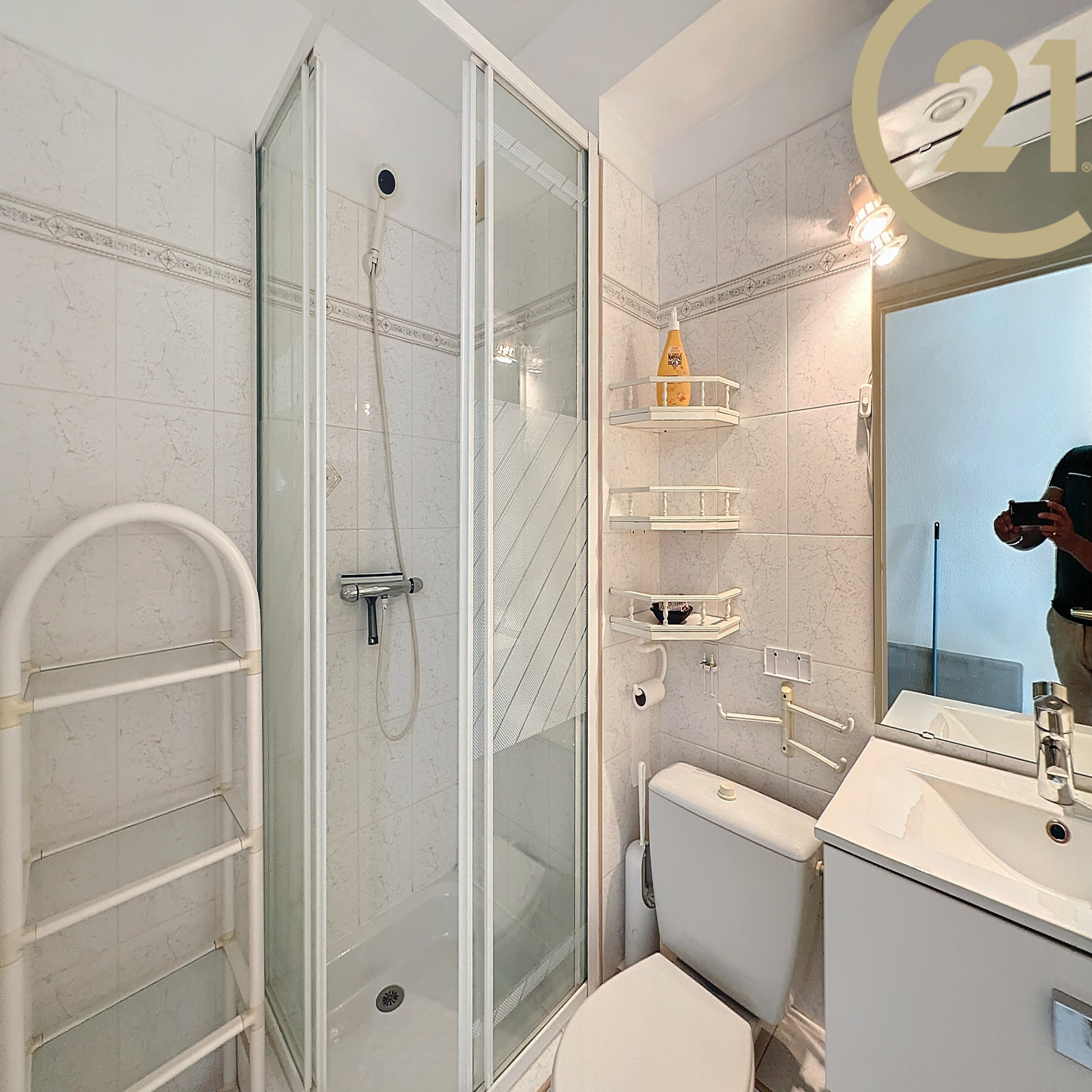 Fonctionnel, cet appartement s'agence d'un lumineux séjour climatisé s'ouvrant sur 2 terrasses offrant une trés belle vue sur la mer, d'un espace cuisine, d'une salle d'eau avec WC et d'une chambre avec placard offrant également une vue sur la mer.