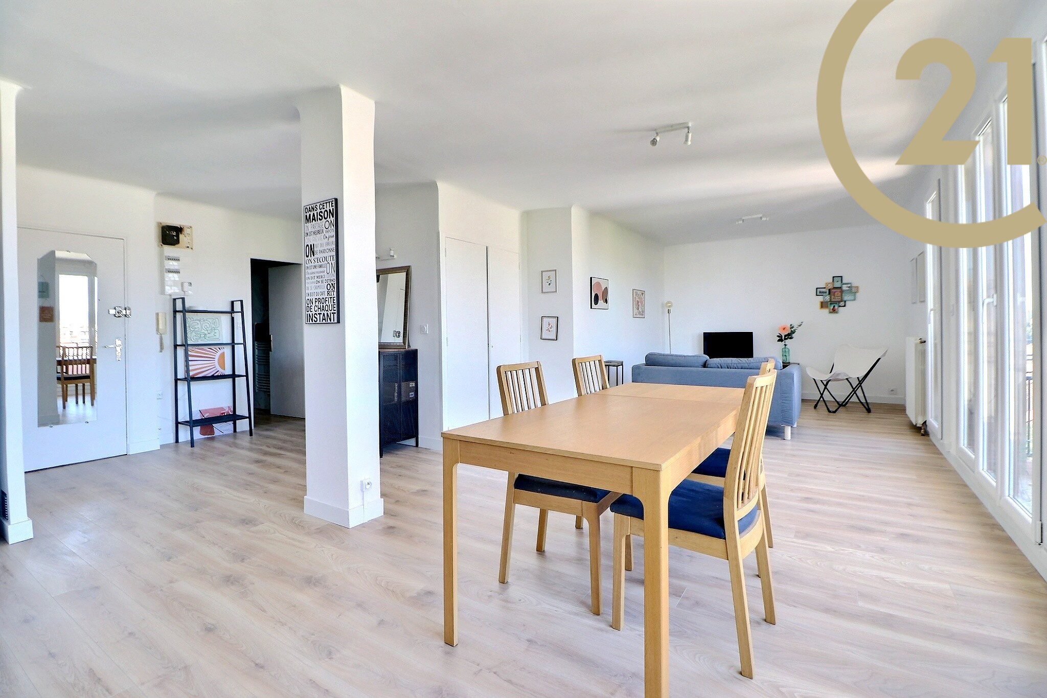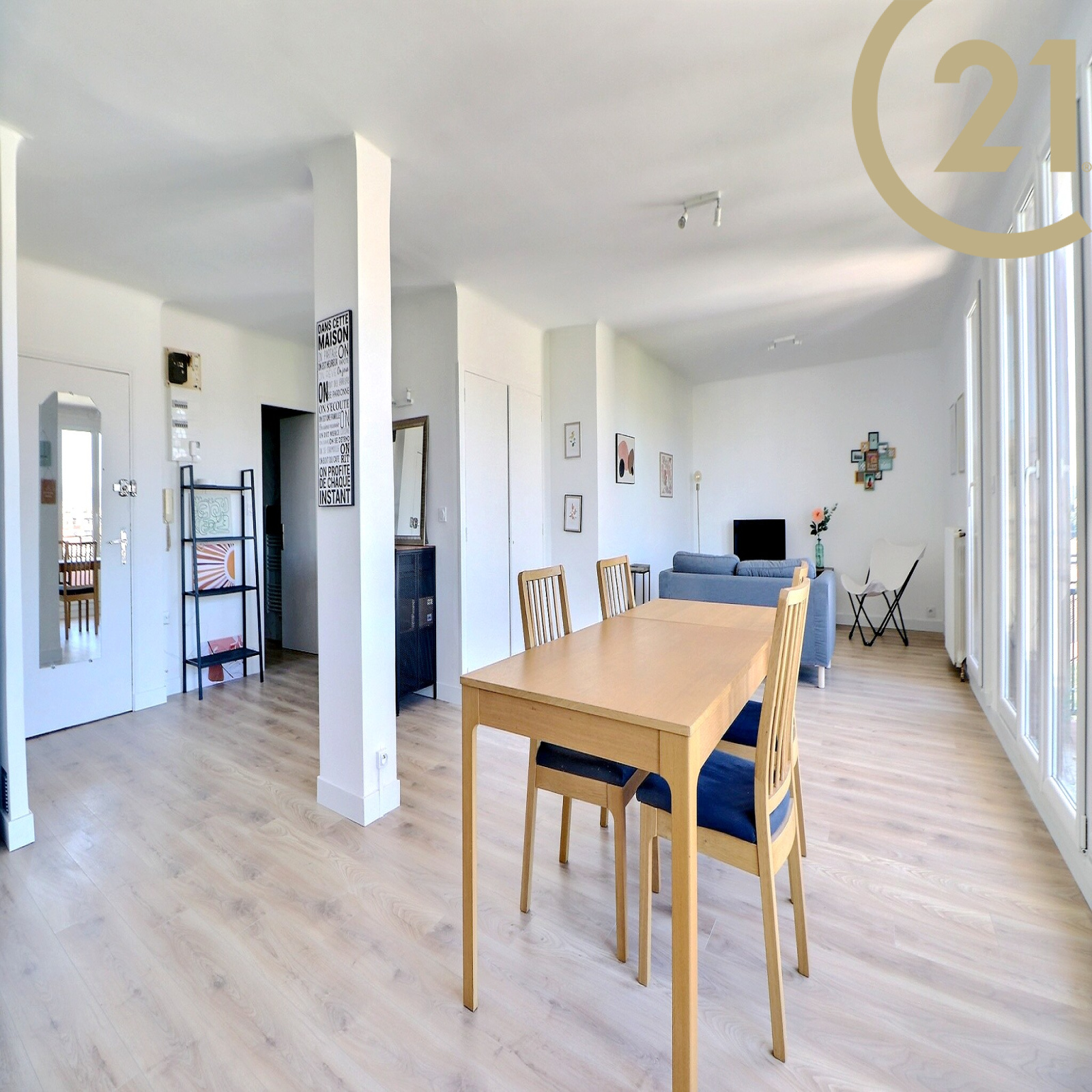 Il se compose d'une entrée avec placard donnant sur un double séjour avec cuisine de plus de 40m² avec terrasse, de deux chambres, d'une salle d'eau et d'un WC indépendant.