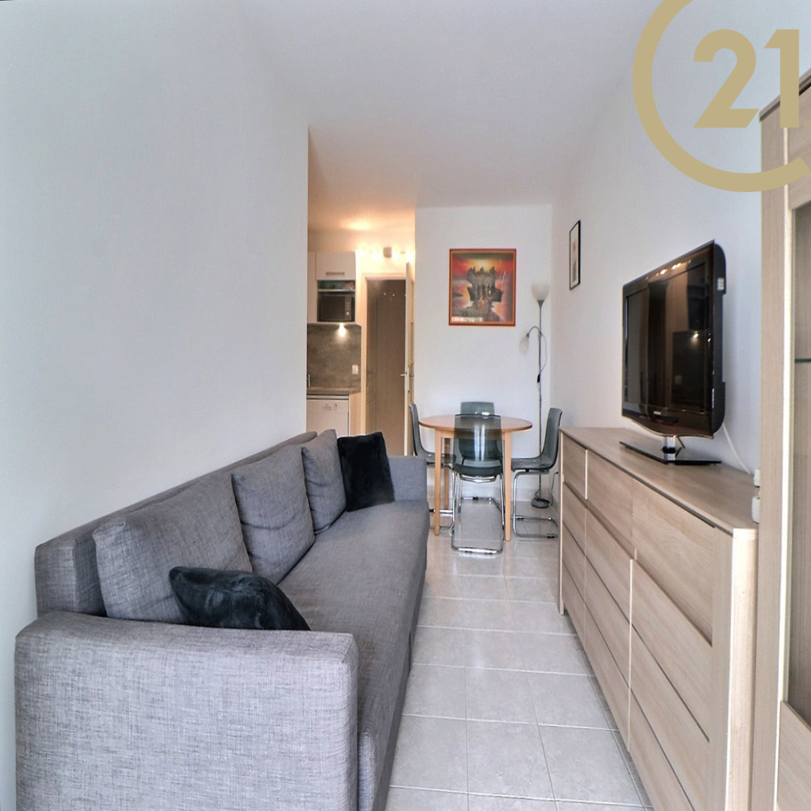 Il se compose d'un hall, d'un séjour avec une cuisine ouverte amenagée, d'une salle de bains et d'un WC indépendant.