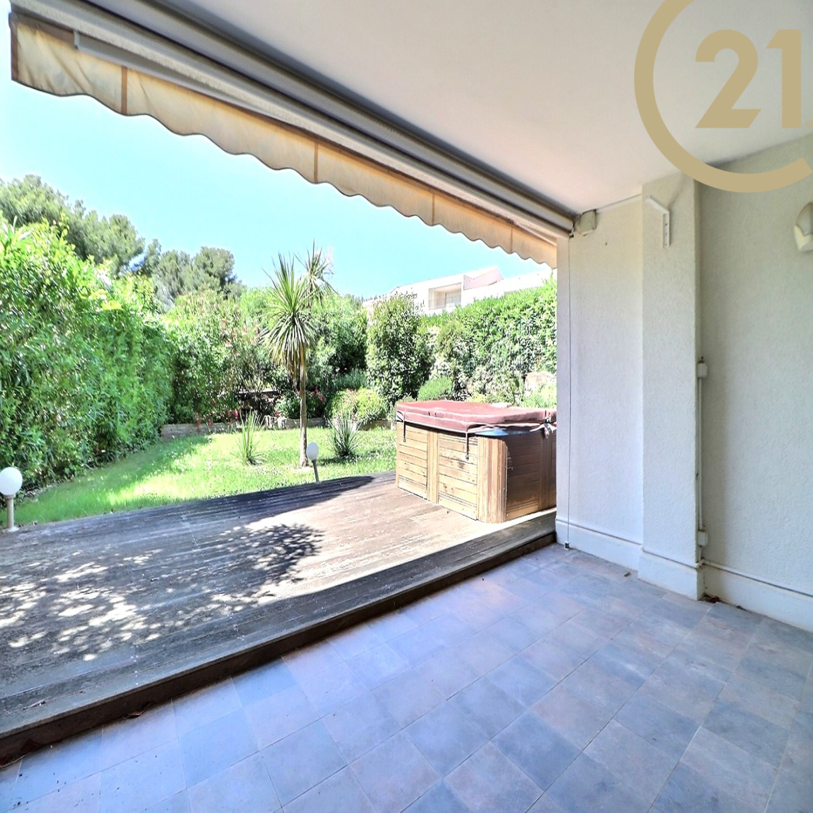 VENTE - SAINT-RAPHAËL - BOULOURIS - Dans une résidence de standing sécurisée, verdoyante et avec deux piscines, nous vous présentons un appartement de trois pièces de 83m² en rez-de-jardin.