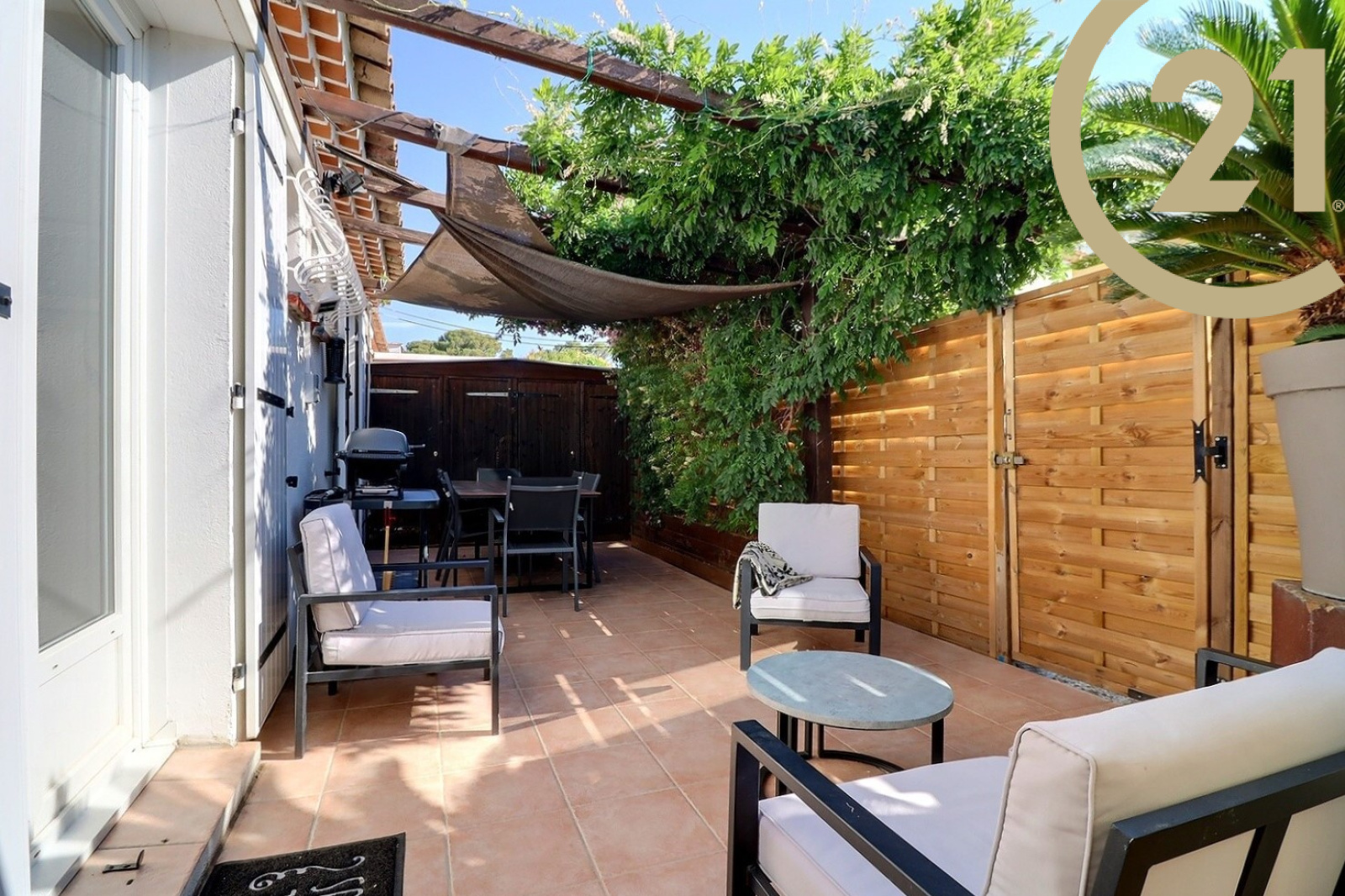 Pour profiter de bons moments en famille ou entre amis vous bénéficiez d'une magnifique terrasse fleurie et verdoyante.